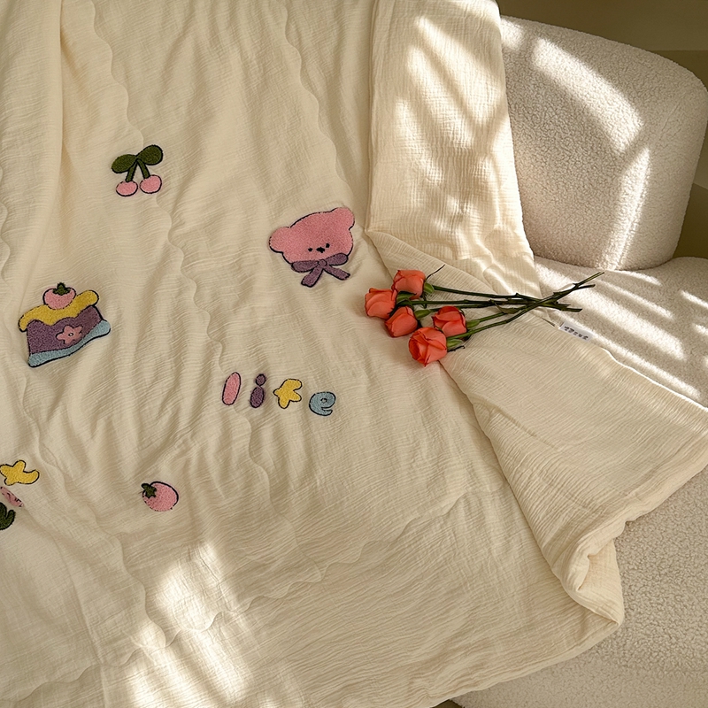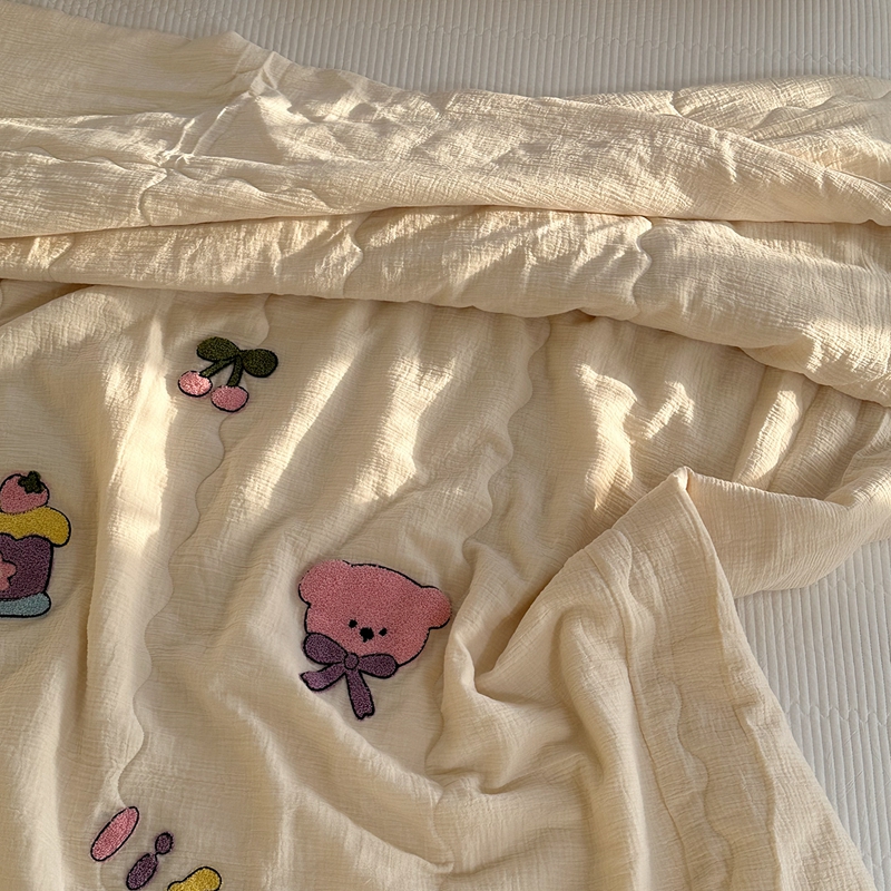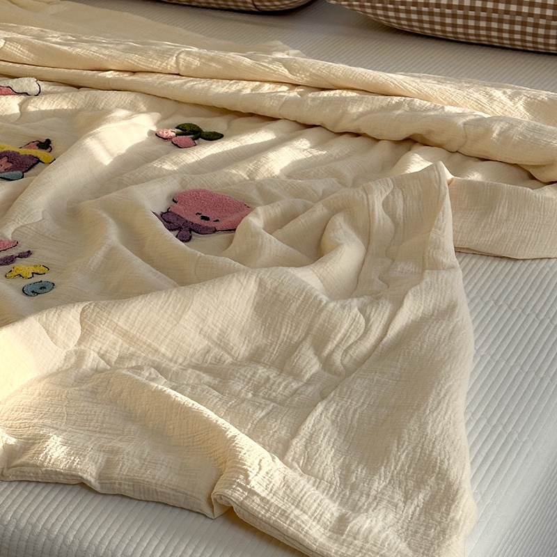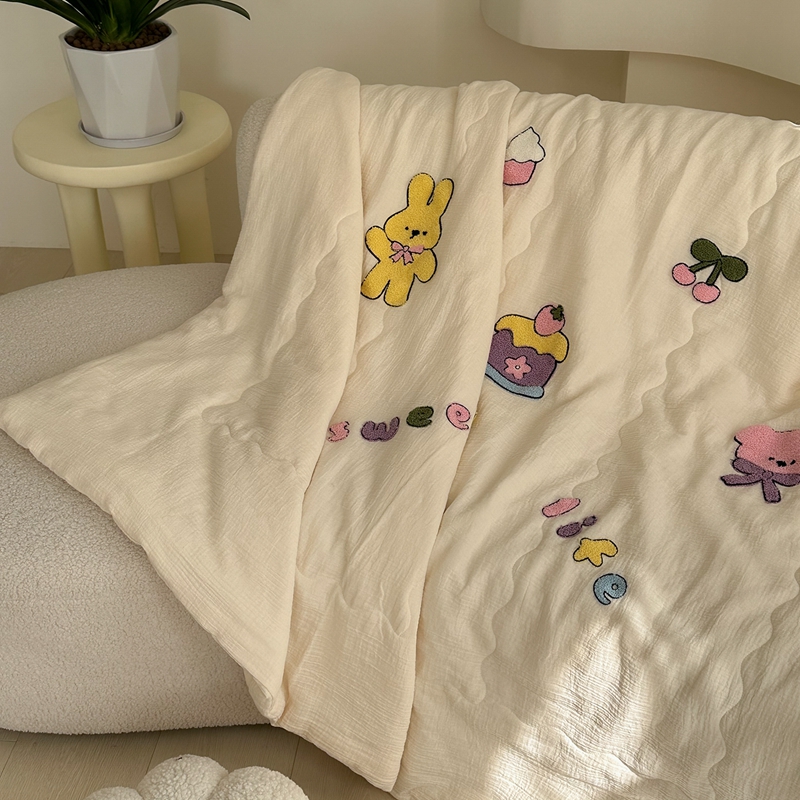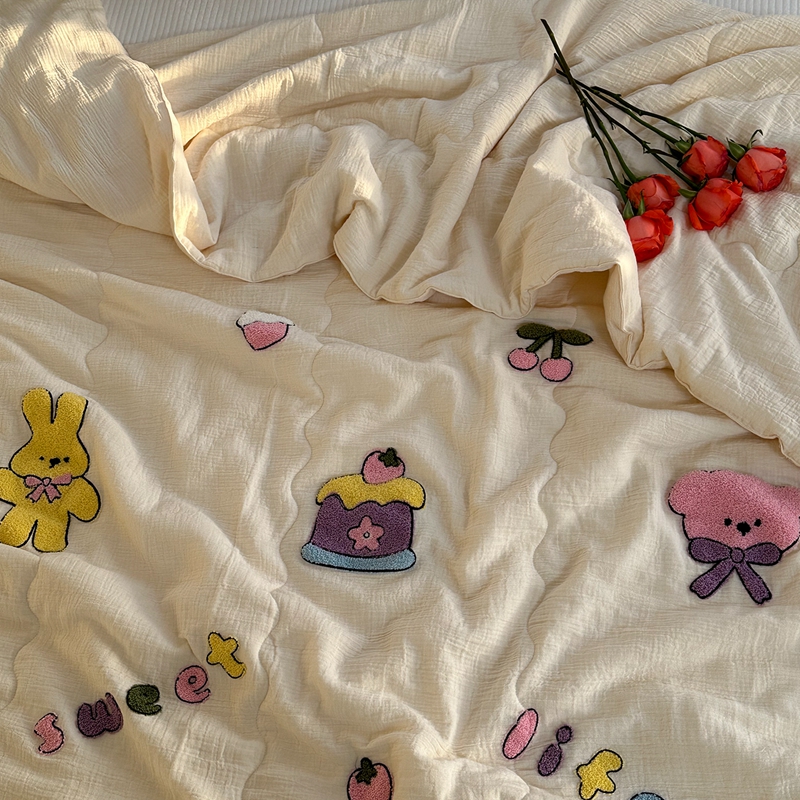 洋铭区(原狠狠爱)2024新款皱皱纱绣花夏被 萌兔小熊