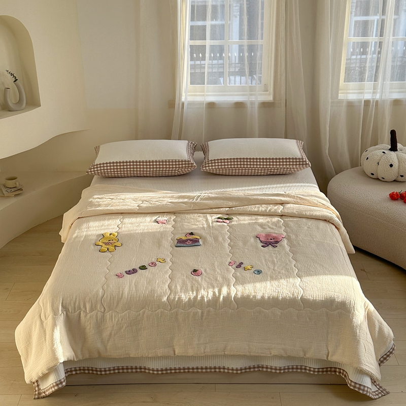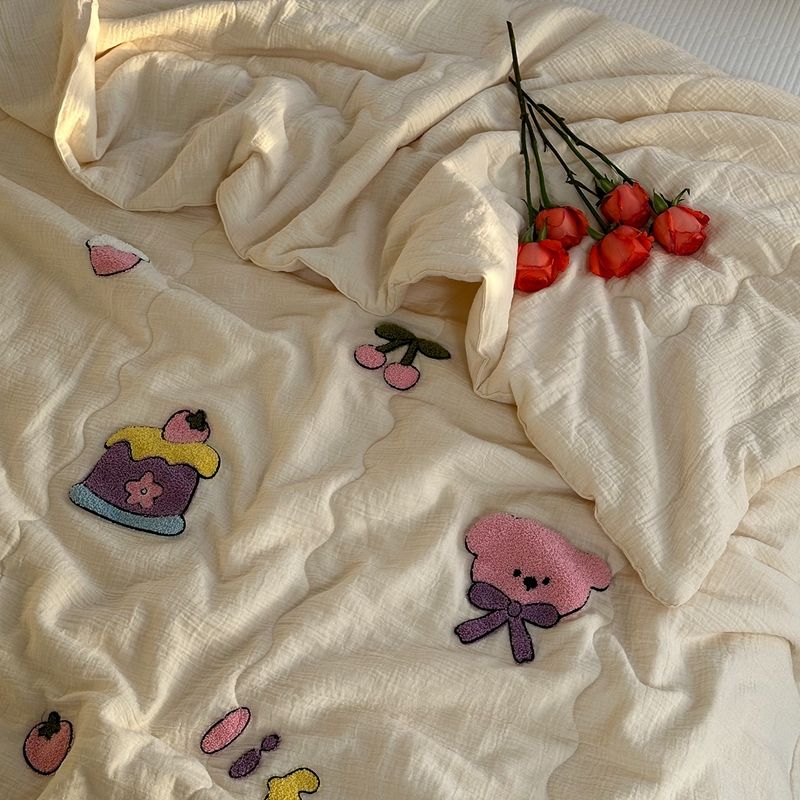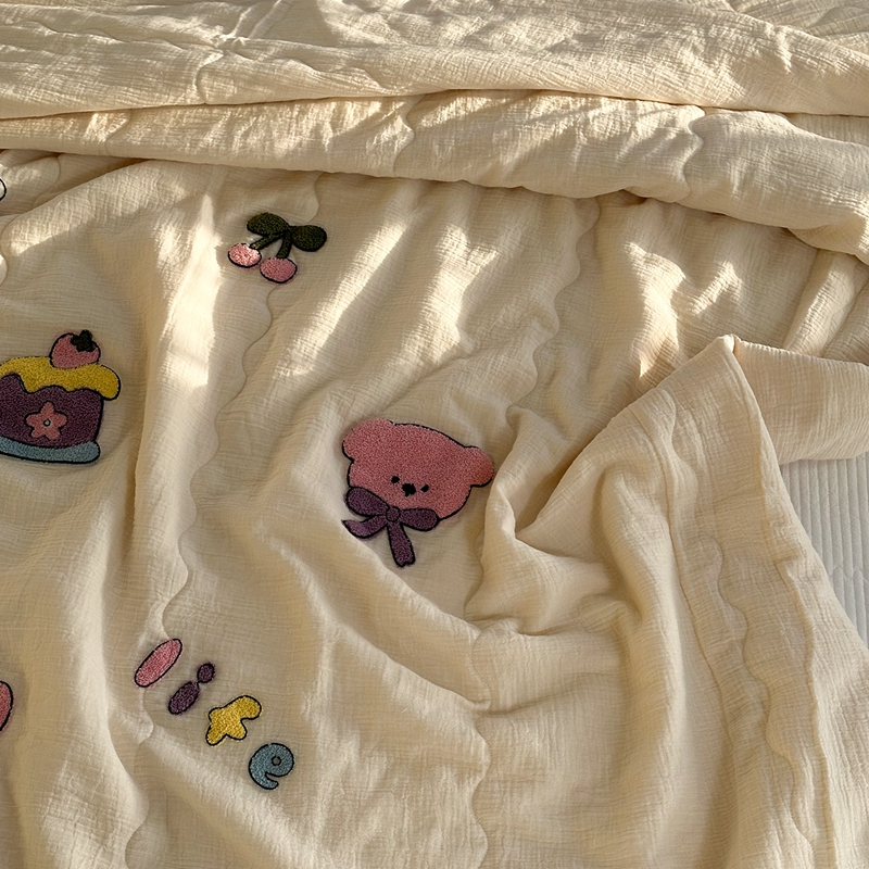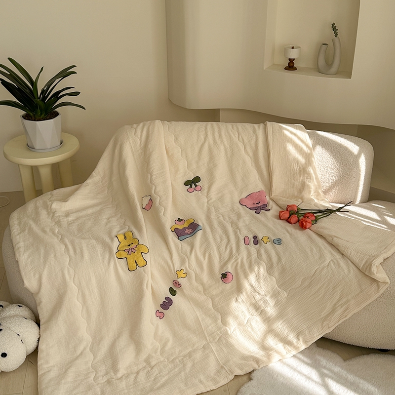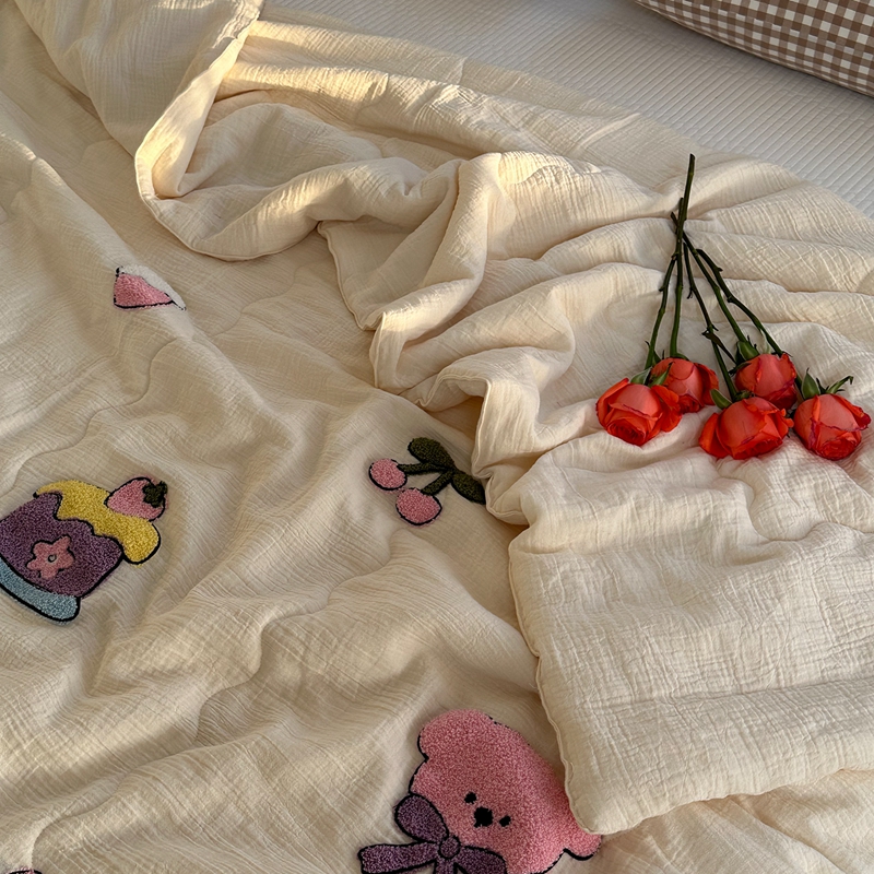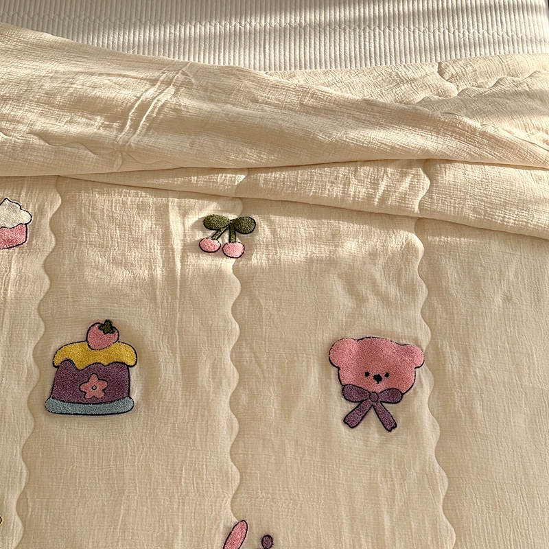 洋铭区(原狠狠爱)2024新款皱皱纱绣花夏被 萌兔小熊