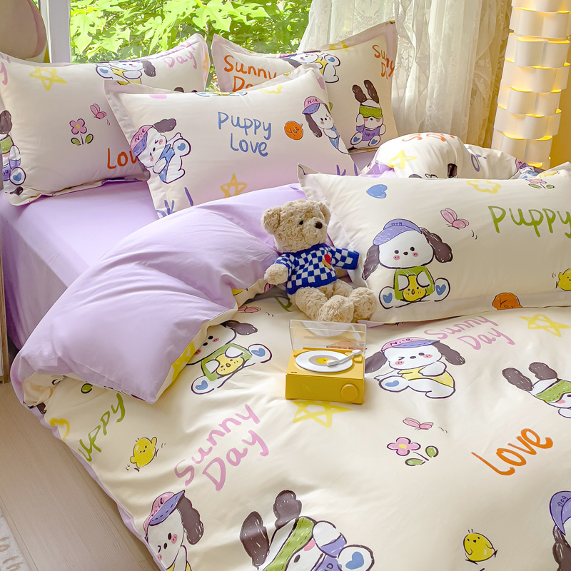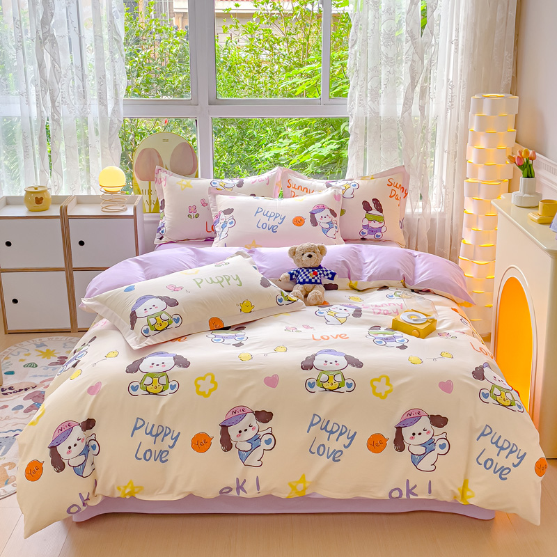 金鑫汇家纺 2024新款全棉纯棉卡通印花四件套单品系列-单被套狗狗乐园