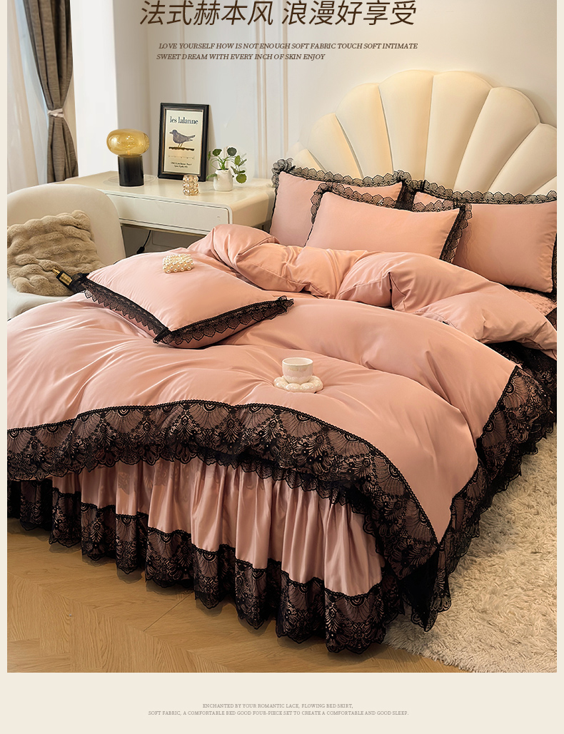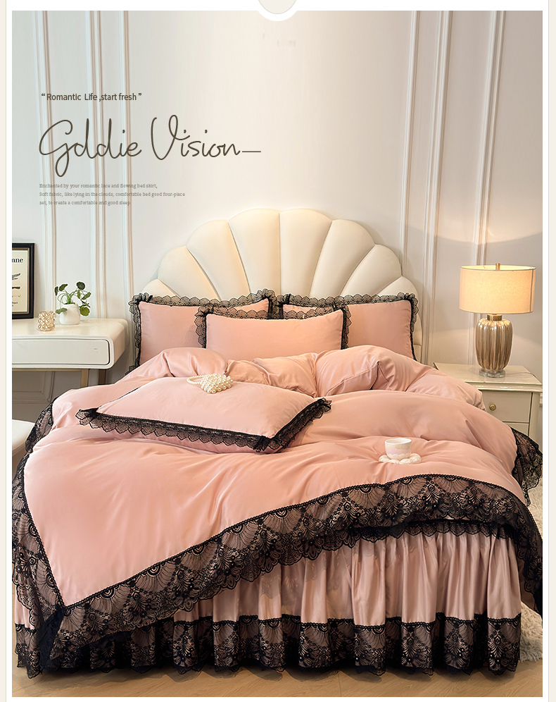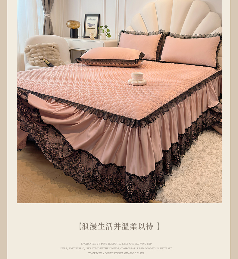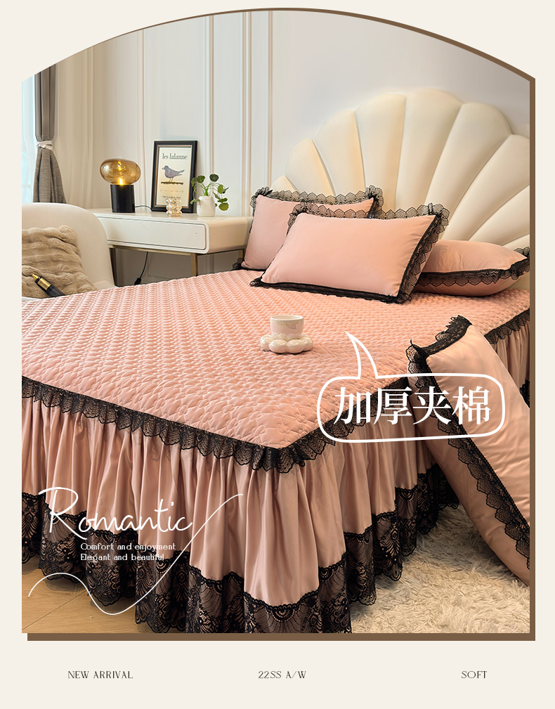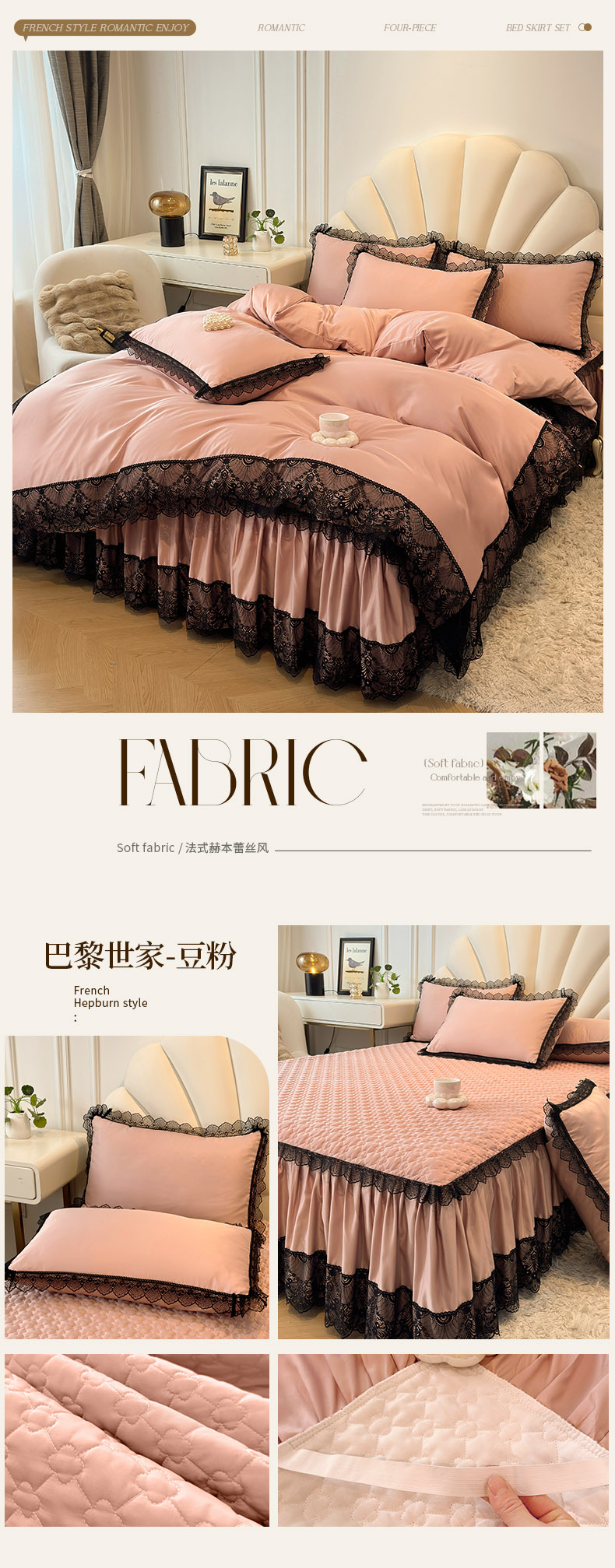 当前位置: 91家纺网 > 商品网购 > 床品套件 > 四件套 > 其它四件套 > 2024新款法式赫本风丝光棉床裙款四件套-巴黎世家 巴黎世家-豆粉