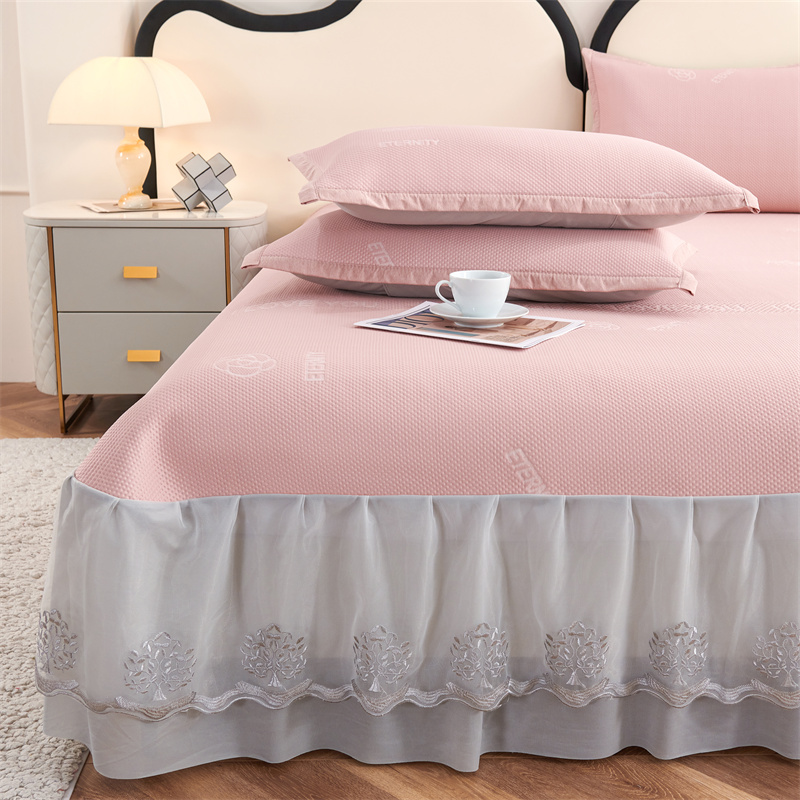 商品名称:宜派家纺 2024新款雪花冷感席三件套床裙款 爱恋-粉