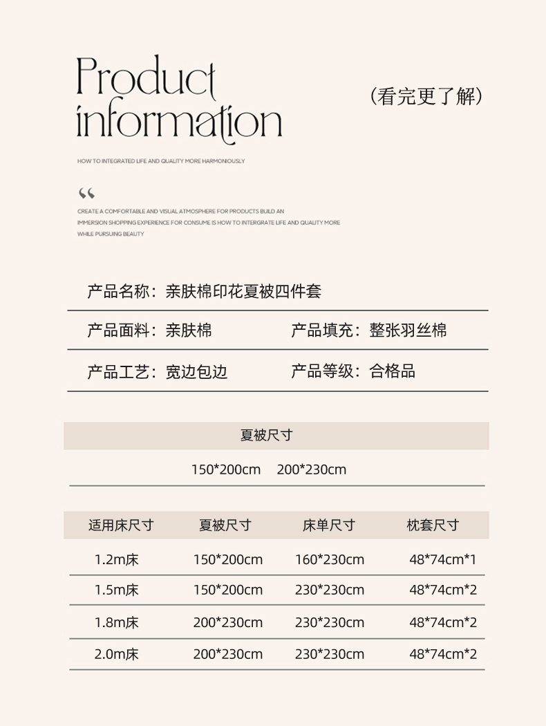 商品名称:乐居坊 2024新款亲肤舒适印花芦荟棉夏凉被四件套 轻奢风