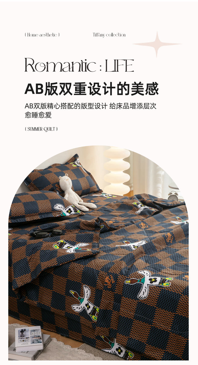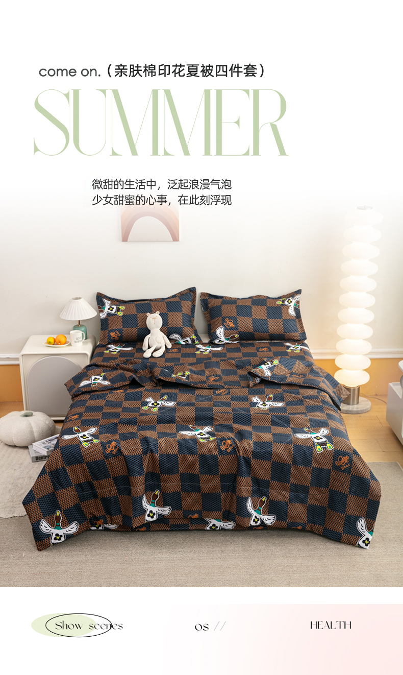 乐居坊 2024新款亲肤舒适印花芦荟棉夏凉被四件套 轻奢风