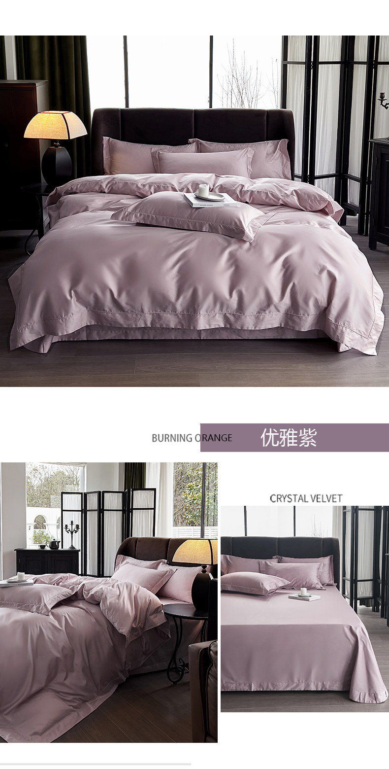 商品名称:嘉悦 2025新款50*50S双股长绒棉简约纯色埋绳四件套邂逅-实拍邂逅-优雅紫