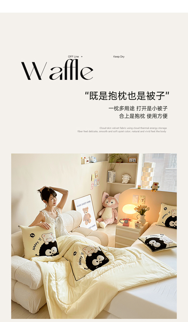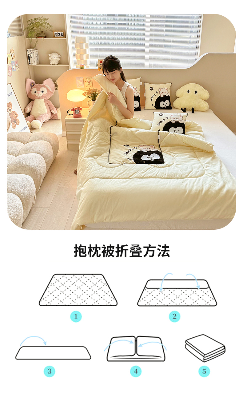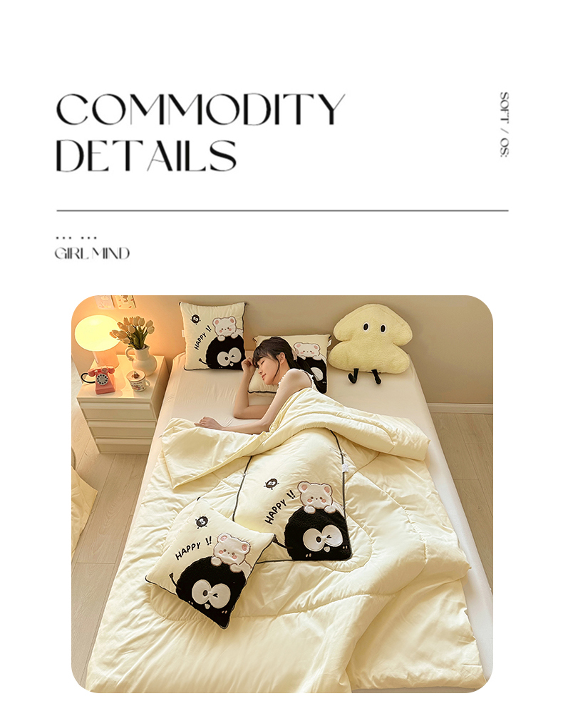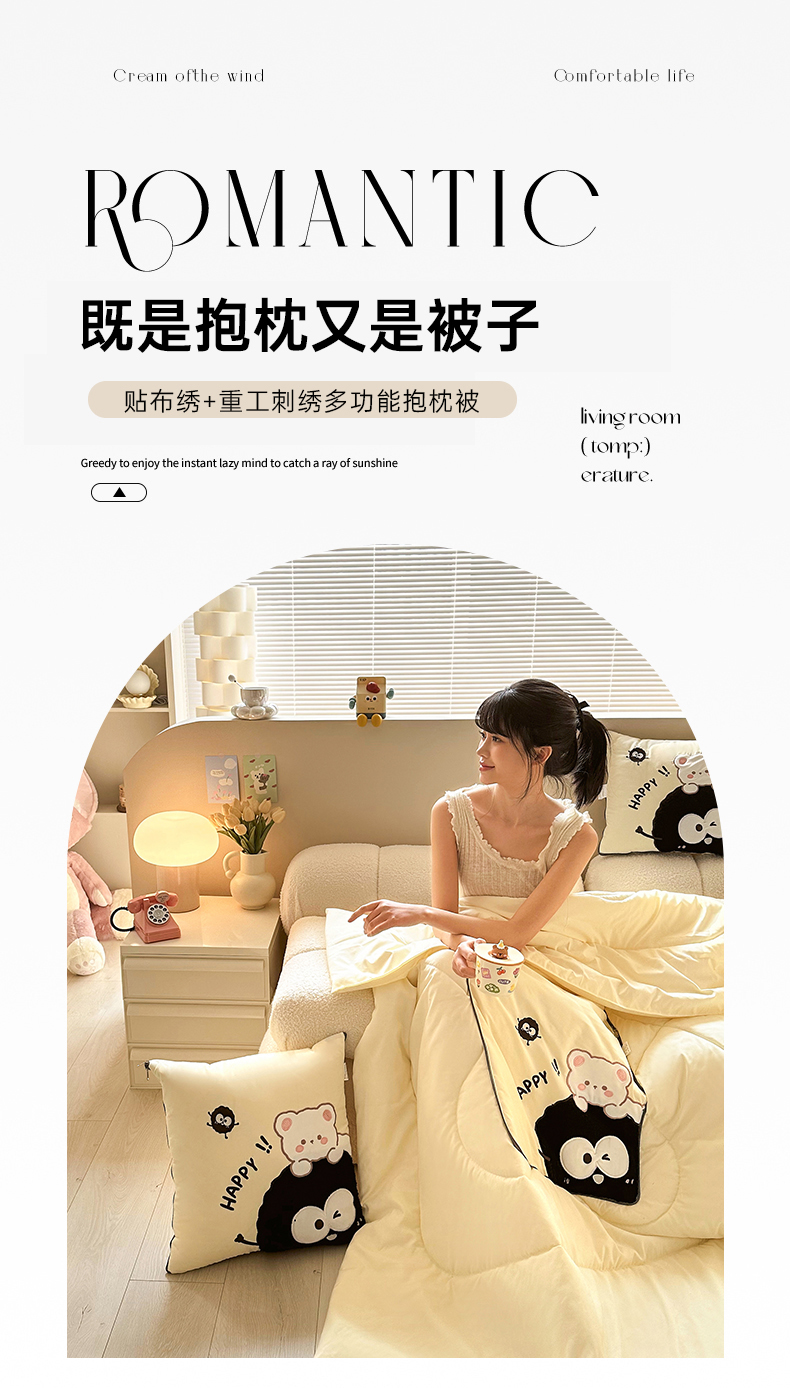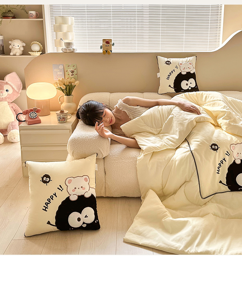 商品名称:铭宣家居 2024新款贴布绣+重工刺绣多功能抱枕被系列 可爱煤球 可爱煤球-米黄色