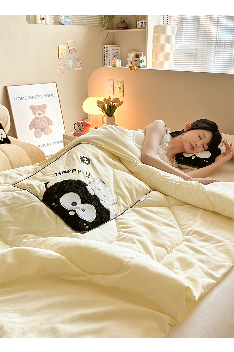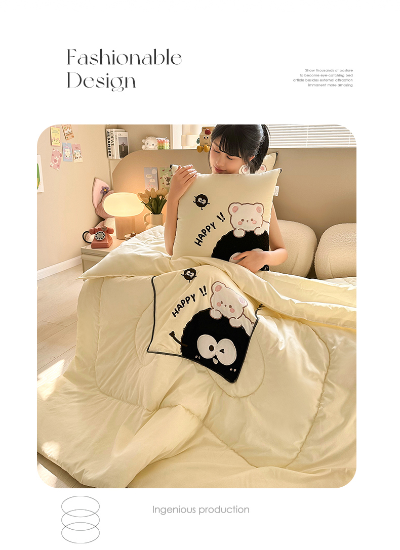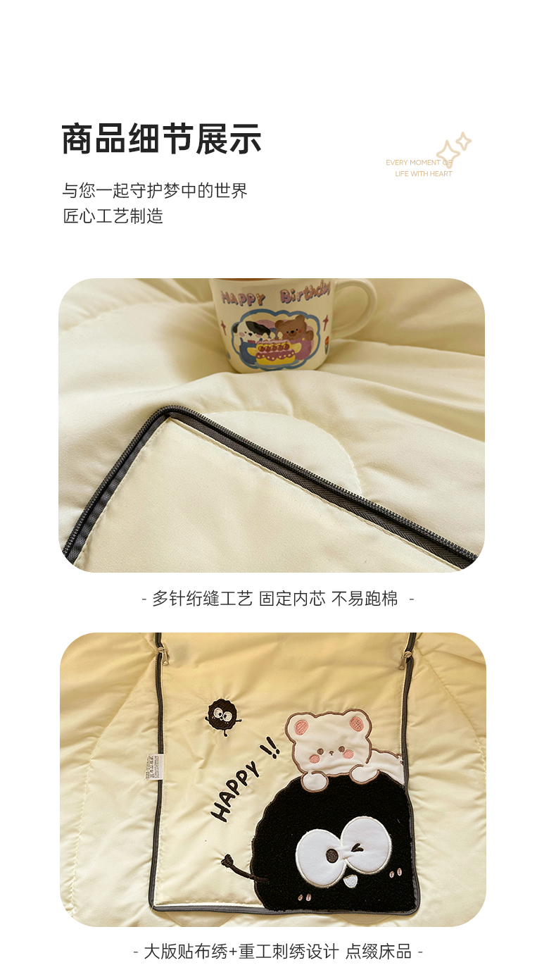 铭宣家居 2024新款贴布绣+重工刺绣多功能抱枕被系列 可爱煤球 可爱煤球-米黄色