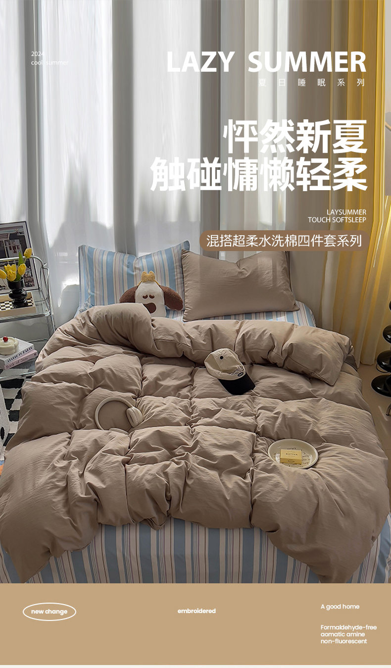 (总)易辰美 2024新款水洗棉混搭条纹四件套