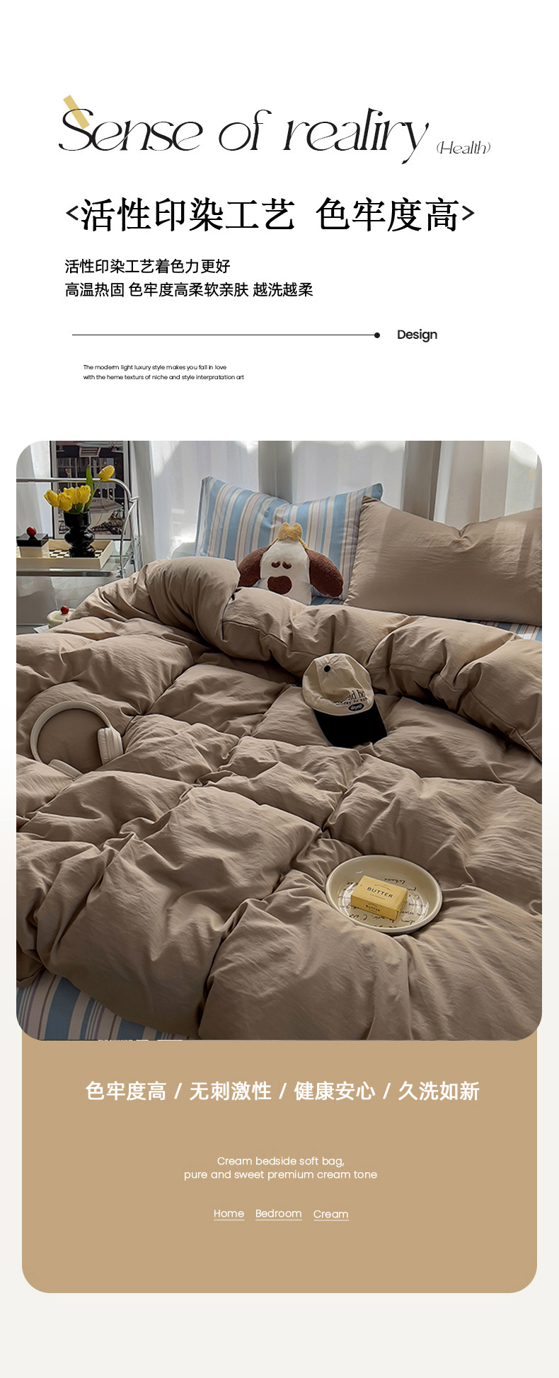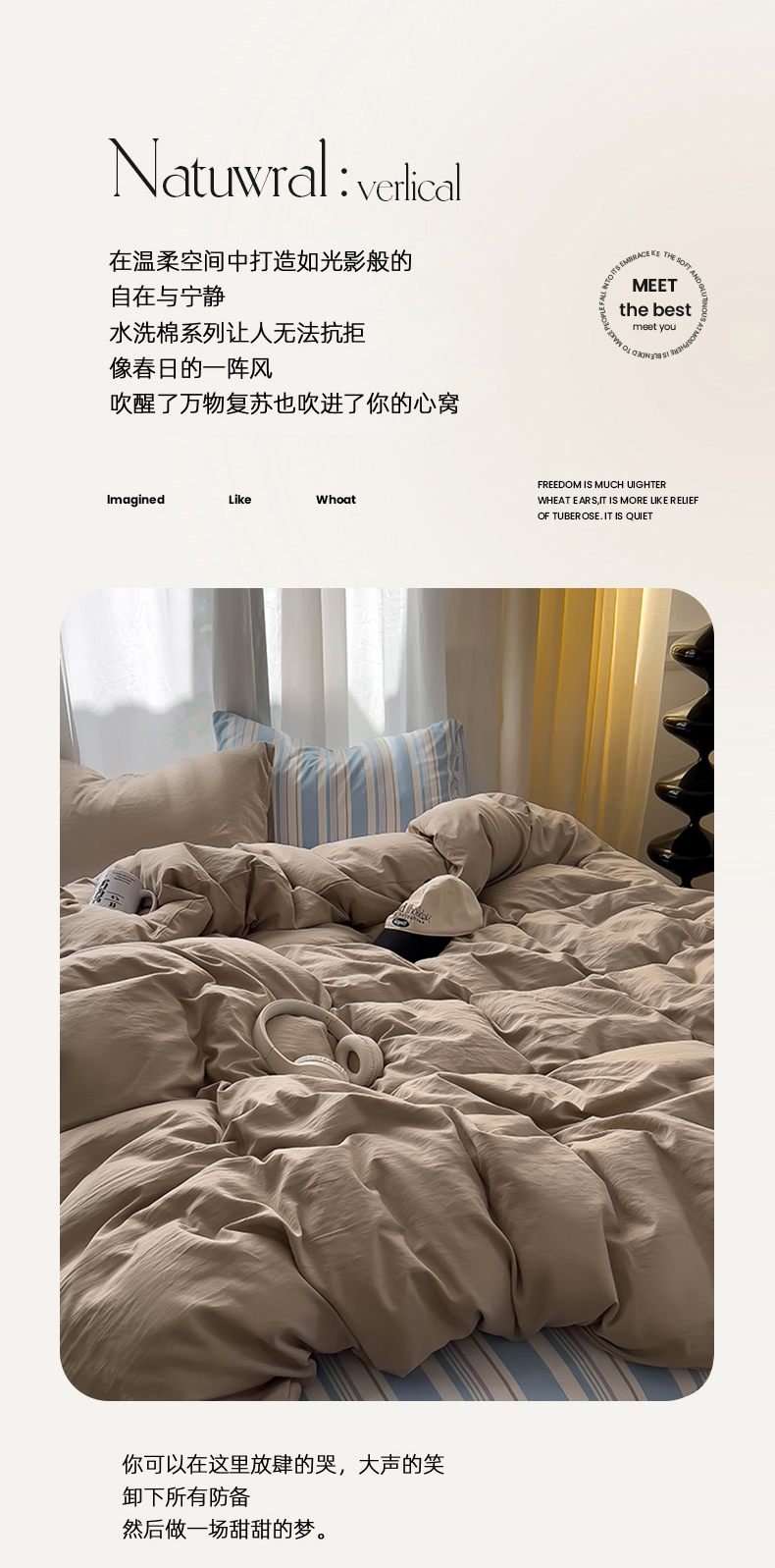 (总)易辰美 2024新款亲肤水洗棉四件套,橙色,粉色,粉玉色,酱紫色,酷黑色,奶白色,奶杏色,浅灰色,浅蓝色,浅绿色,深灰色,西瓜红,香芋紫