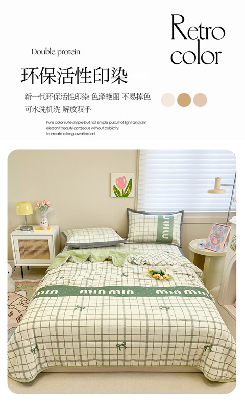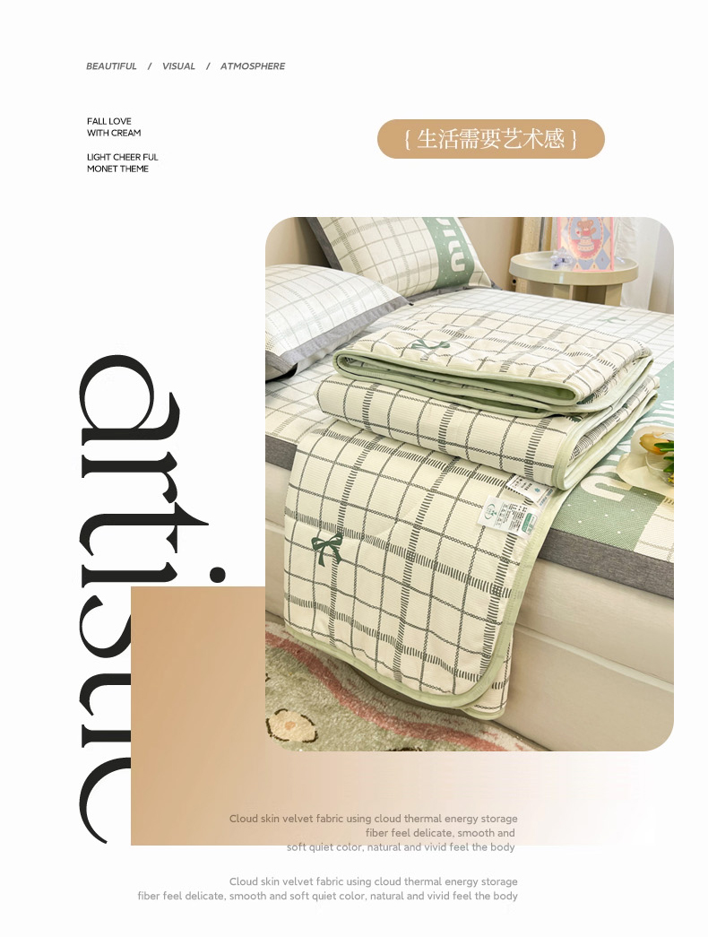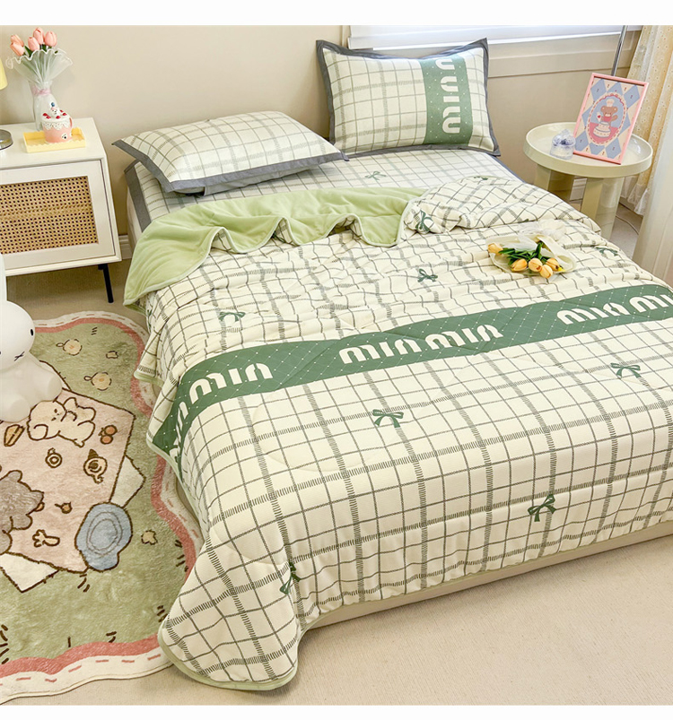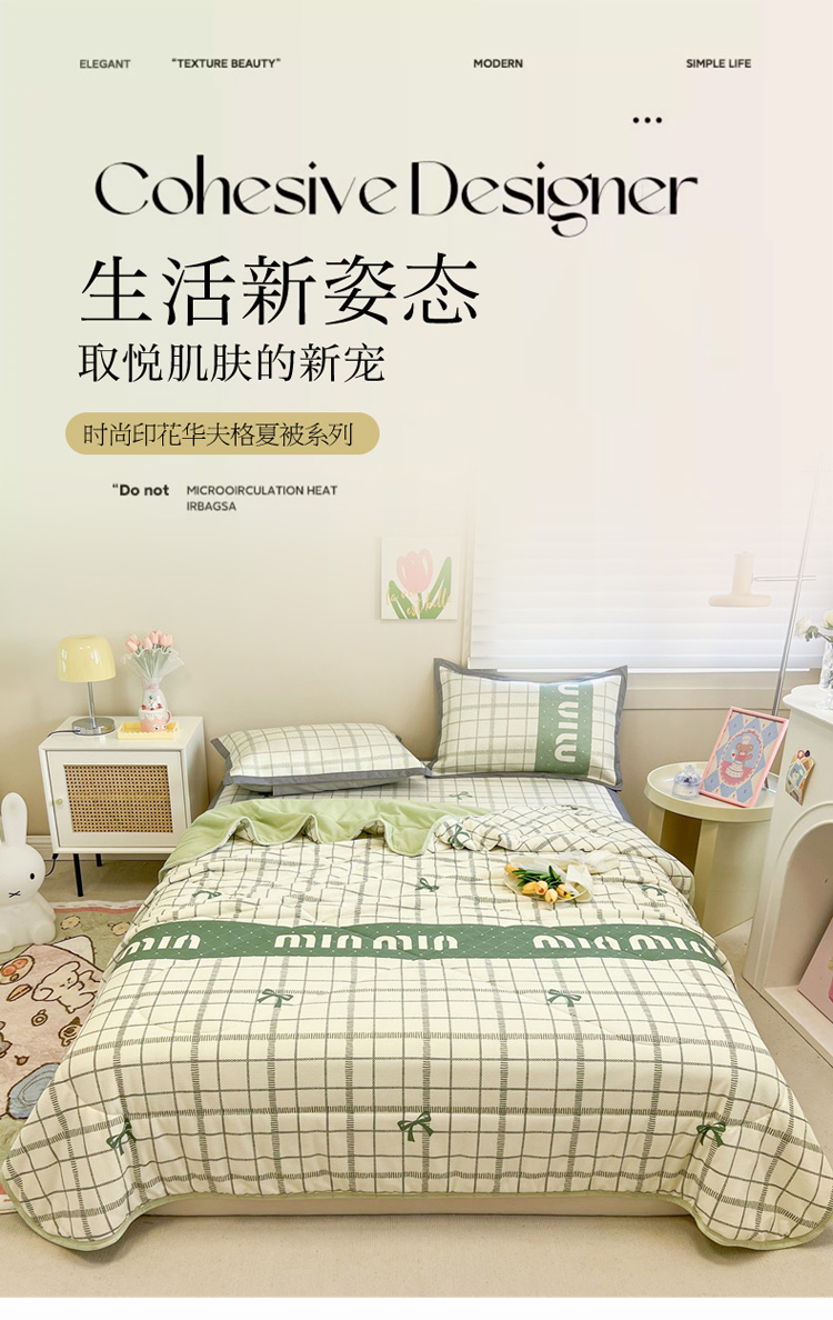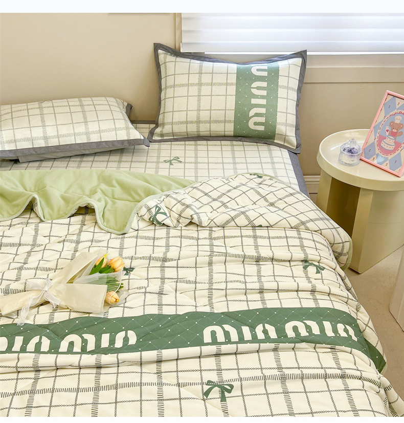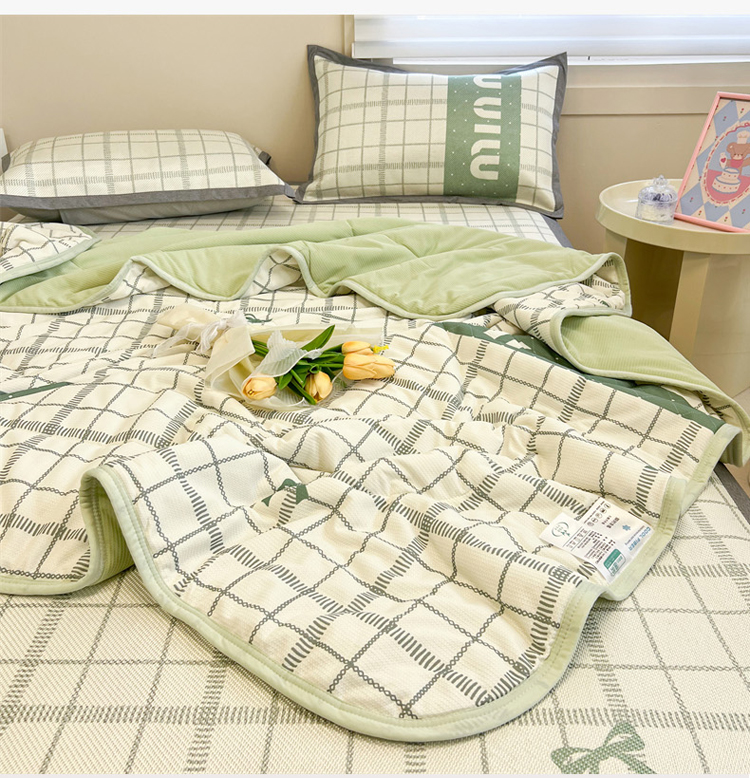 当前位置: 91家纺网 > 商品网购 > 床品套件 > 四件套 > 夏被四件套 > 沐慕 2024新款小清新华夫格印花冰藤夏被四件套 华夫格-蝴蝶结绿