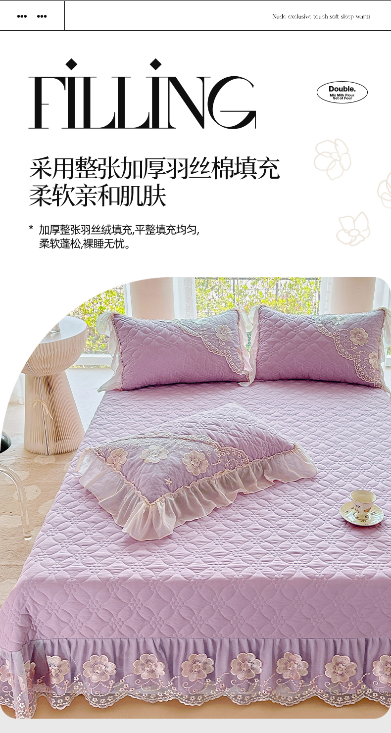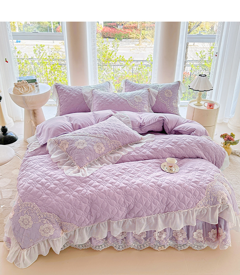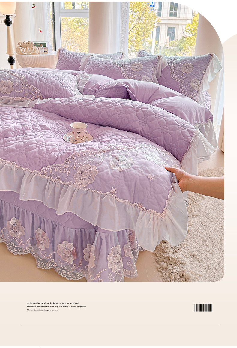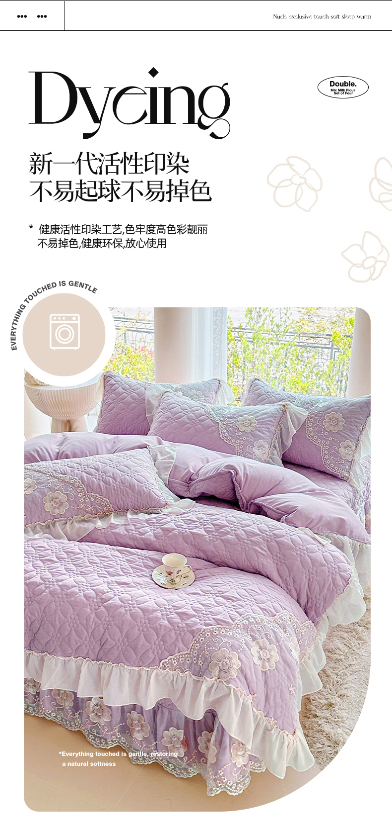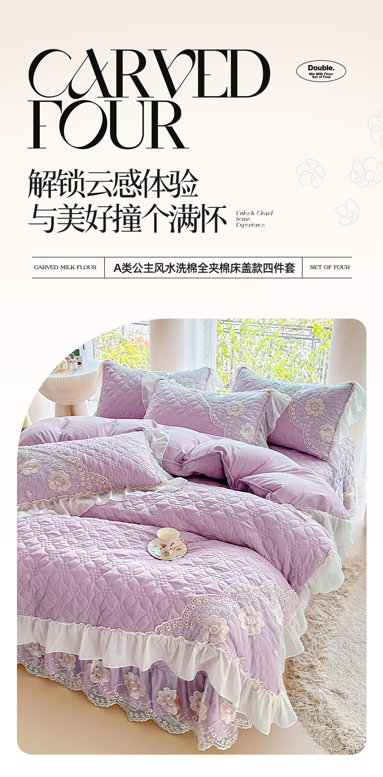商品名称:罗艺轩 2024新款公主风水洗棉全夹棉床盖款四件套-盛宴 盛宴-茉莉紫