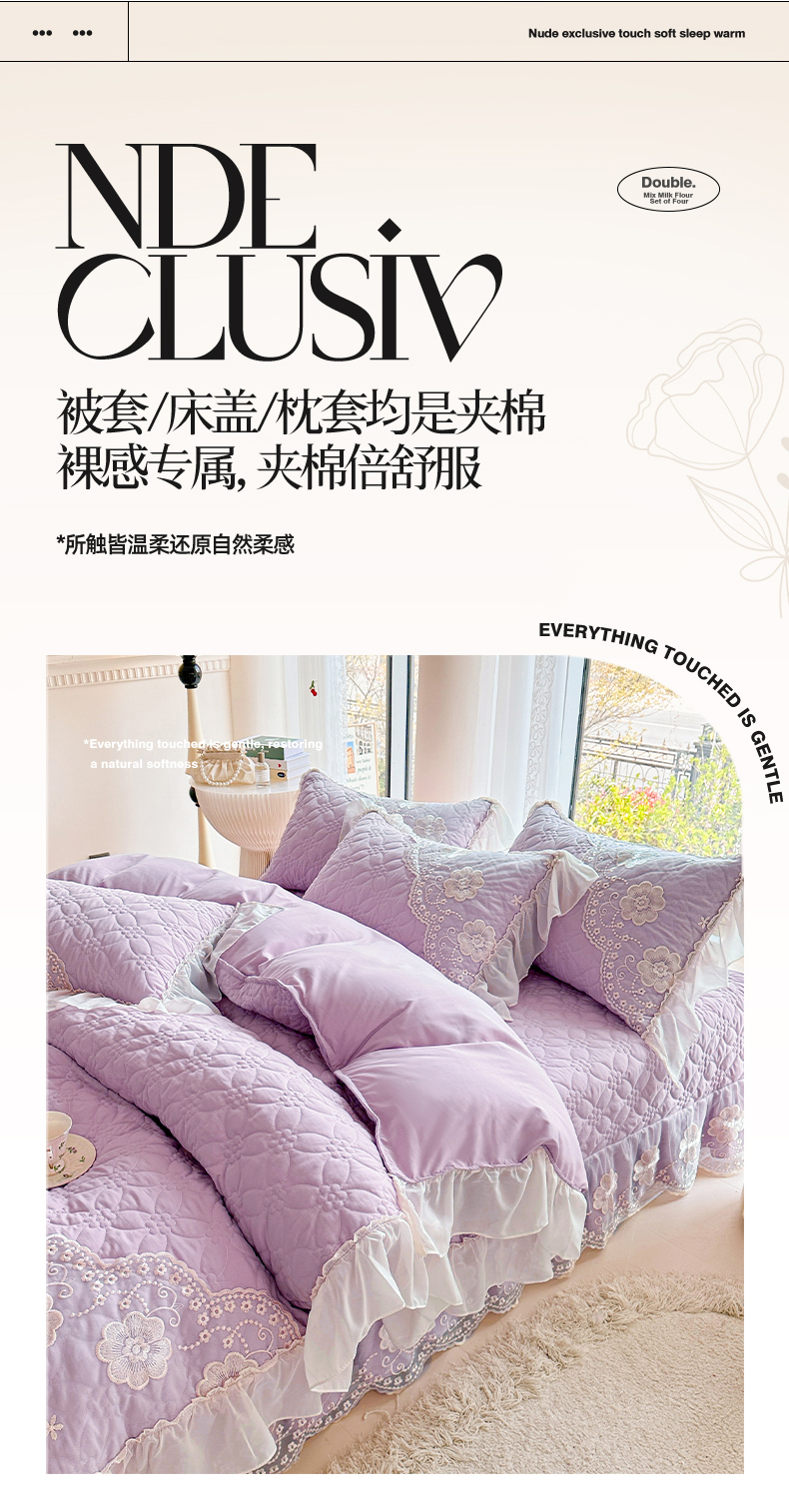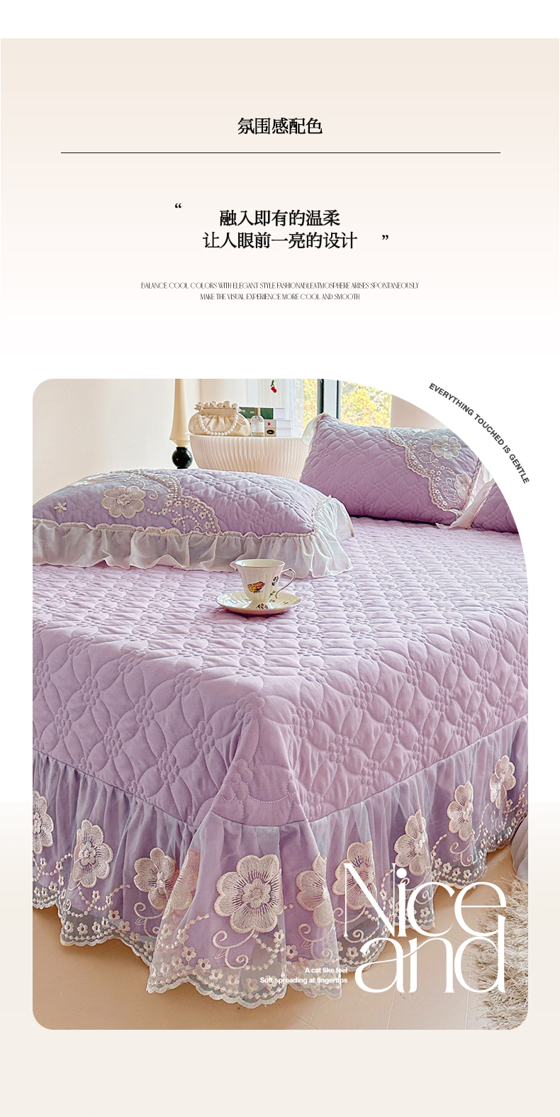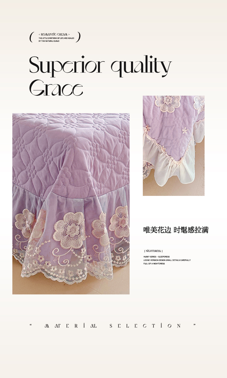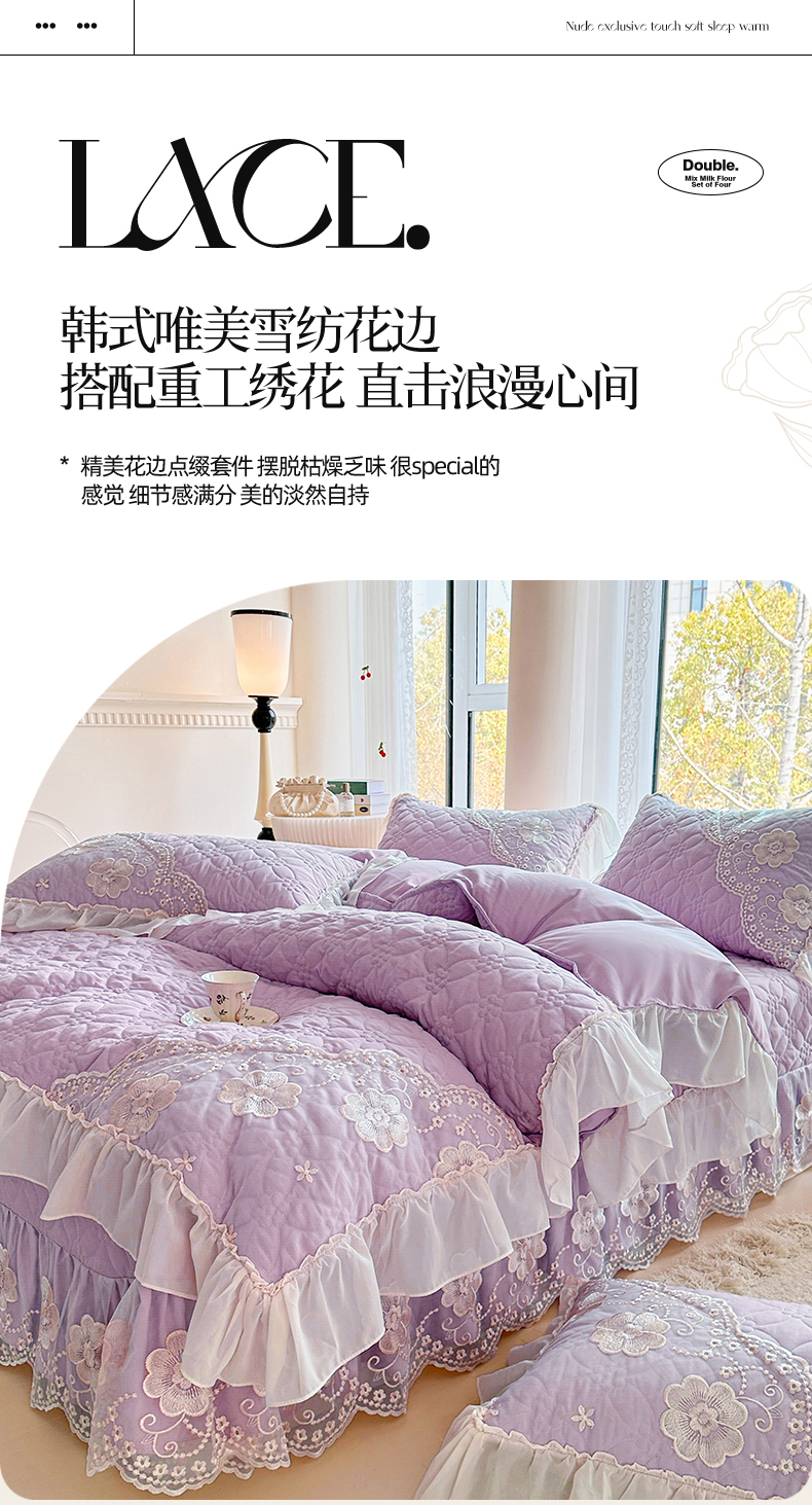 商品名称:罗艺轩 2024新款公主风水洗棉全夹棉床盖款四件套-盛宴 盛宴-茉莉紫