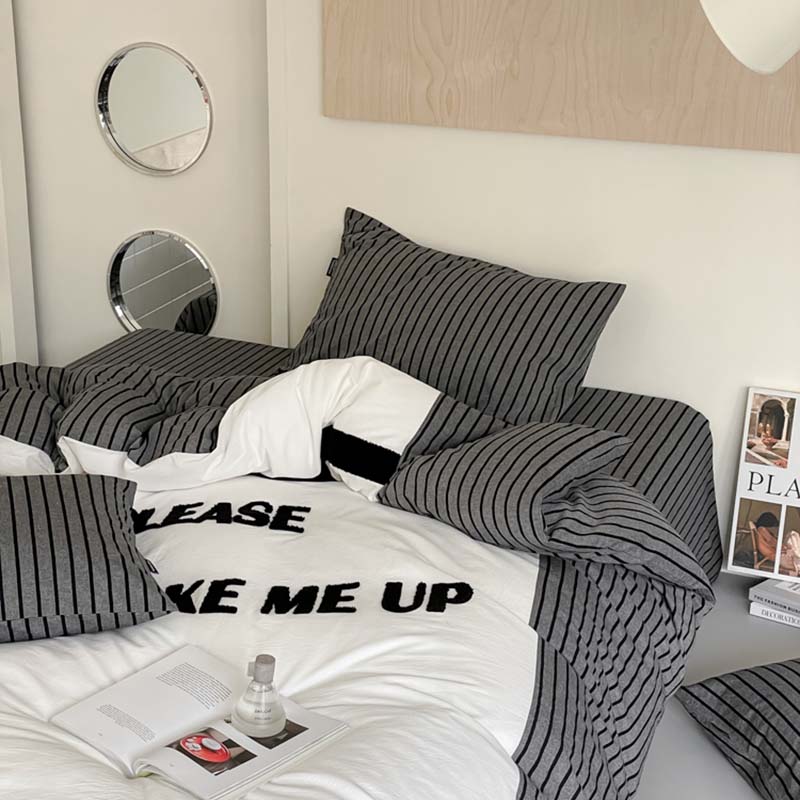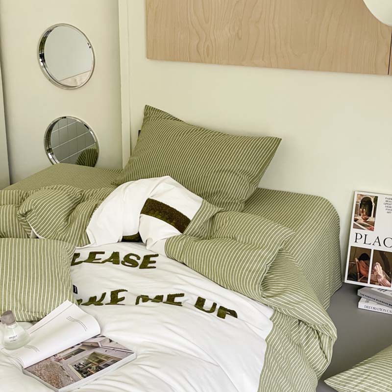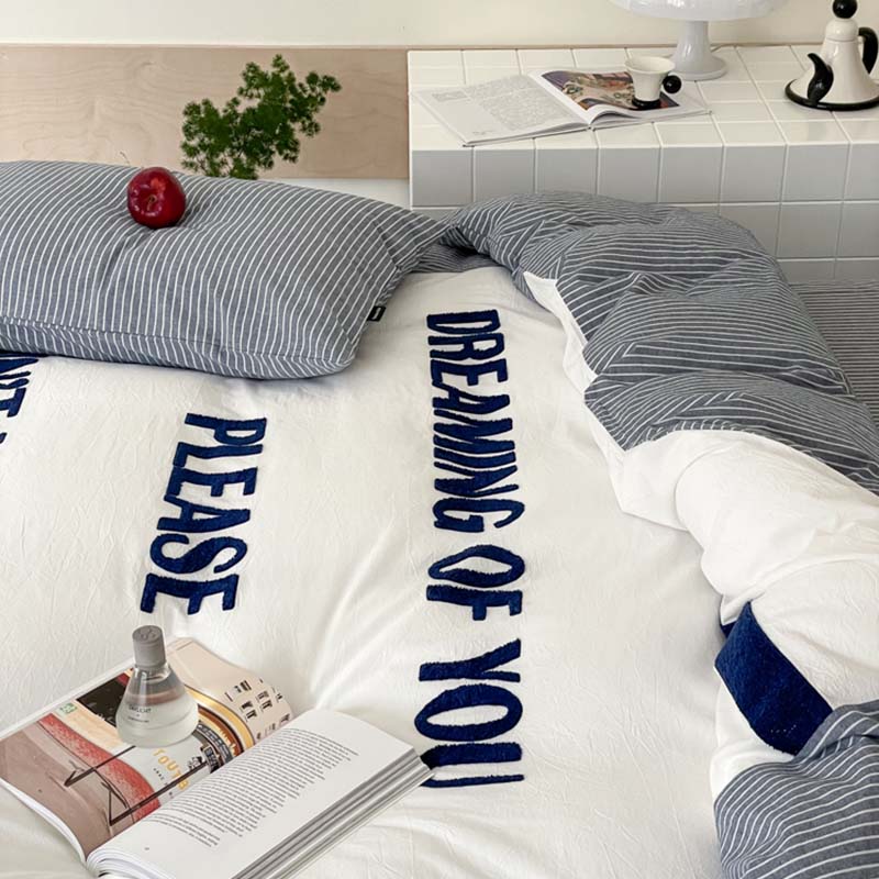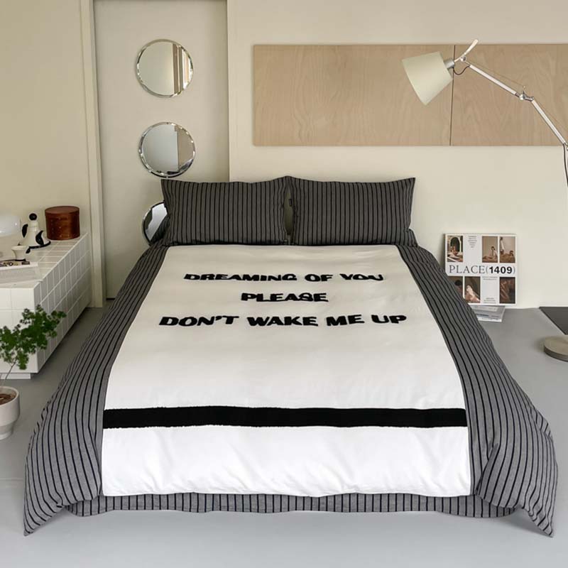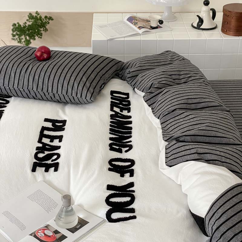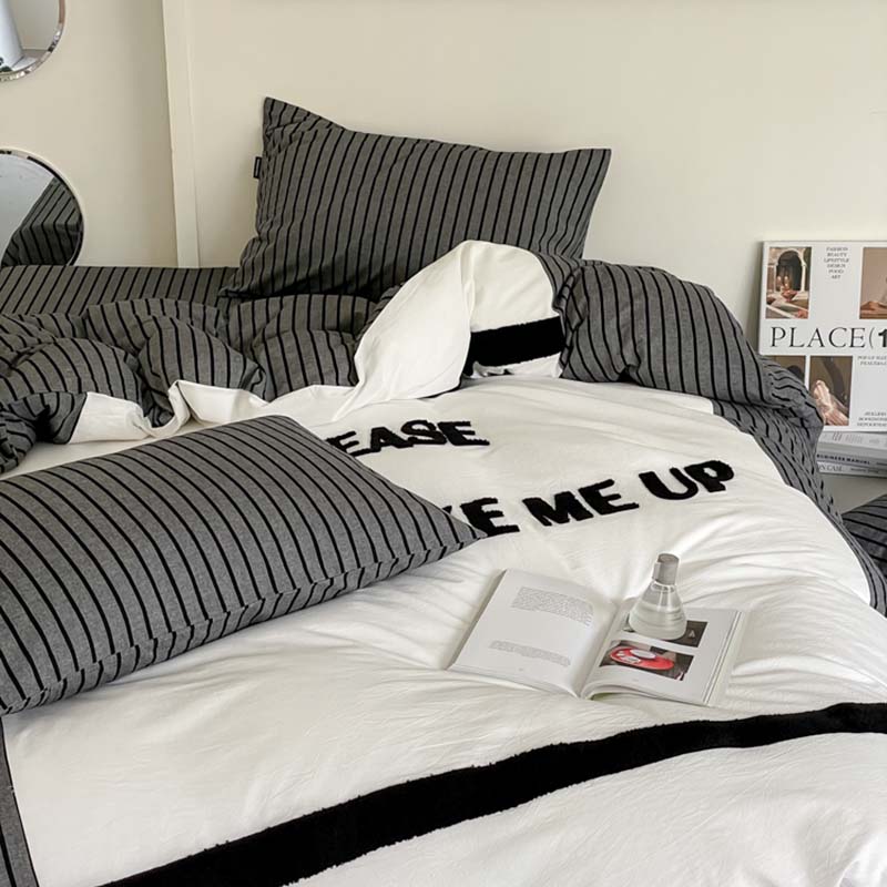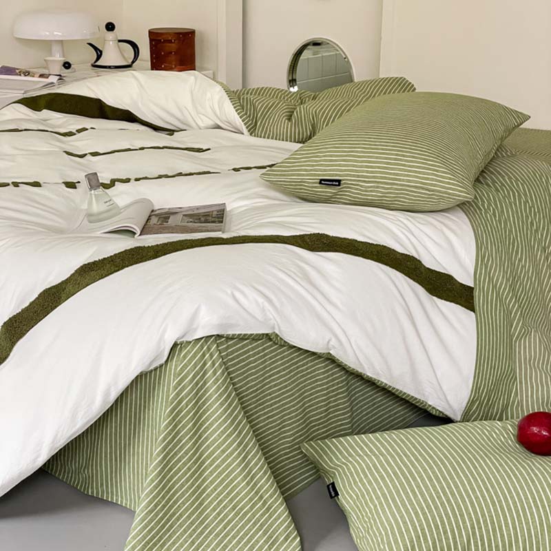 (总)圆岛家纺 2024新款博主风全棉色织水洗棉拼接毛巾绣四件套