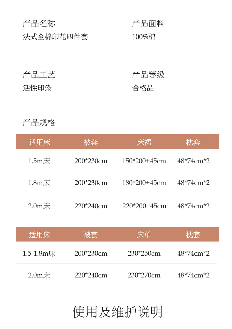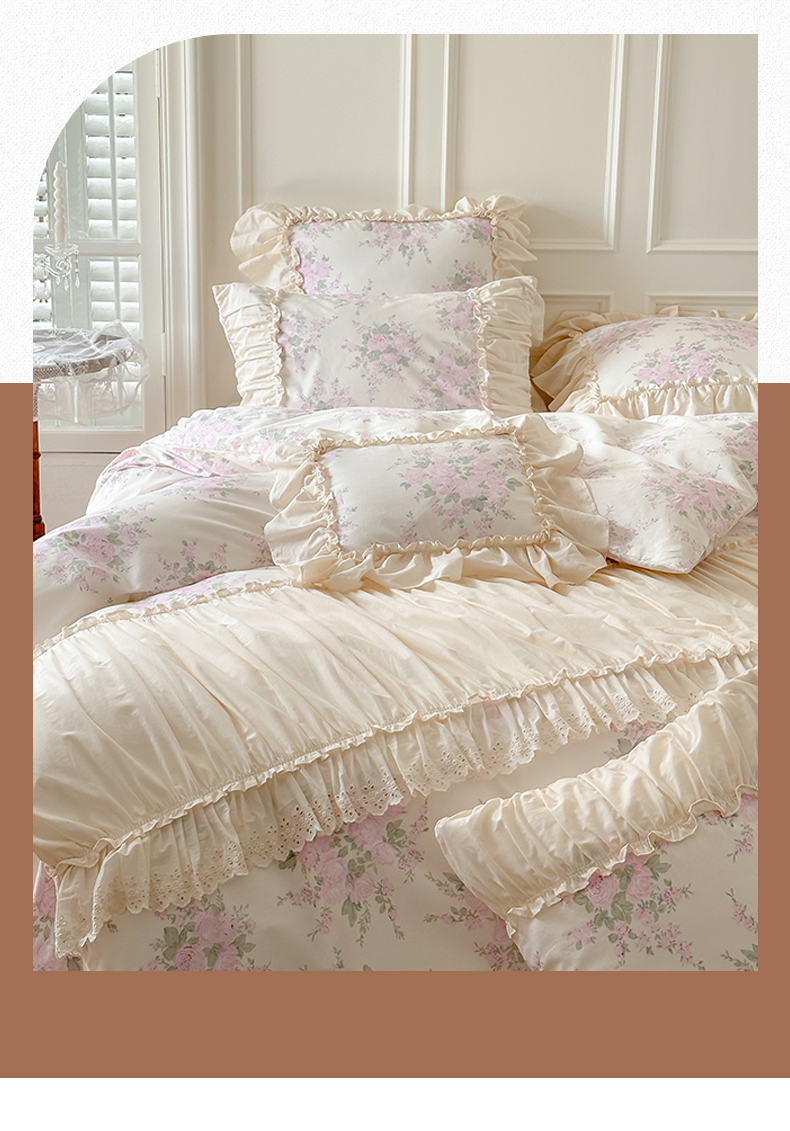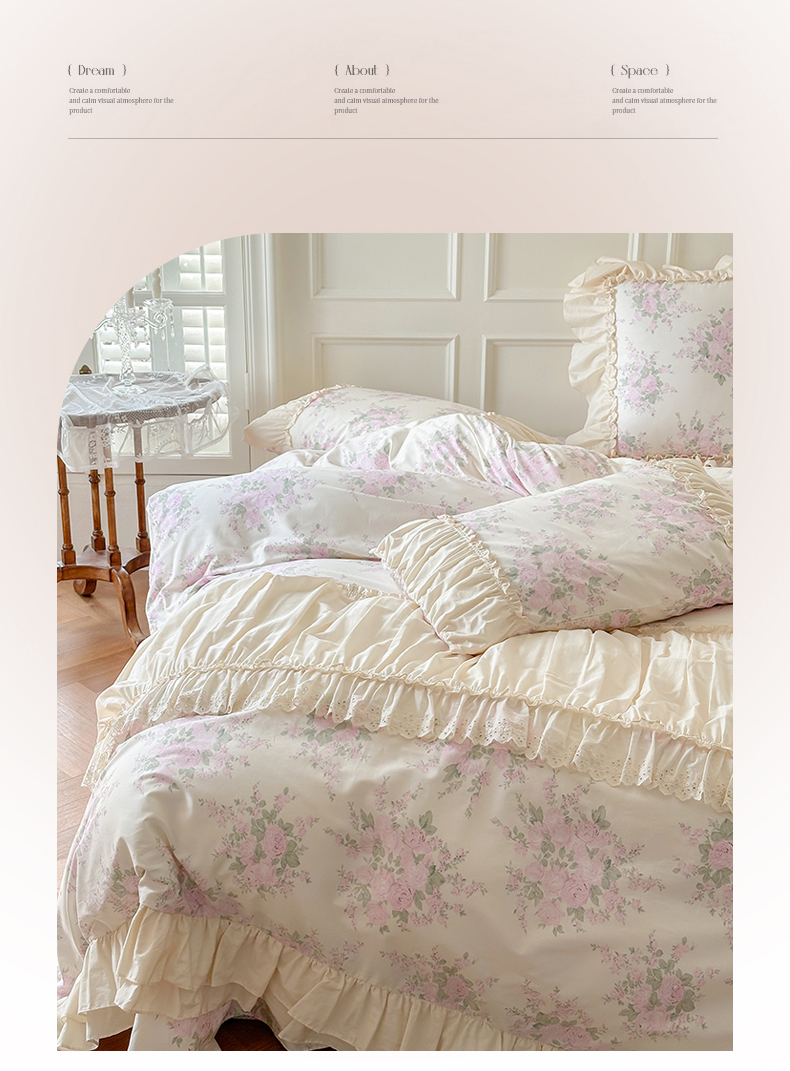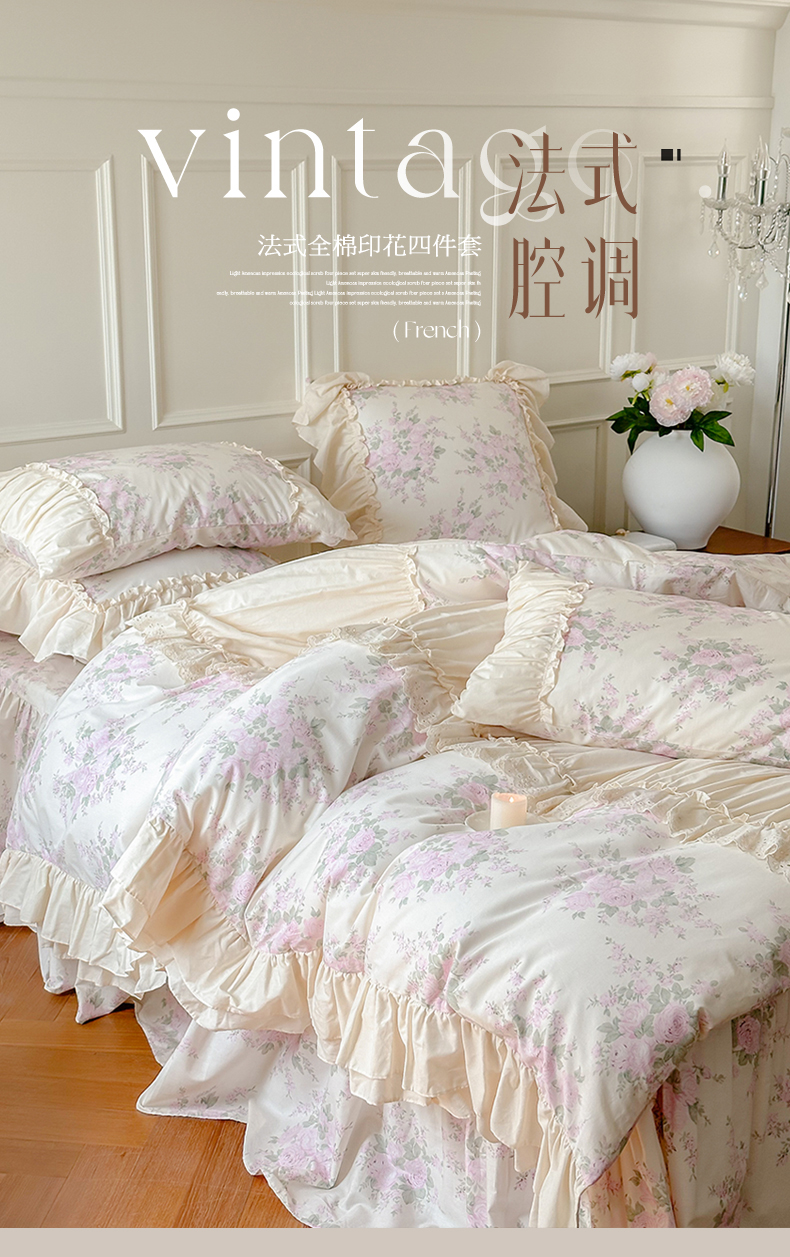 商品名称:婳庭家居 2024新款法式全棉印花四件套 花卉-淡粉