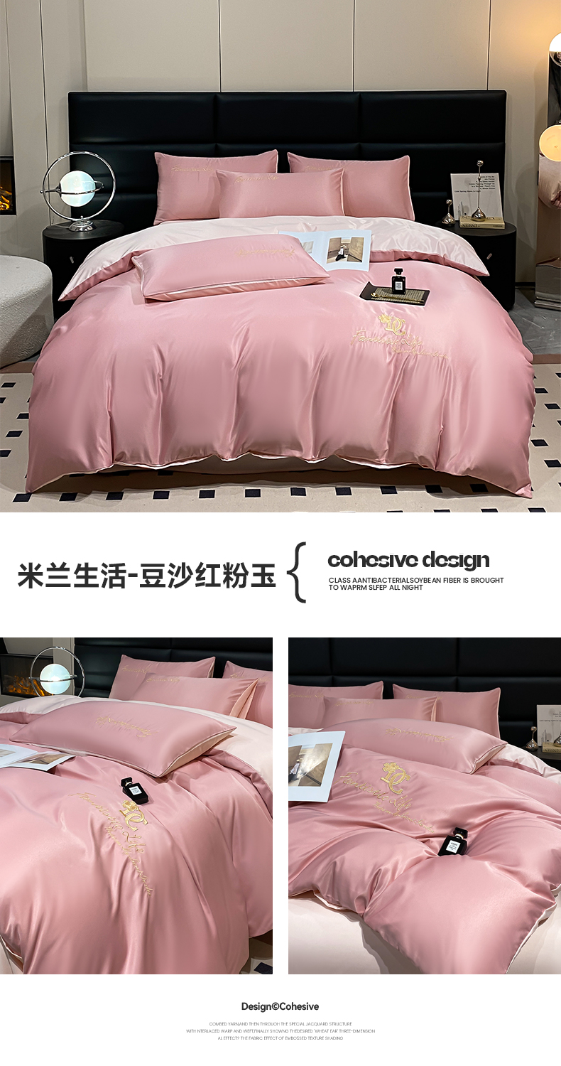 当前位置: 91家纺网 > 商品网购 > 床品套件 > 四件套 > 真丝四件套 > 澳梵 2024新款水洗真丝刺绣四件套 米兰生活-豆沙红粉玉