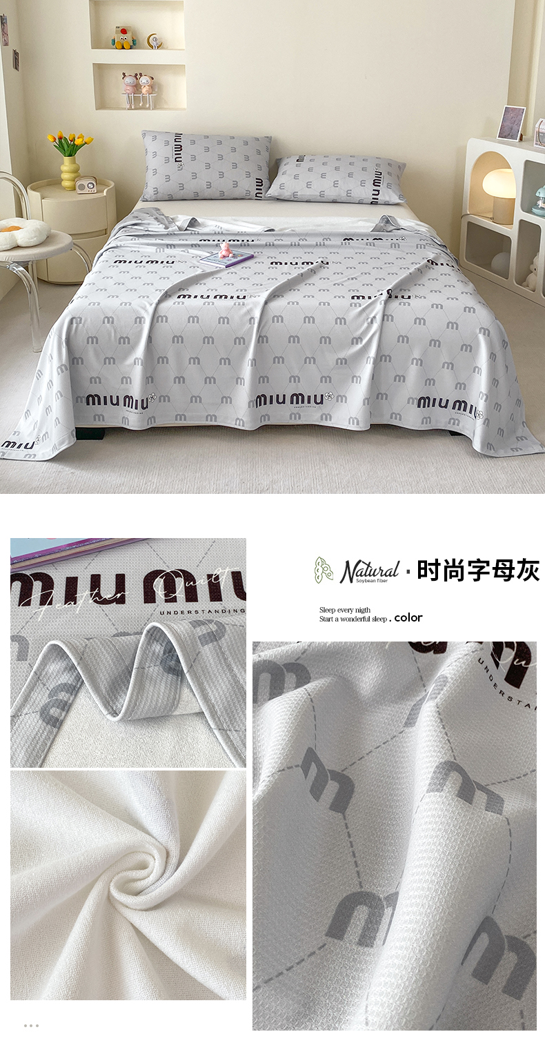 商品名称:典冠 2024新款A类凉感华夫格竹纤维冷感毯毛巾被 时尚字母灰