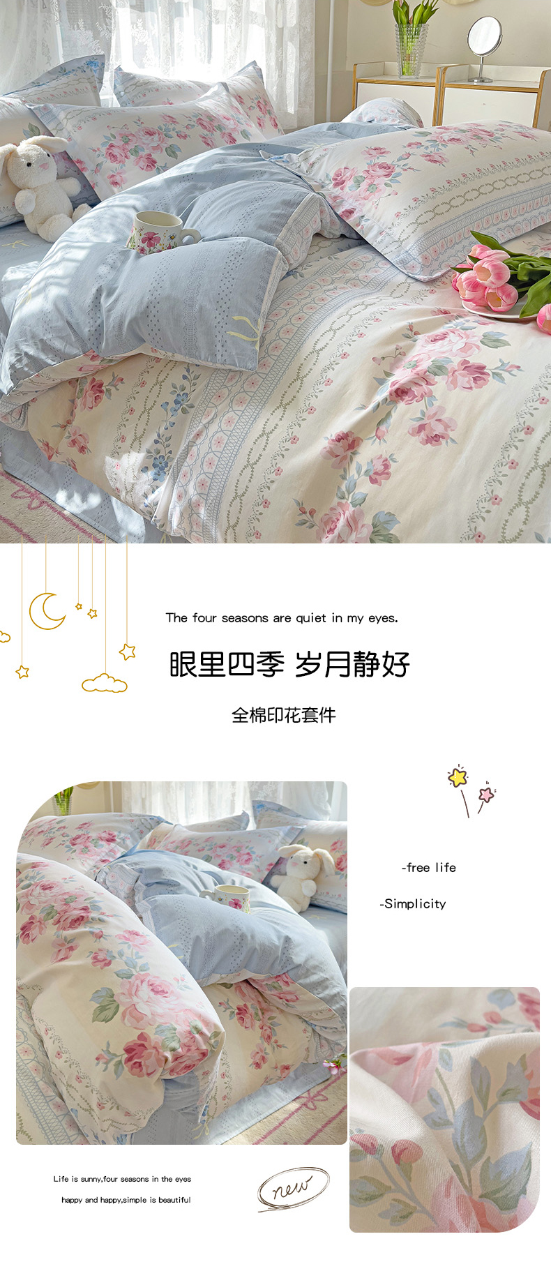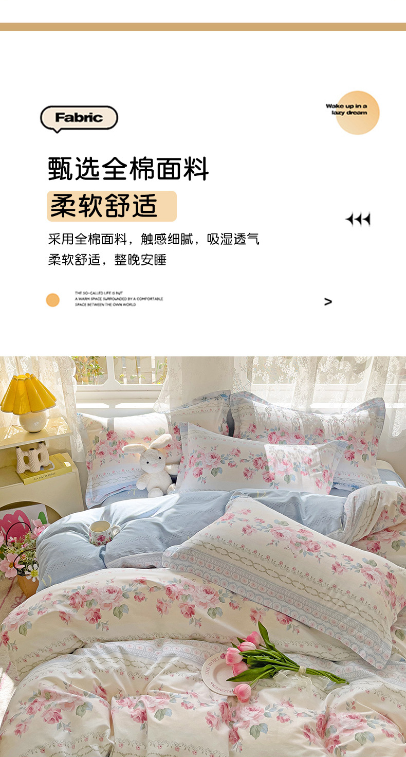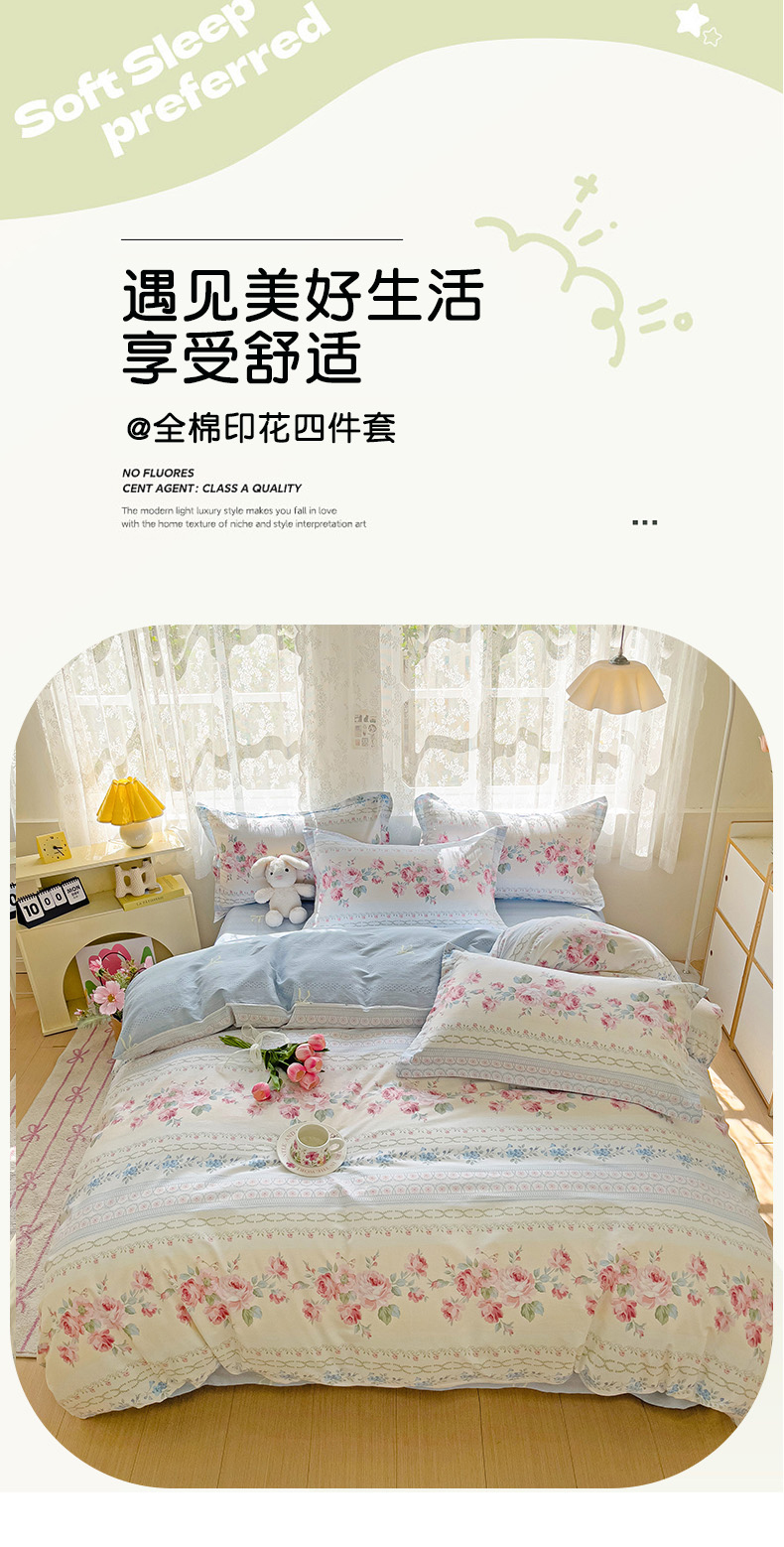 商品名称:(总)优选良品 2025新款直播爆款全棉-ins印花系列四件套纯棉三件套床单床笠