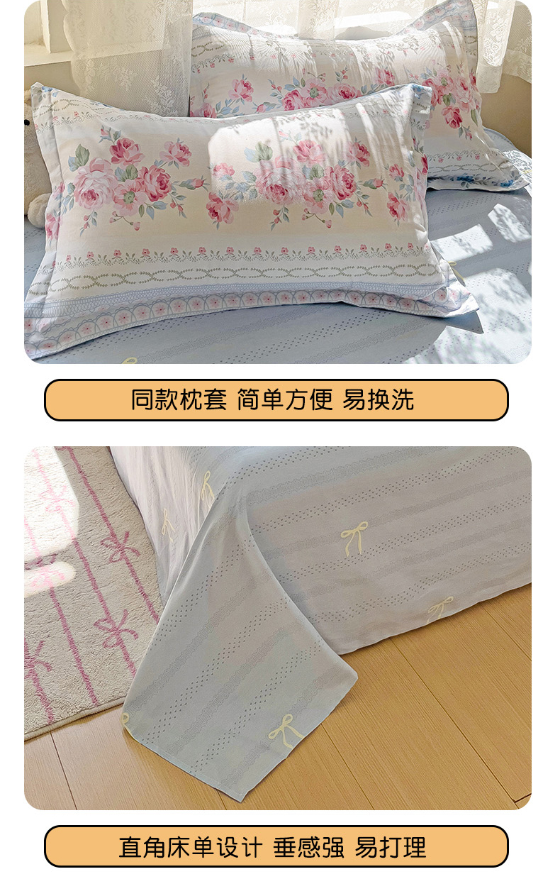 (总) 2025新款母婴级ins小清新双层纱印花床笠床垫保护罩枕套三件套,爱心,春朵,蝶梦,酣春,华梦,绮梦,素锦,复古浪漫,蝴蝶谷,蝴蝶结-蓝,蝴蝶结-紫,恋曲,梦露,晚风逐梦,微甜