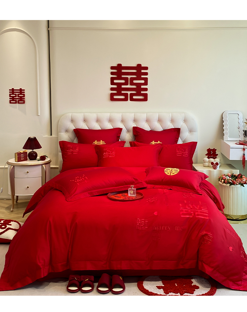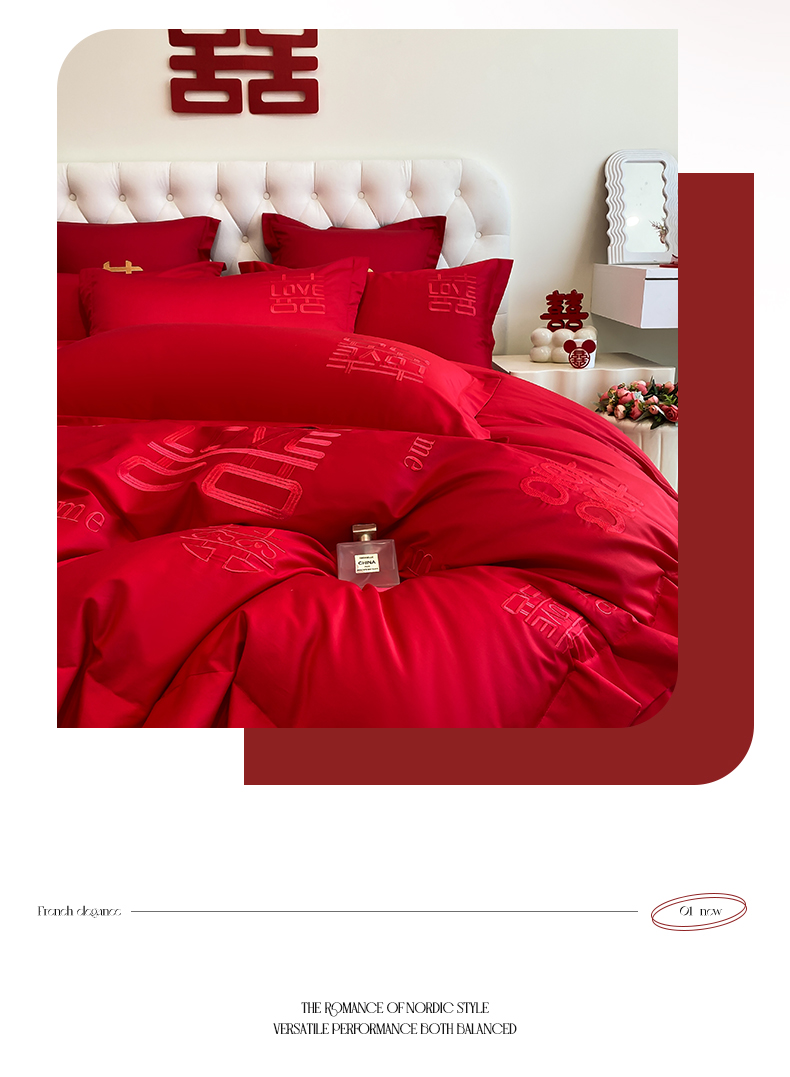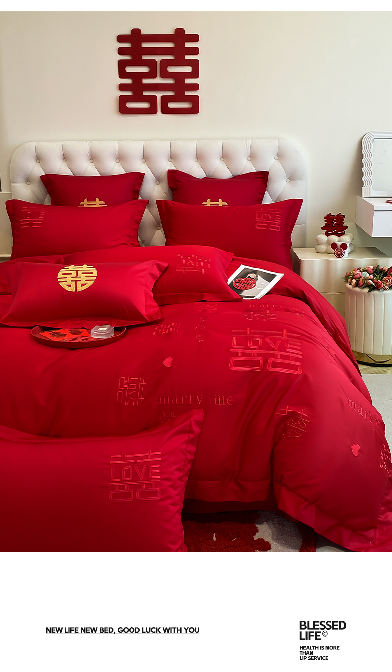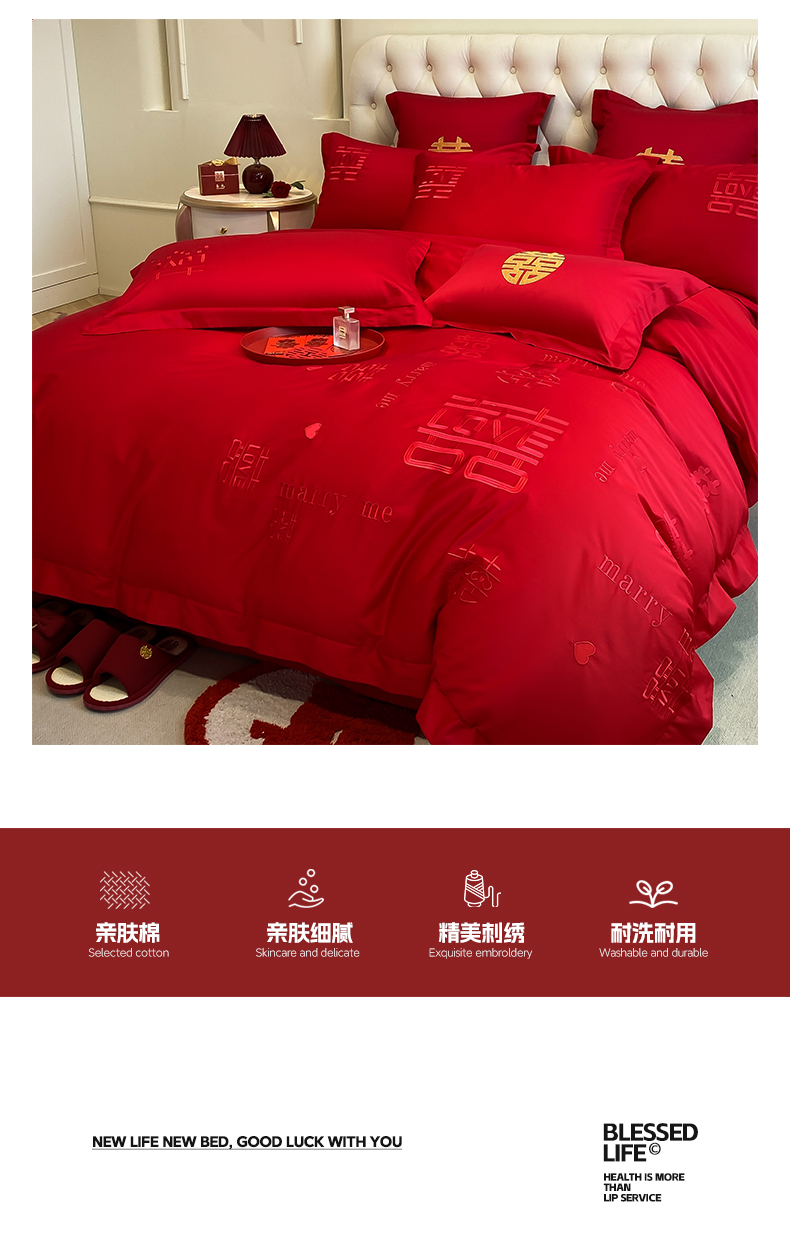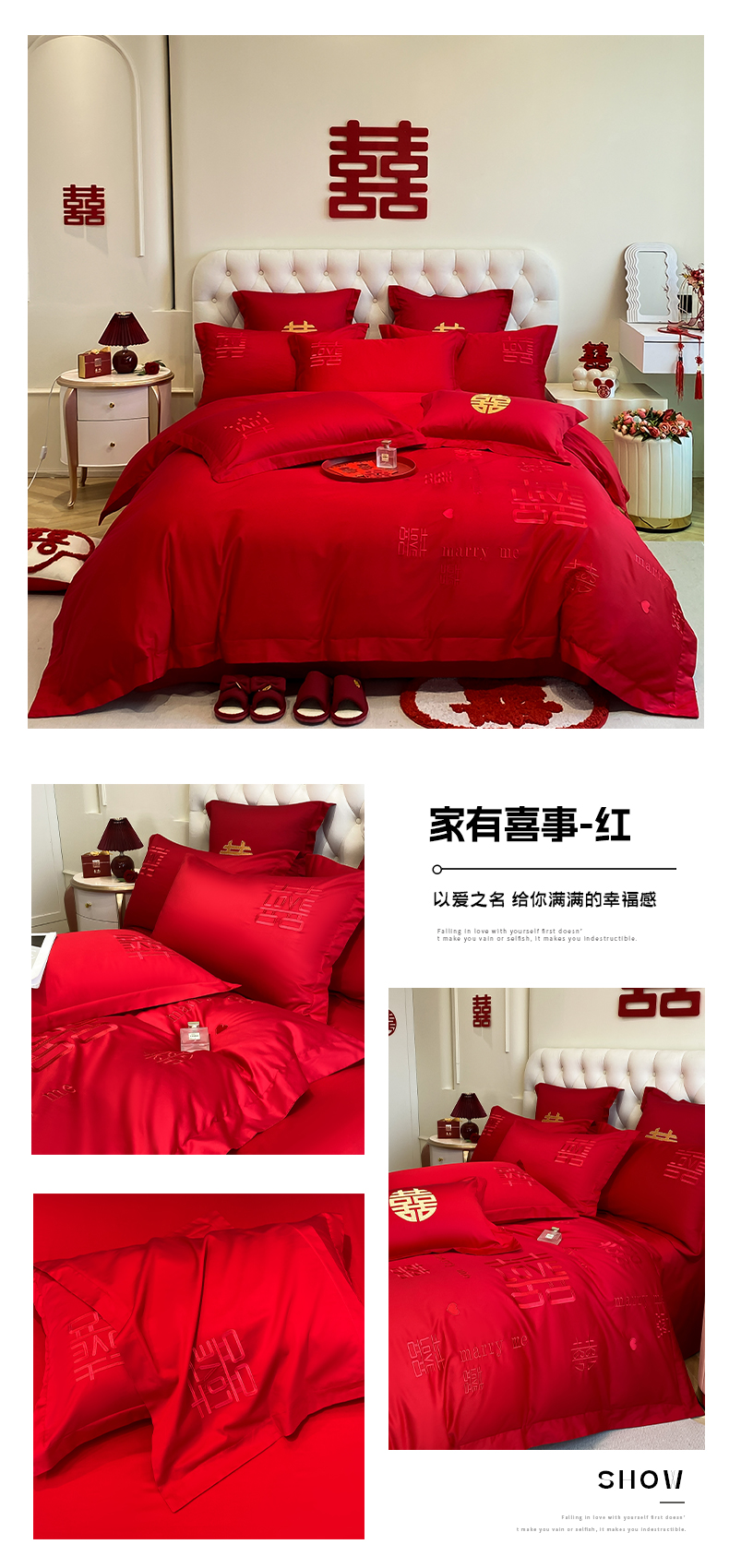 欧乐蒂 2025新款亲肤棉婚庆刺绣四件套-终版 家有喜事-红