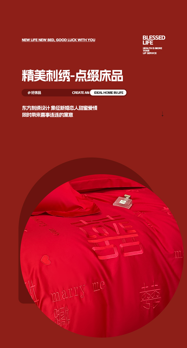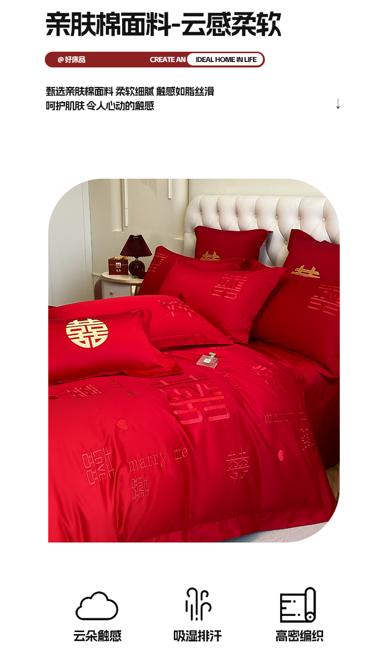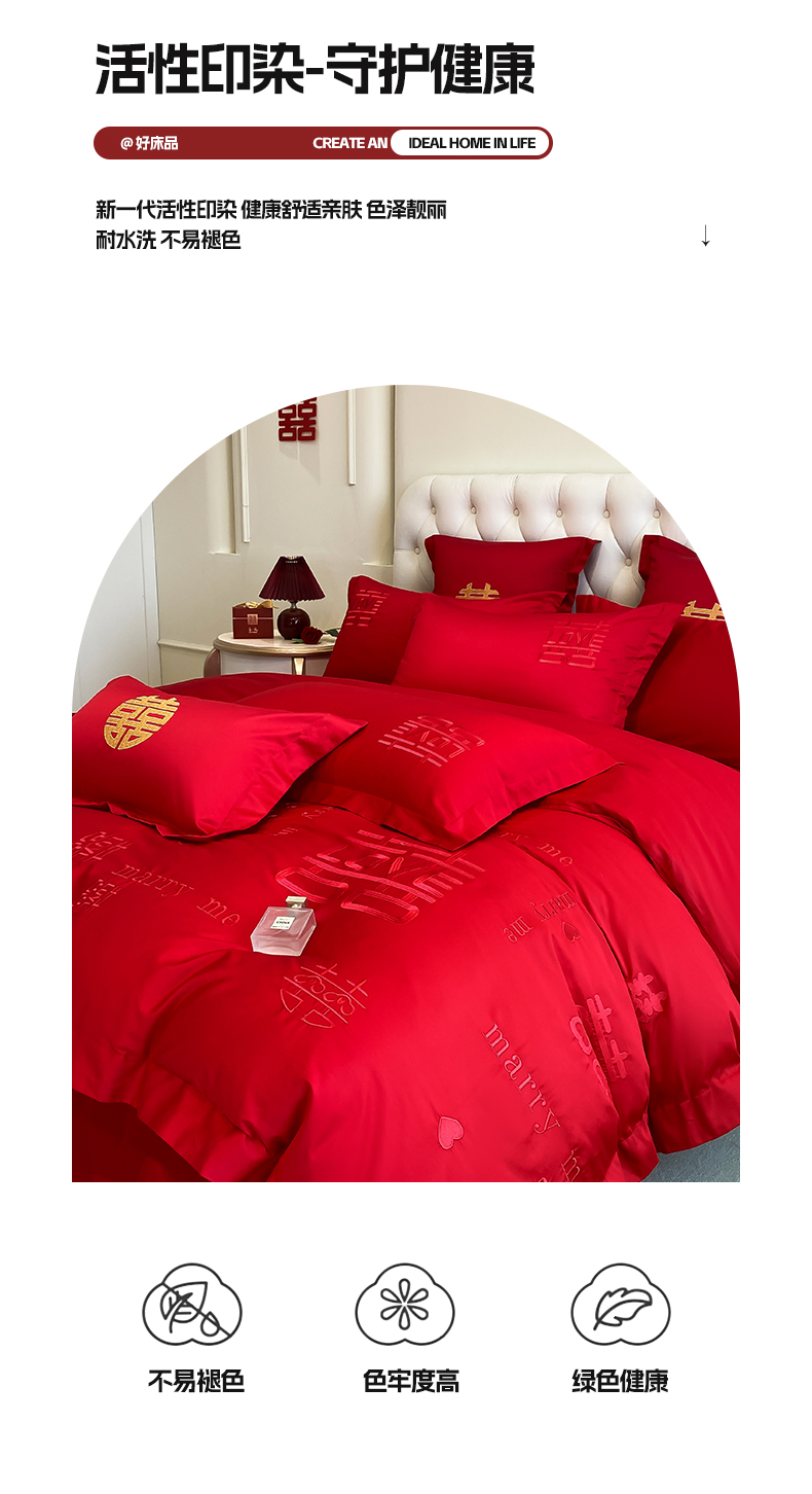 商品名称:欧乐蒂 2025新款亲肤棉婚庆刺绣四件套-终版 家有喜事-红