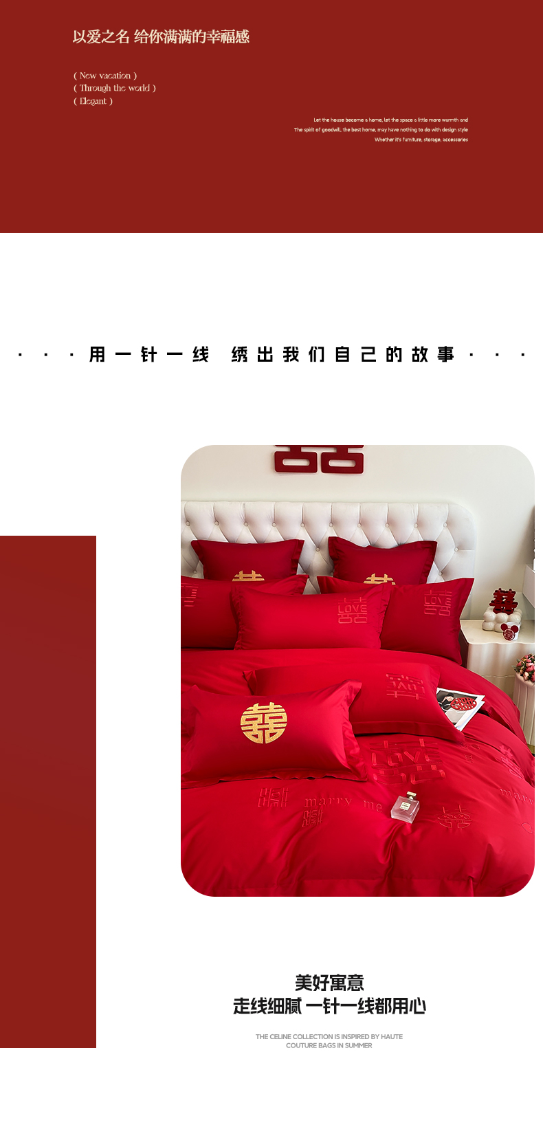 (总)欧乐蒂 2025新款全棉刺绣婚庆四件套,佳偶天成,龙凤和美,龙姿凤彩,玫瑰恋人,倾城之恋,双囍临门,甜蜜爱情,囍结良缘