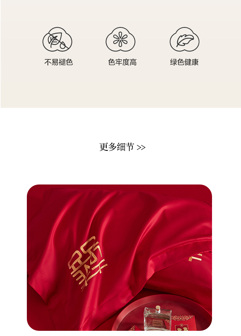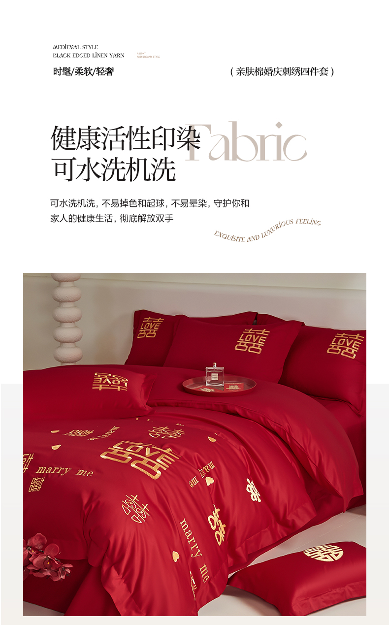 商品名称:欧乐蒂 2025新款亲肤棉婚庆刺绣四件套-家有喜事 家有喜事-金