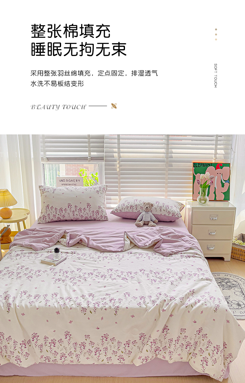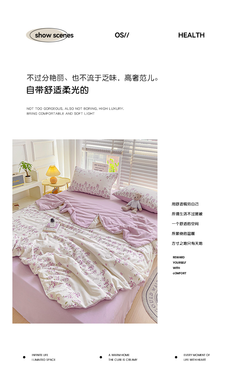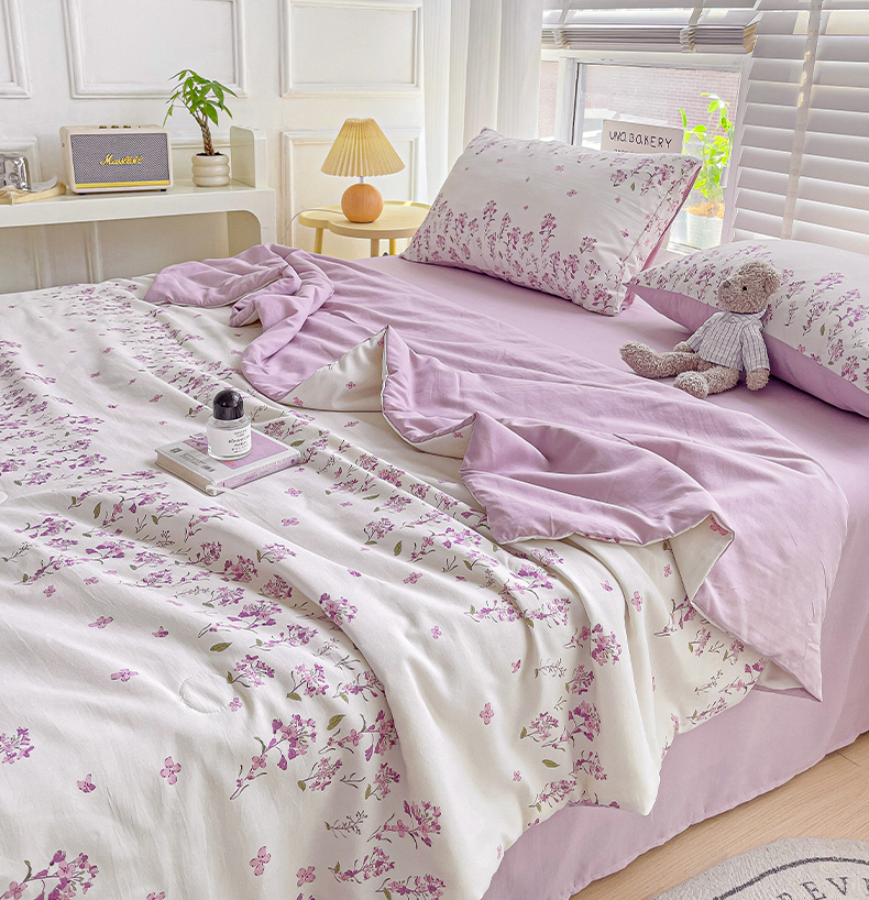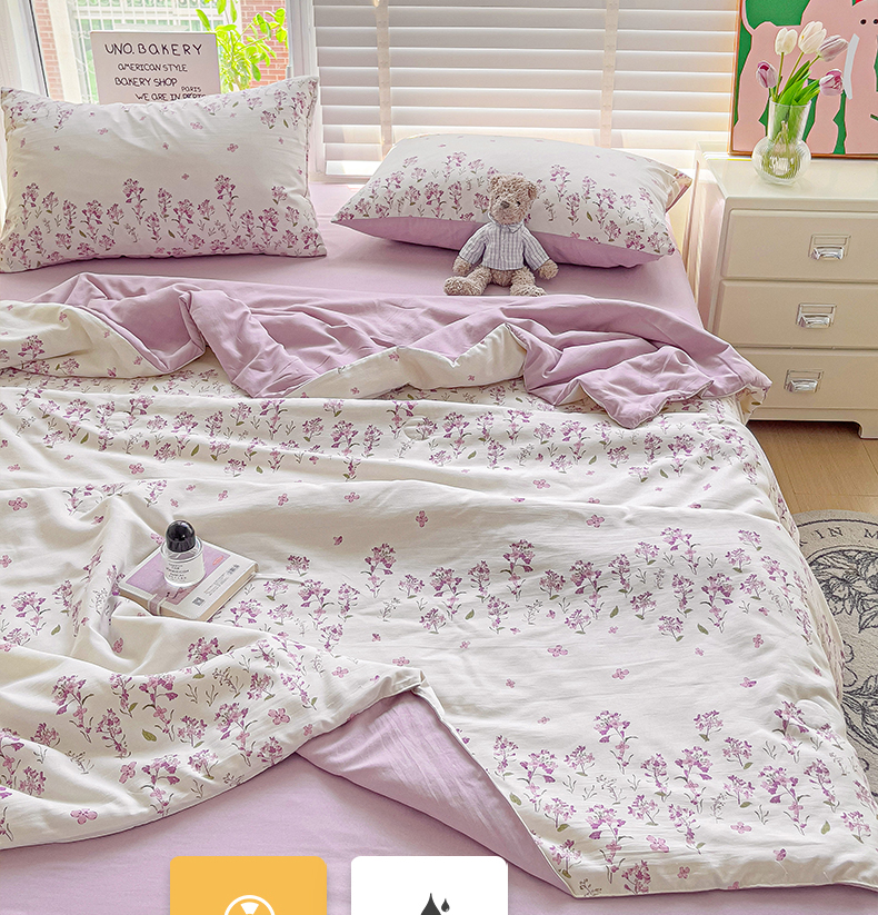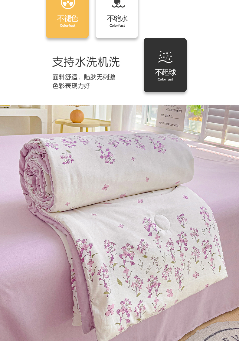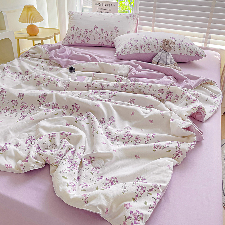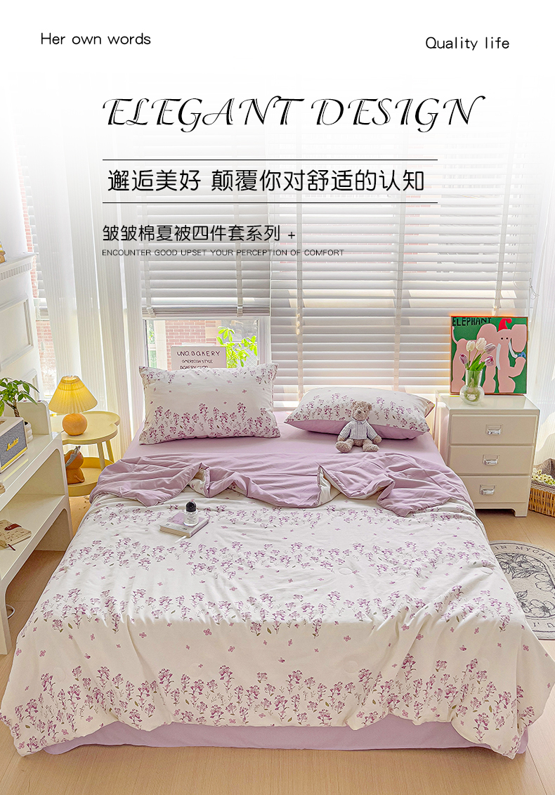 商品名称:优选 2025直播爆款水洗皱皱夏被四件套空调被芯三件套春秋被子 梦幻紫兰