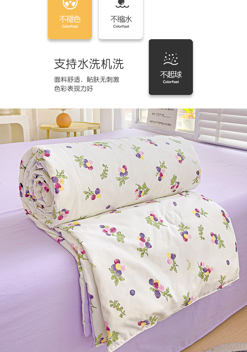 商品名称:优选良品 2025直播爆款水洗皱皱夏被四件套空调被芯三件套春秋被子 清新葡语