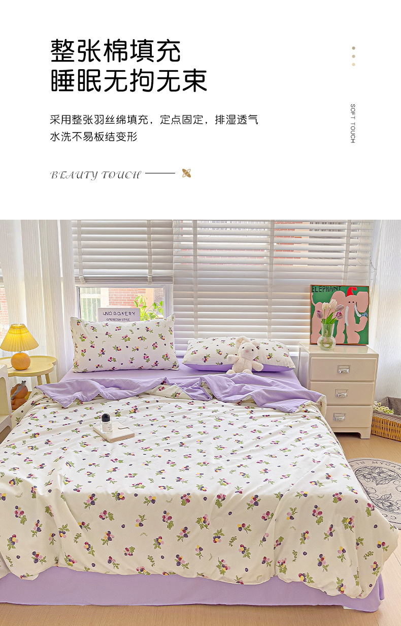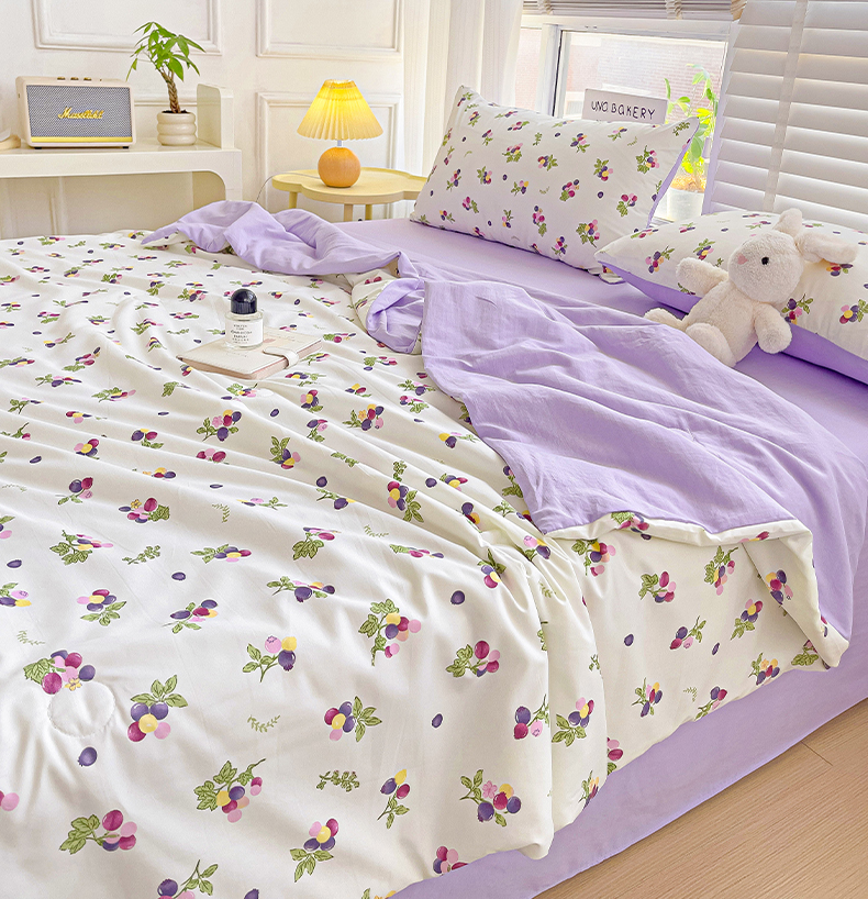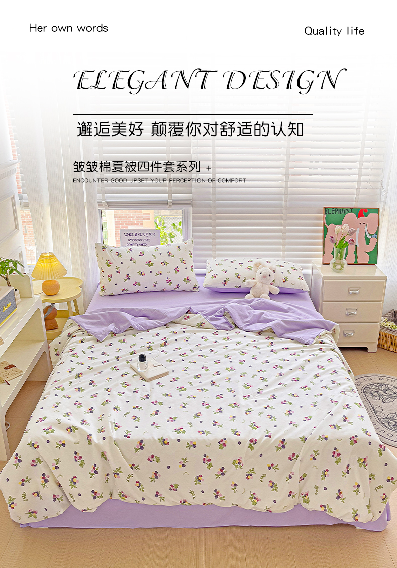 优选良品 2025直播爆款水洗皱皱夏被四件套空调被芯三件套春秋被子 清新葡语