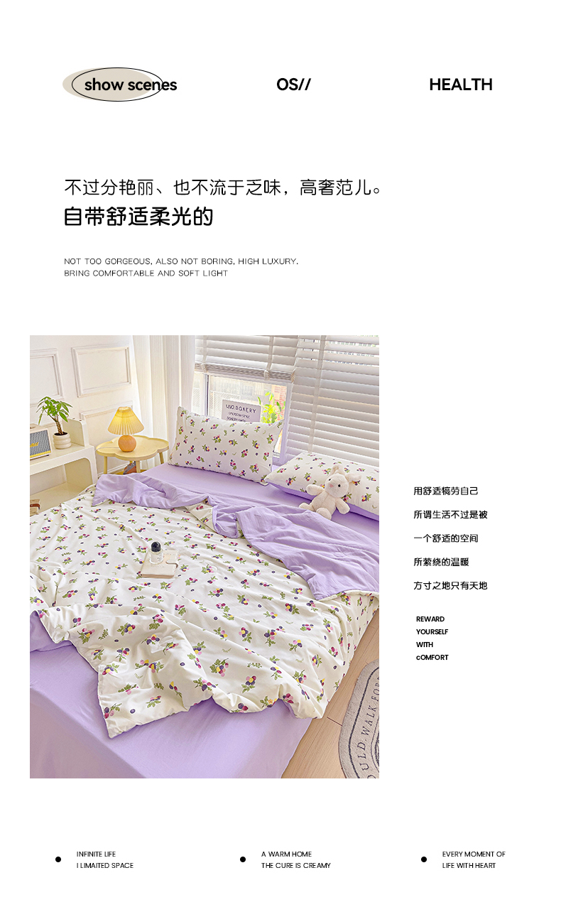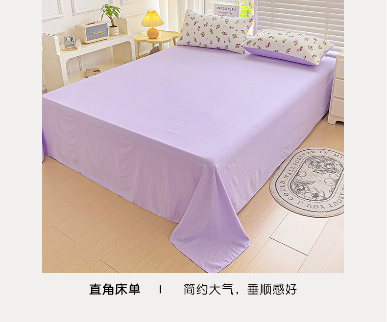 优选良品 2025新款韩版轻奢皱皱纱水洗棉拼色床单床笠四件套三件套-芋泥紫,芋泥紫