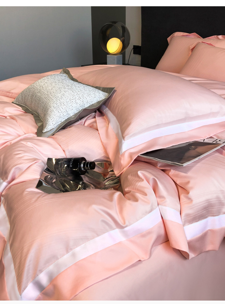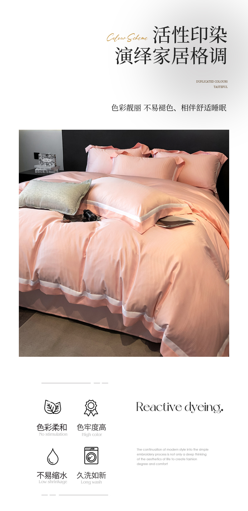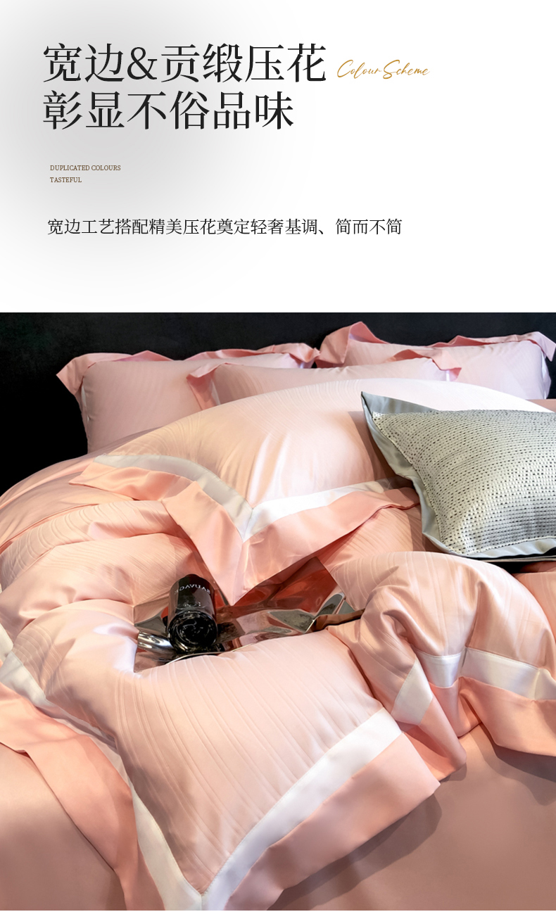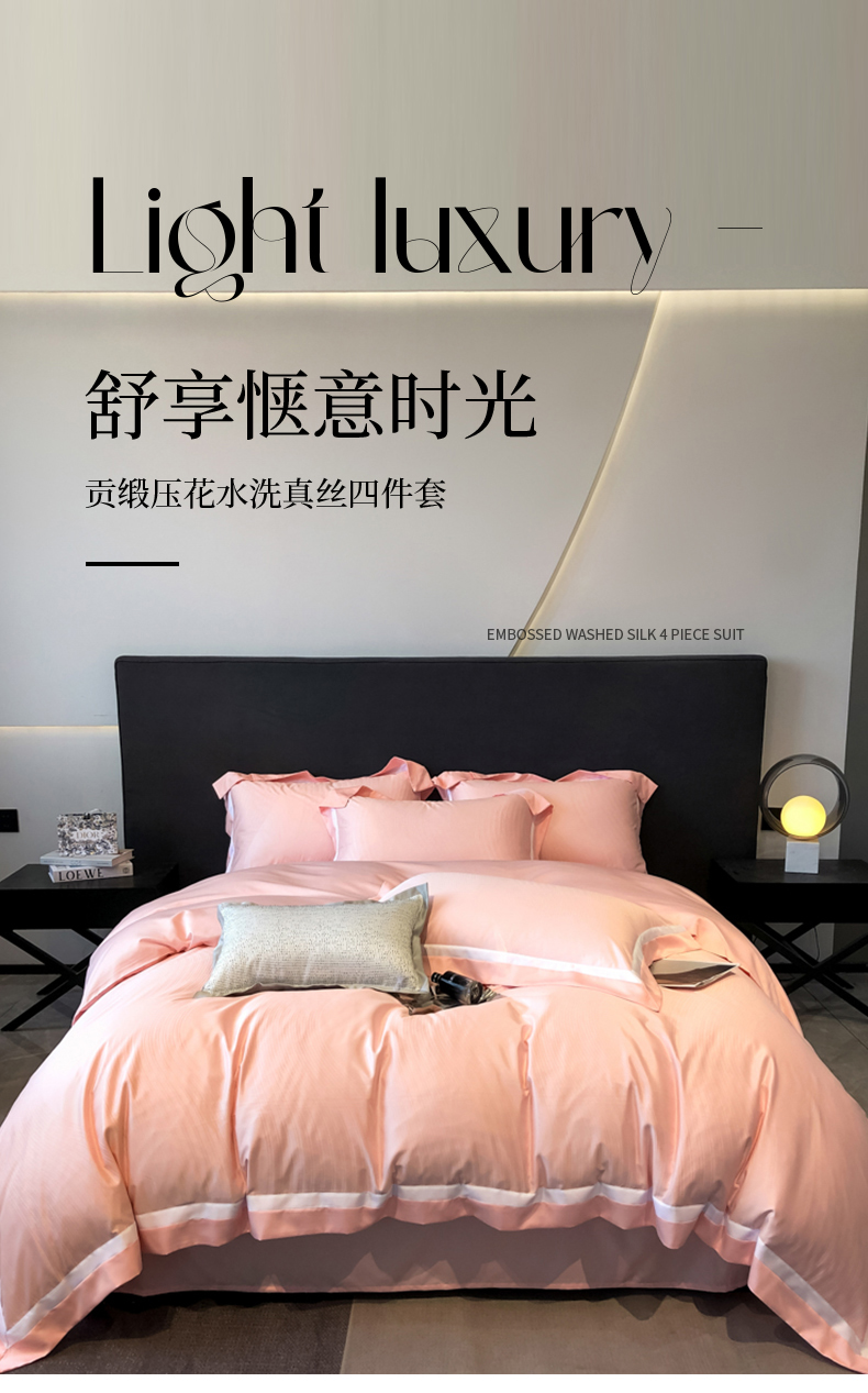 商品名称:遇见家居生活馆 2024新款贡缎压花水洗真丝四件套 秋水-粉色