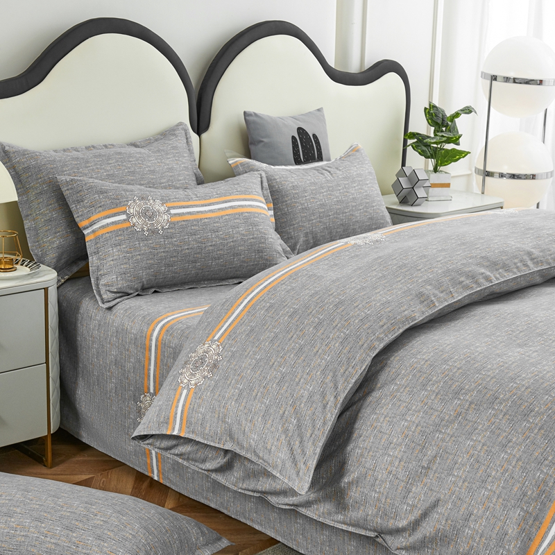 (总)鑫缘家纺 2025新款水洗磨毛纯色绣花四件套(110克),丁香紫,宝石蓝,星空灰,香槟金,石墨灰,浅豆沙