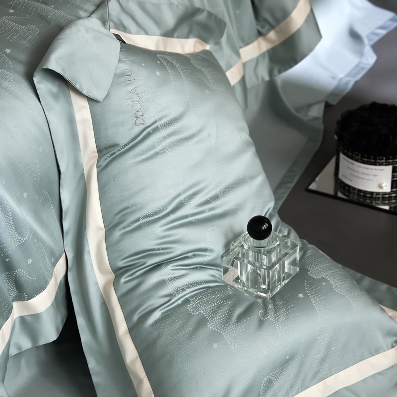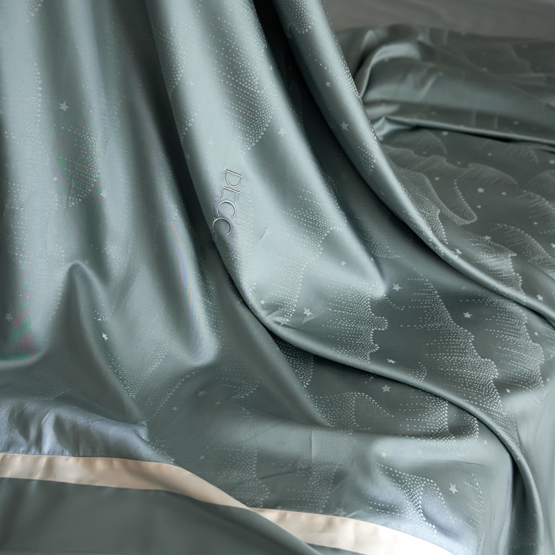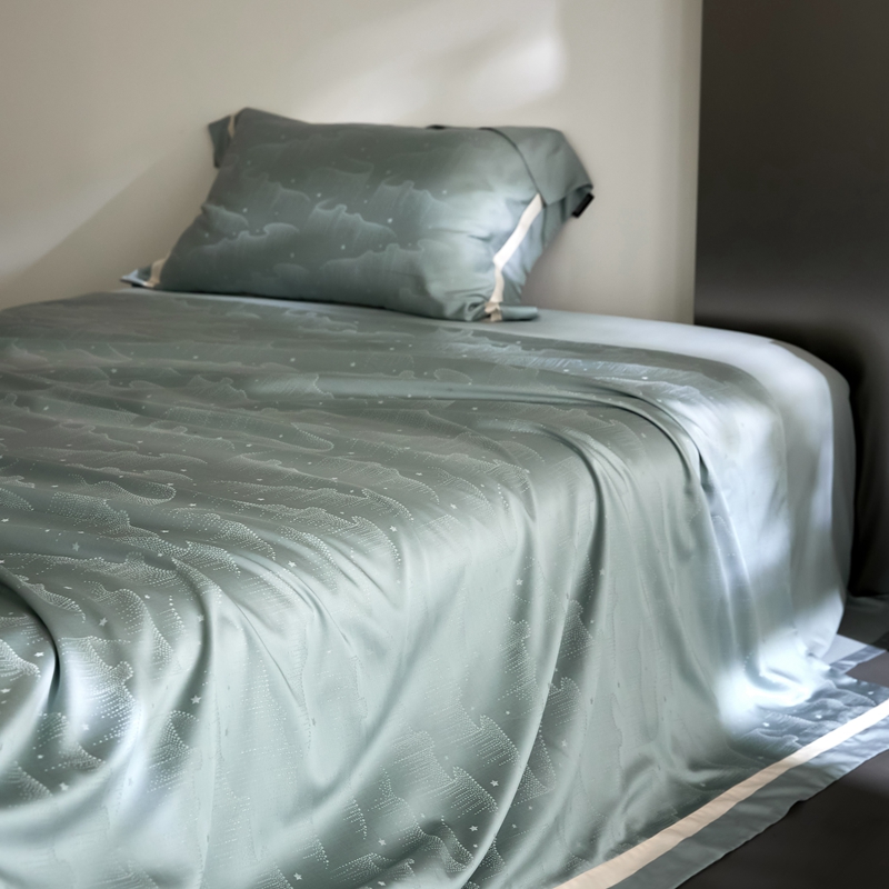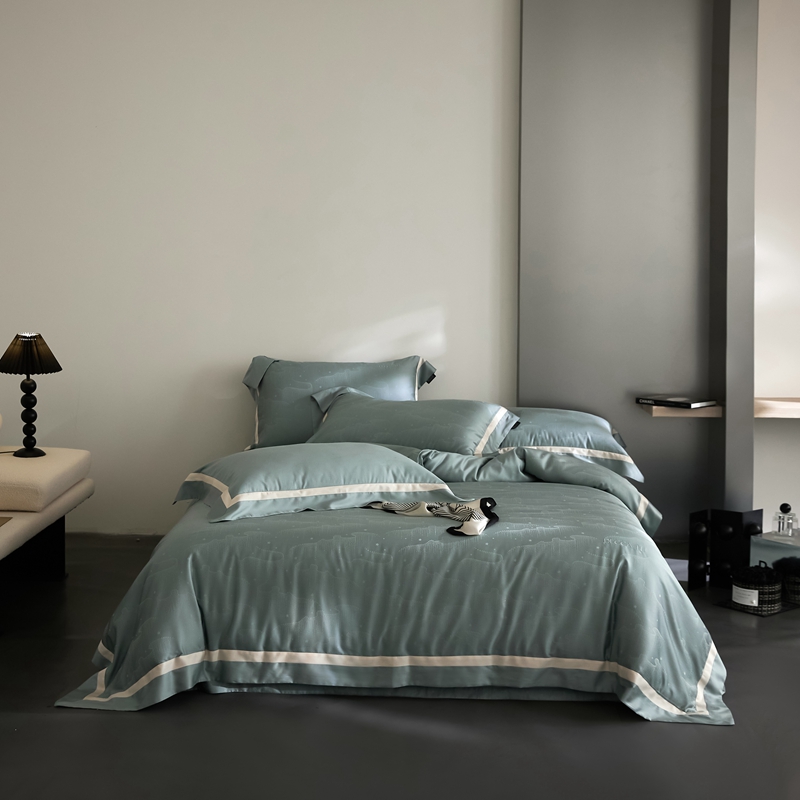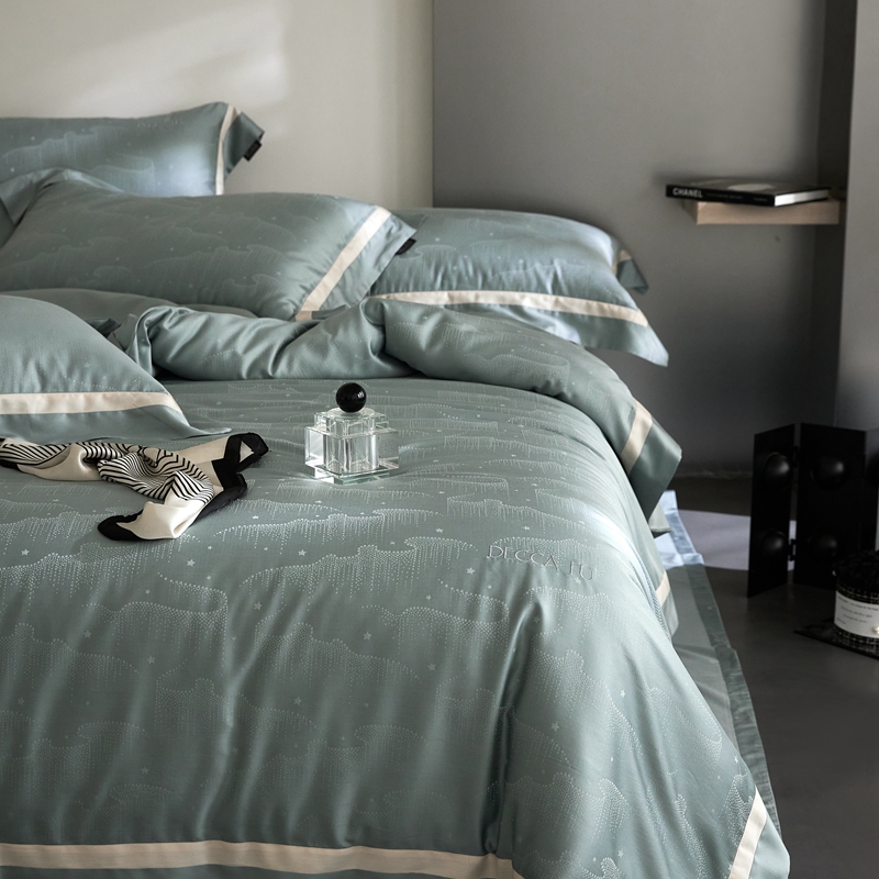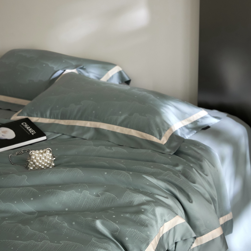安莱生活 2024新款60S天丝棉提花四件套三系列(银丝款)--天丝棉铂金星晴系列 星雨-苔青
