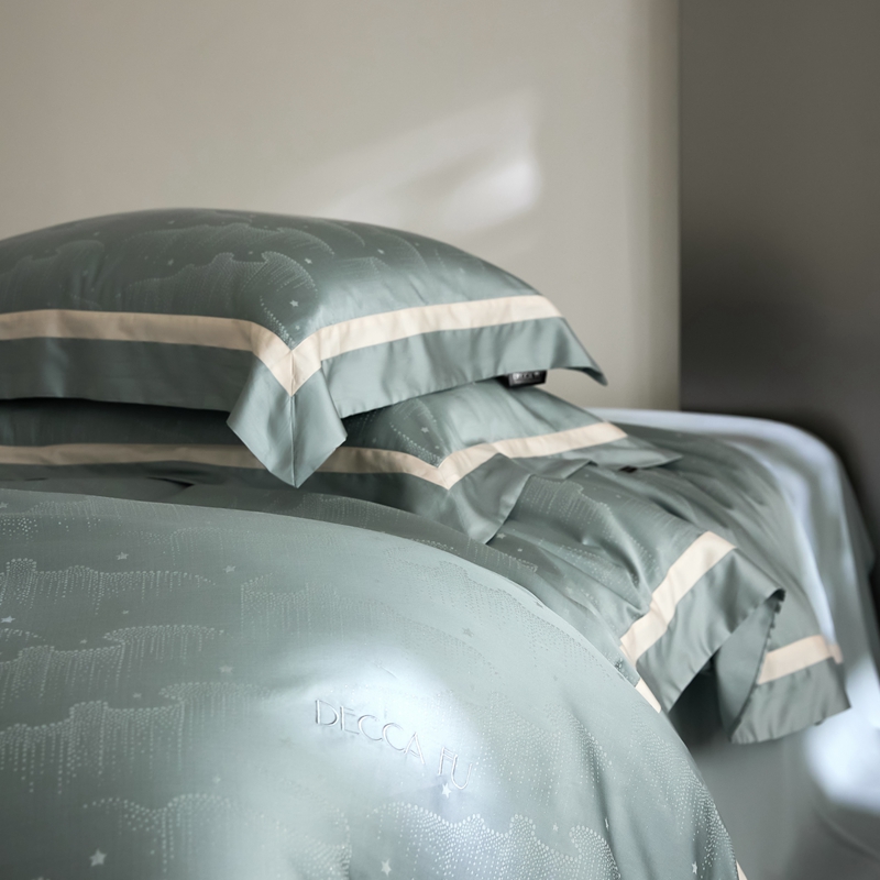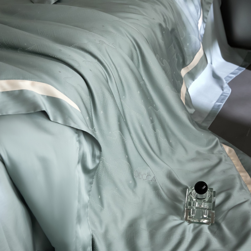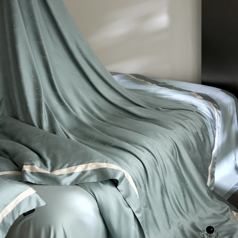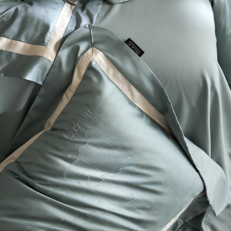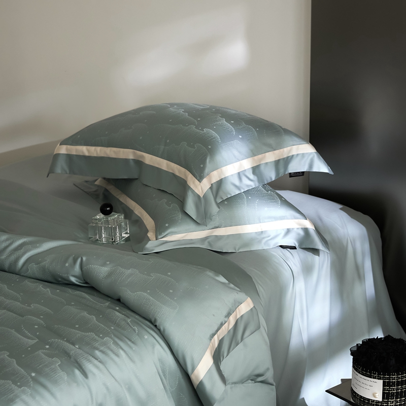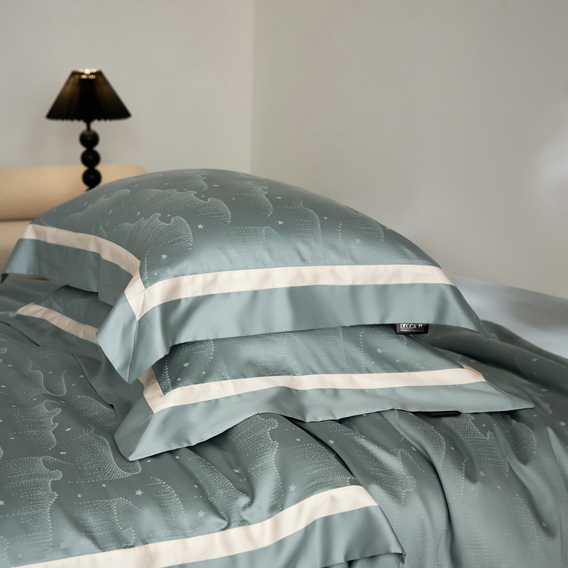 安莱生活 2024新款60S天丝棉提花四件套三系列(银丝款)--天丝棉铂金星晴系列 星雨-苔青
