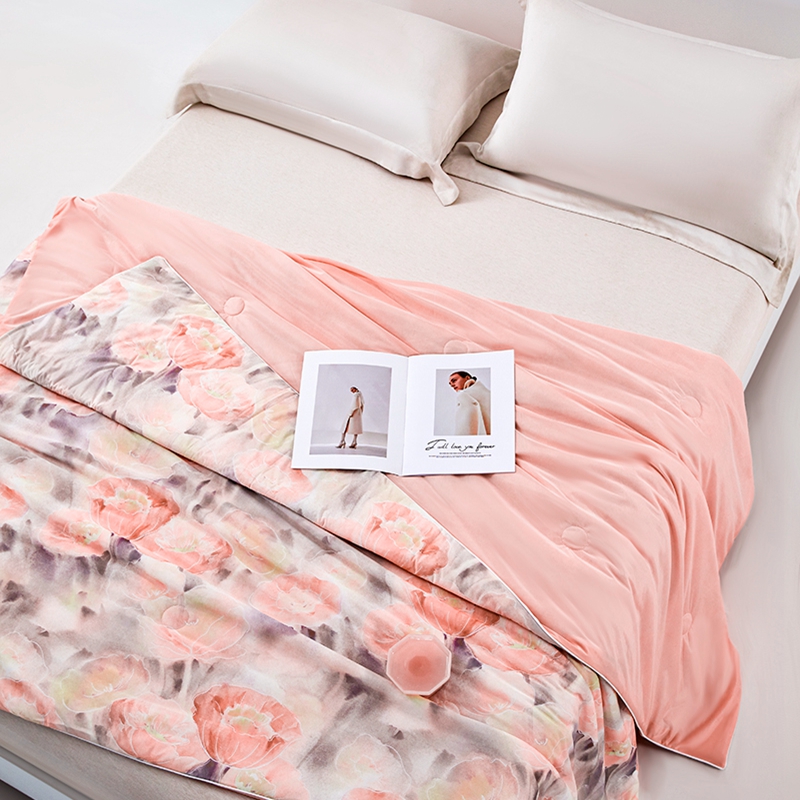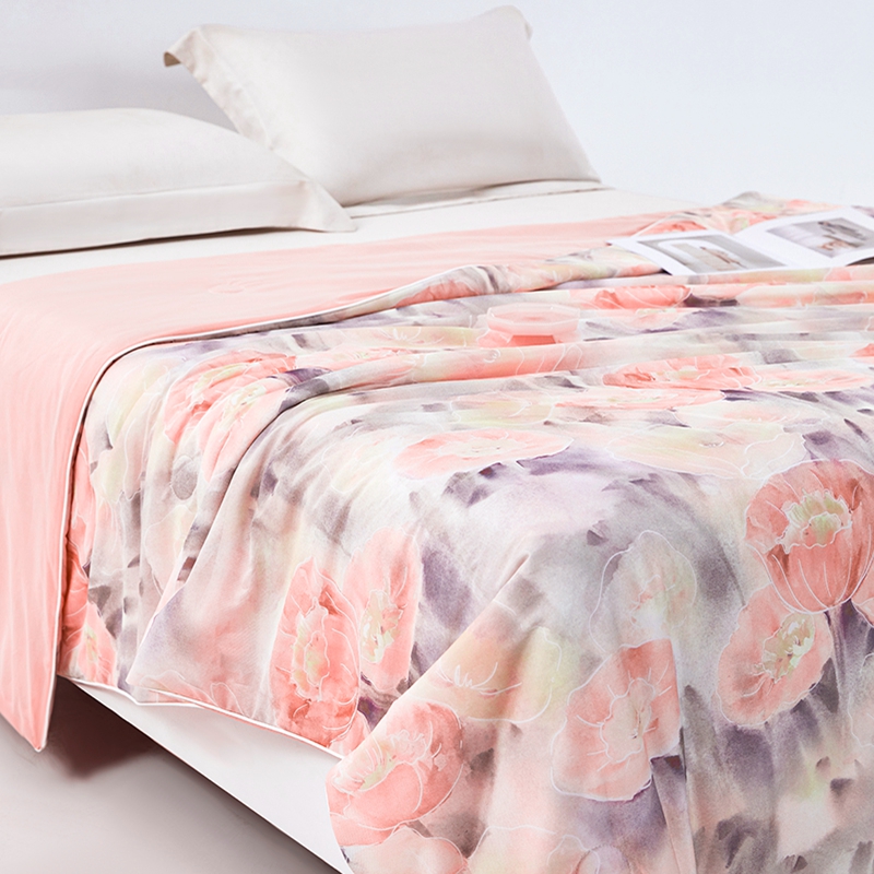 • 91家纺网 家纺一手货源 找家纺 缔锦 2024新款凉感丝夏被专版花型-漫步春色
