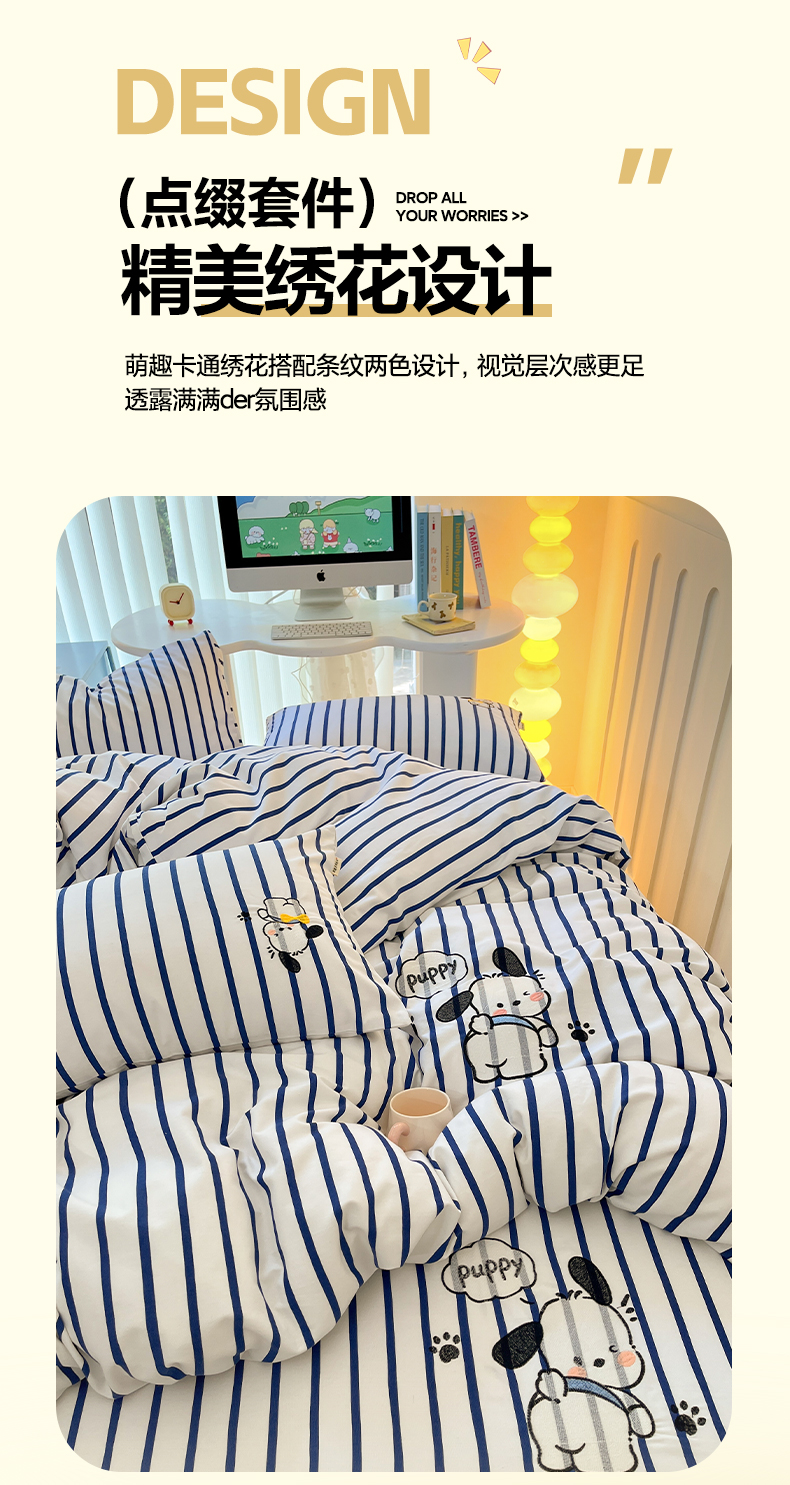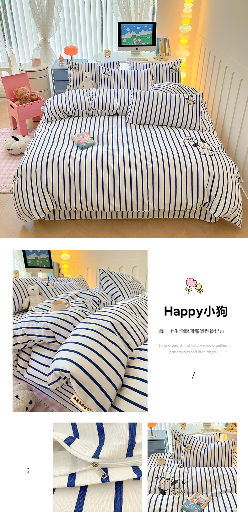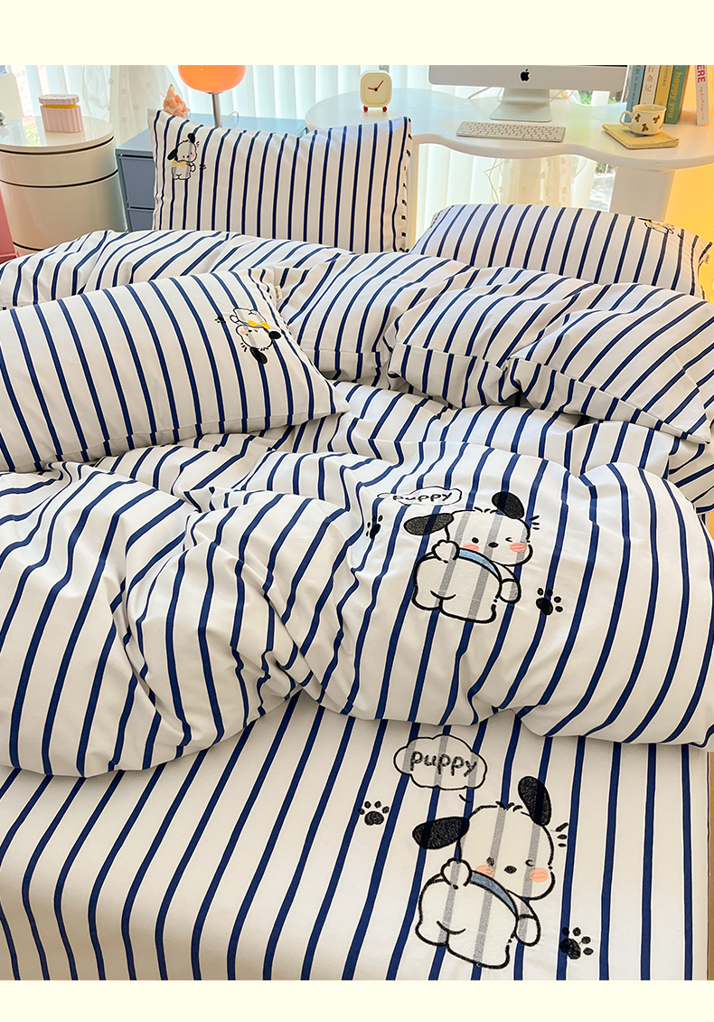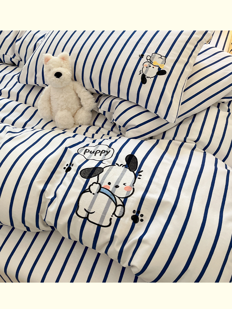 当前位置: 91家纺网 > 商品网购 > 床品套件 > 四件套 > 全棉普通四件套 > 雅居纺 2024新款全棉绣花老粗布单被套四件套 Happy小狗