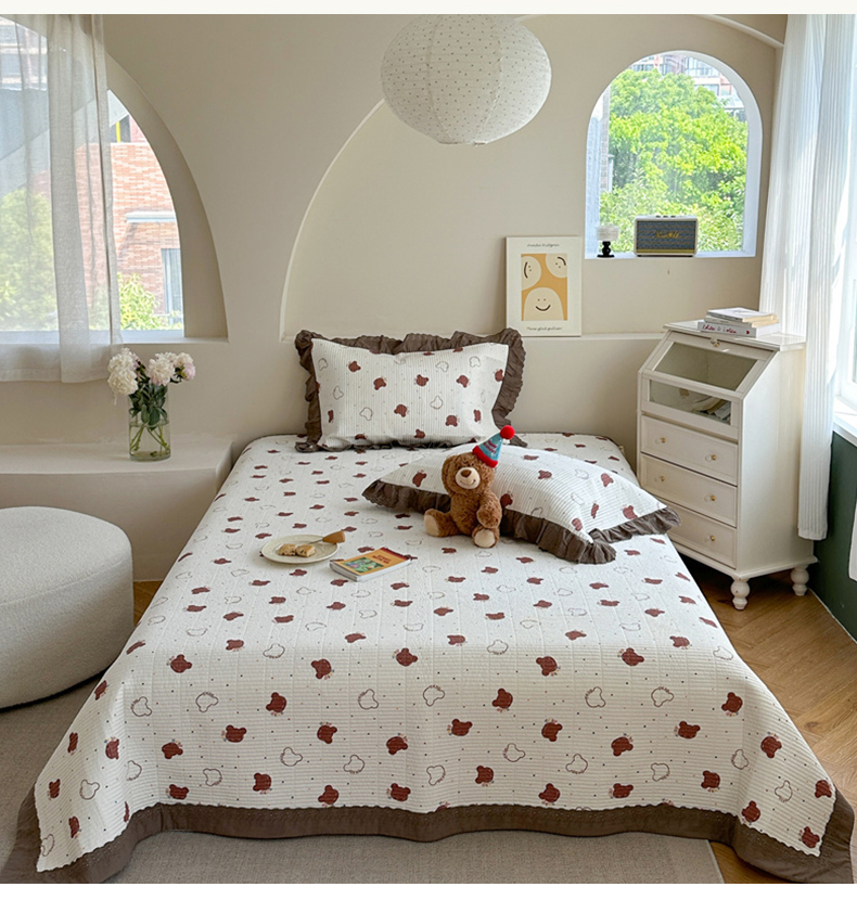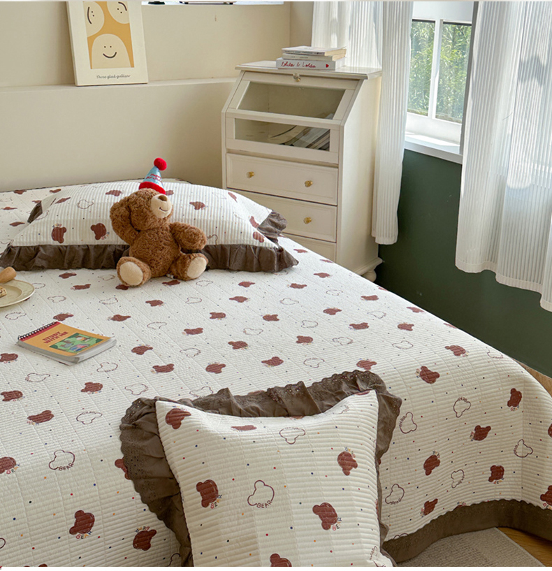 诗黛尔 2024秋冬新款全棉法式花边床盖套件 卡通熊头