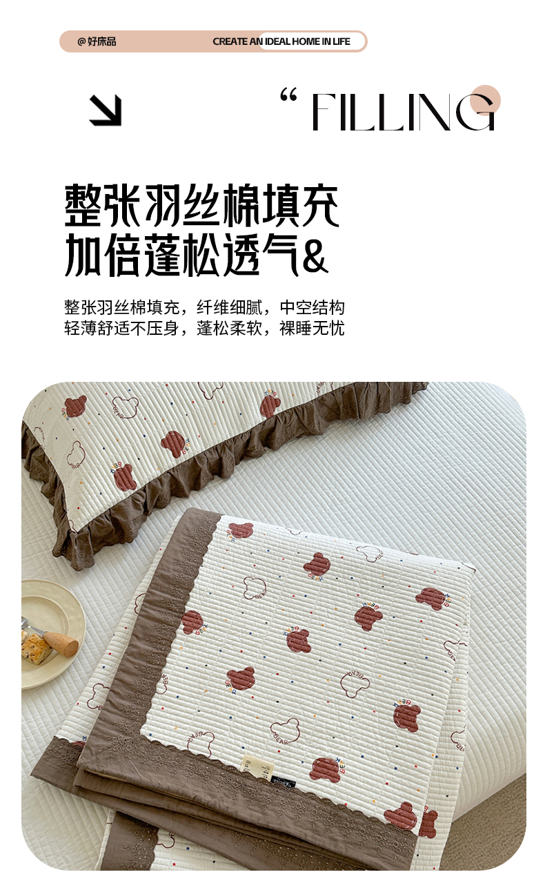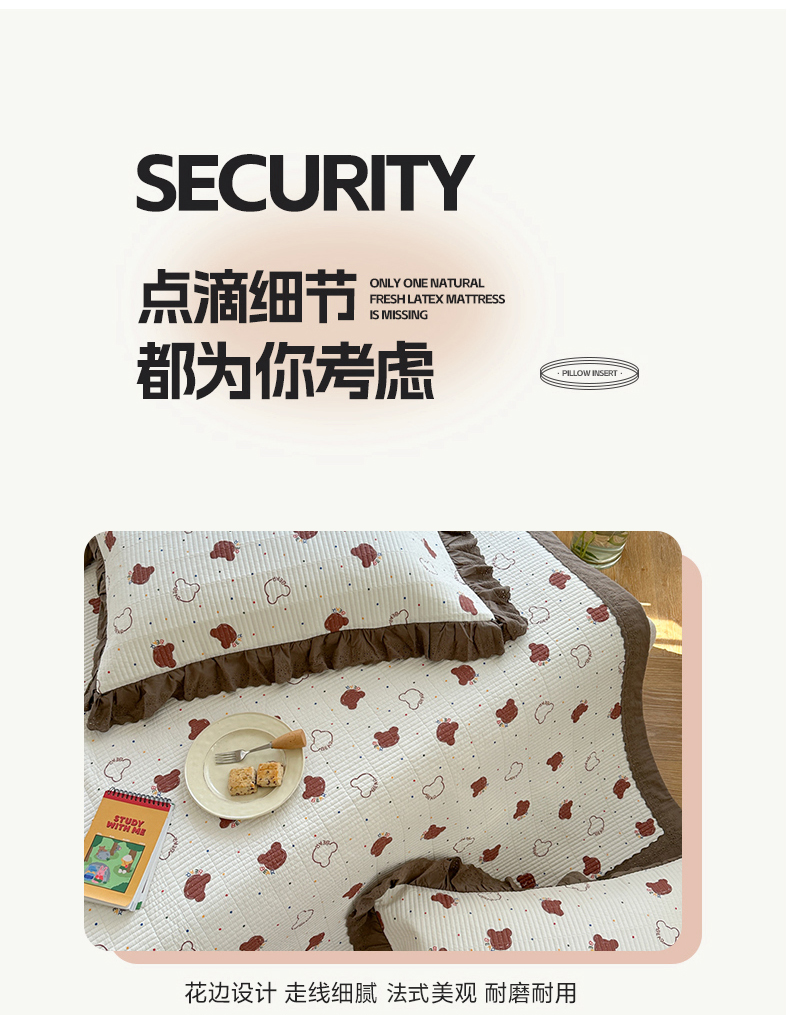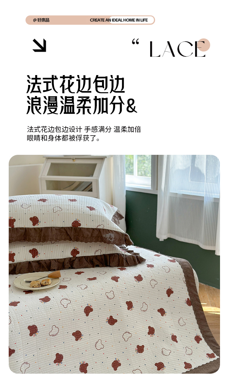 商品名称:诗黛尔 2024秋冬新款全棉法式花边床盖套件 卡通熊头