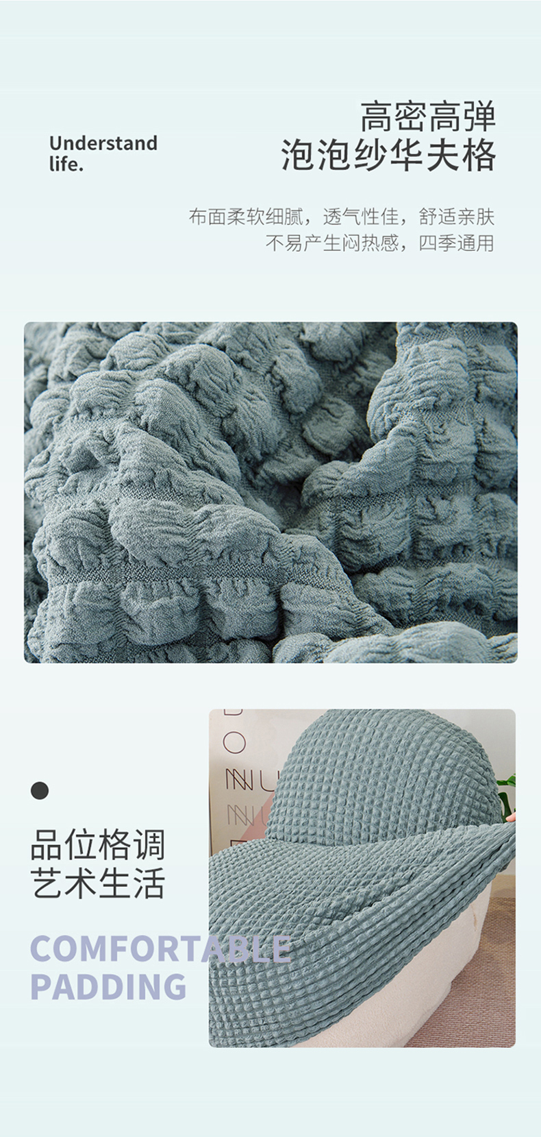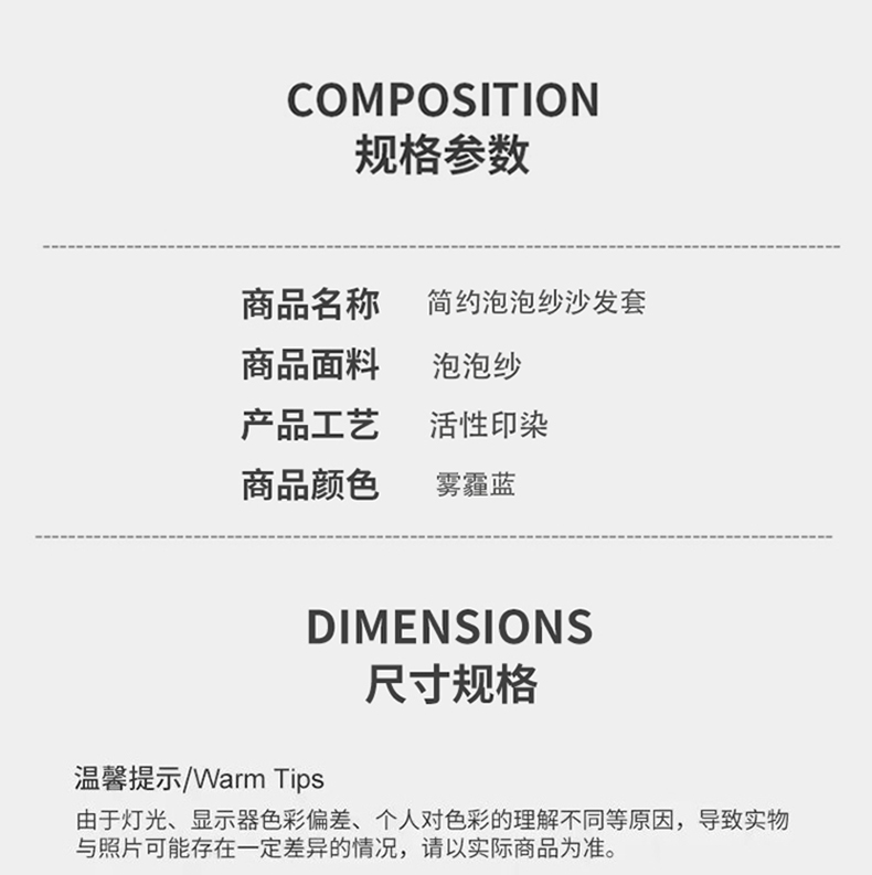 商品名称:启博家纺 2024新款白胖子雪梨椅泡泡纱沙发套 雾霾蓝