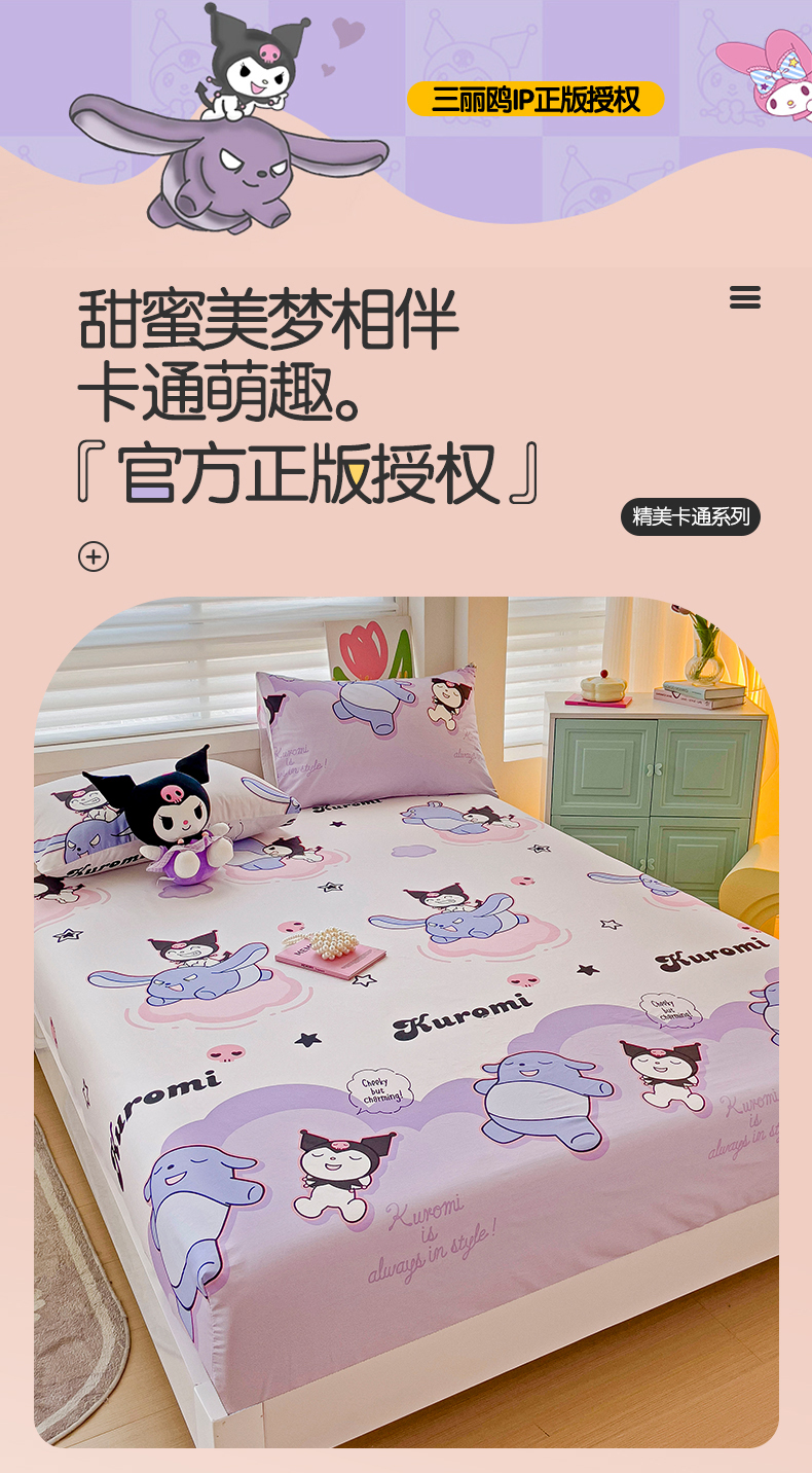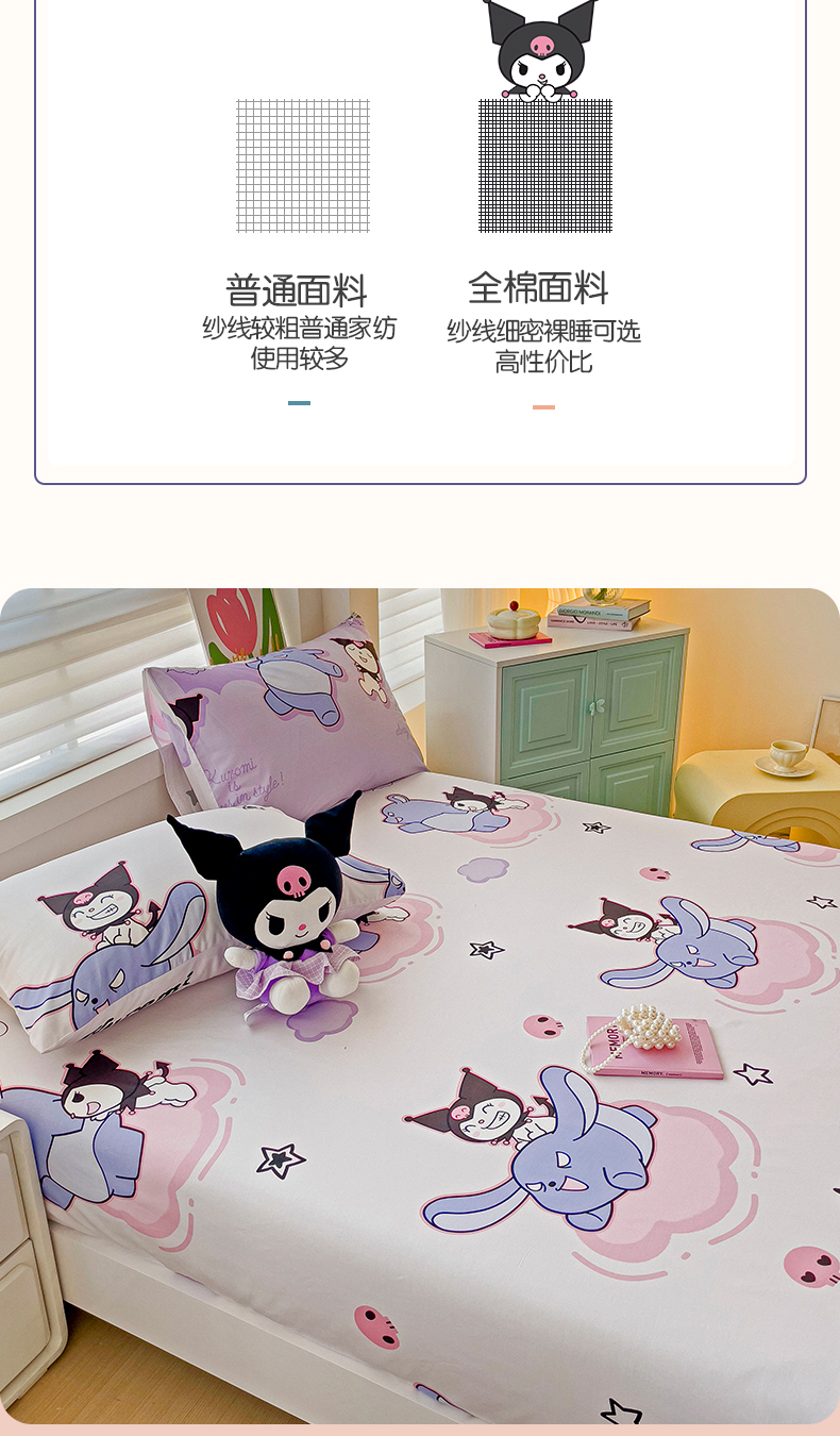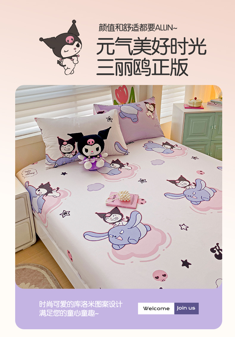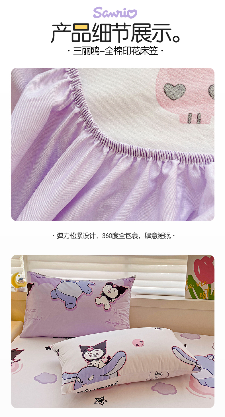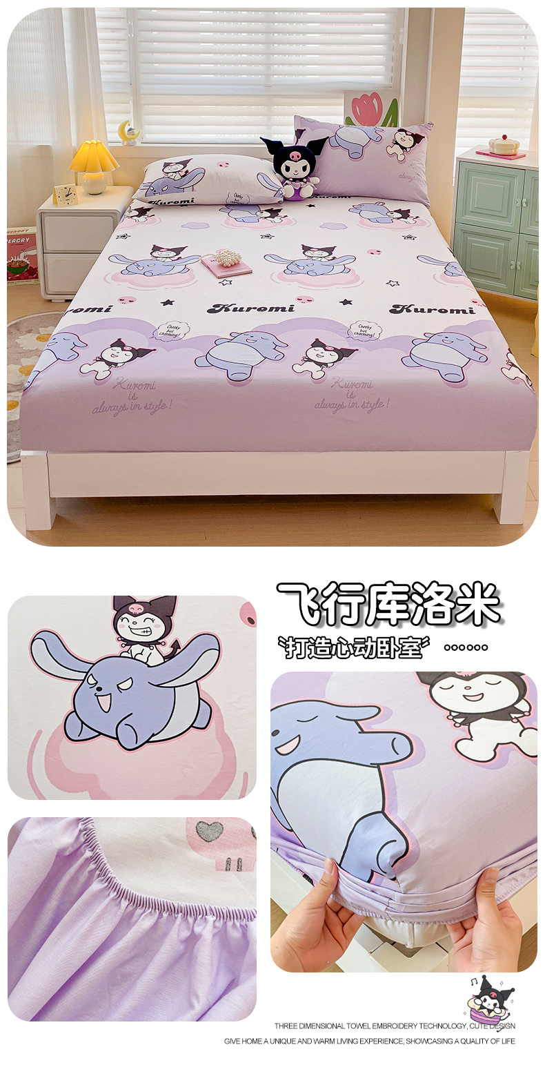• 91家纺网 家纺一手货源 找家纺 名兮家居 2024新款三丽鸥全棉印花床笠【含防伪标】 飞行库洛米