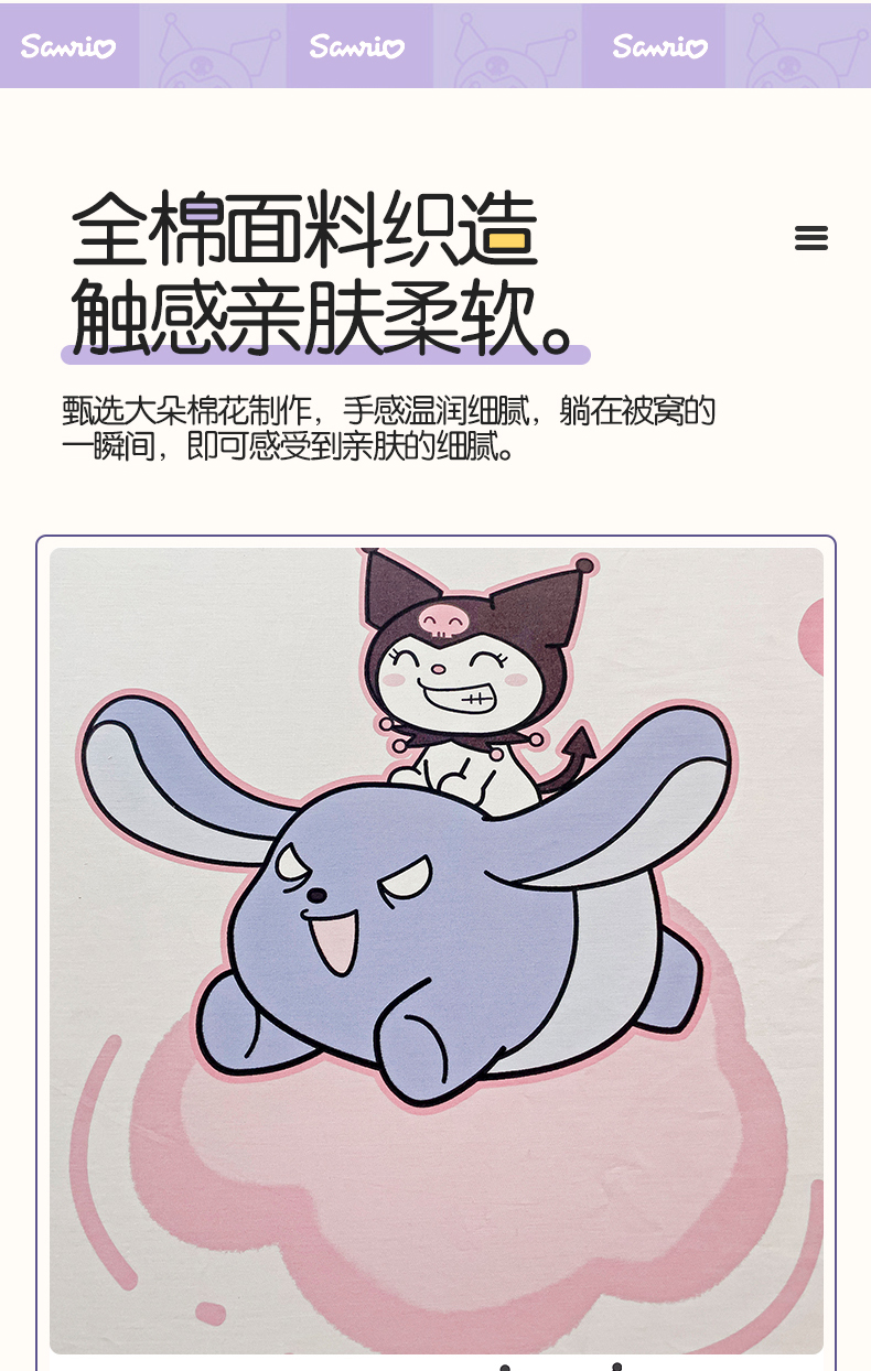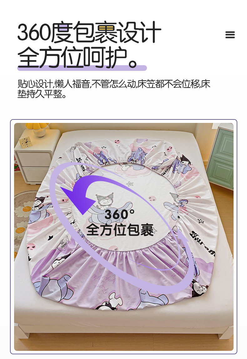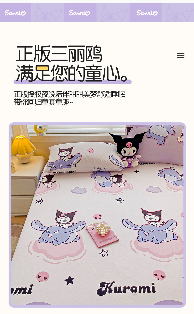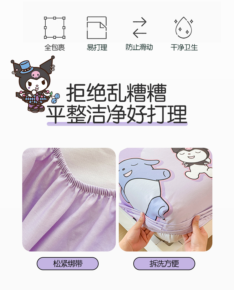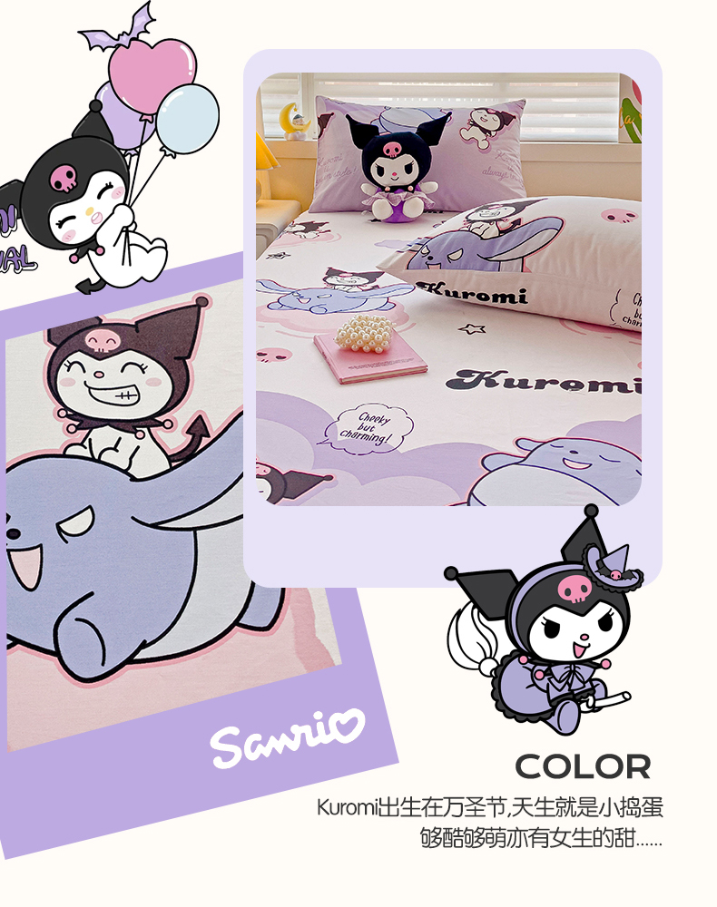 • 91家纺网 家纺一手货源 找家纺 名兮家居 2024新款三丽鸥全棉印花床笠【含防伪标】 飞行库洛米
