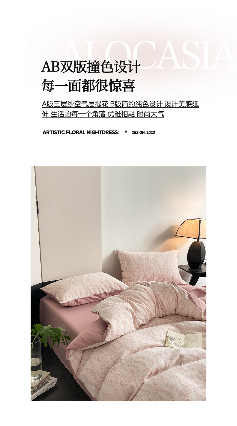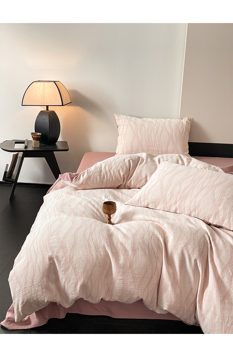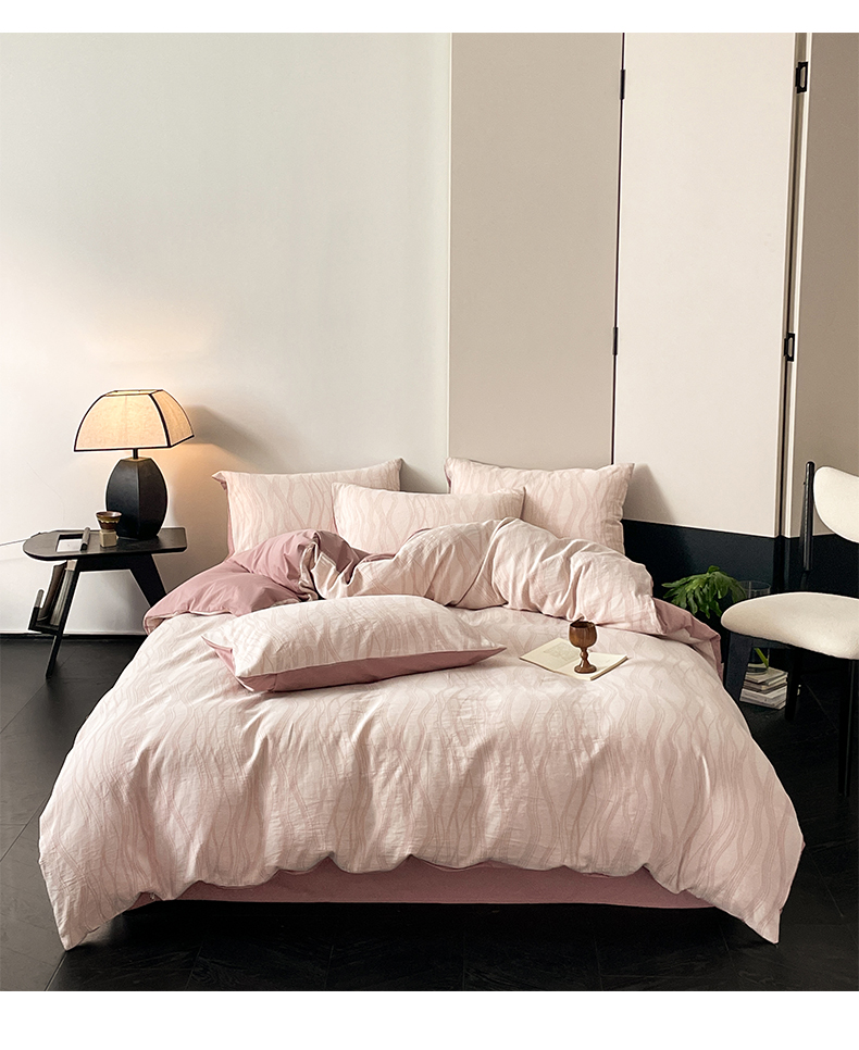 当前位置: 91家纺网 > 商品网购 > 床品套件 > 四件套 > 全棉普通四件套 > 莱茵家居 2024新款40sA类全棉水洗绵三层纱提花四件套-流年系列 流年-豆沙红