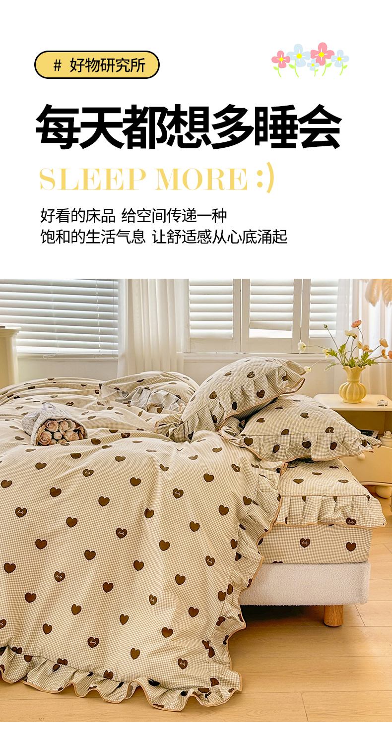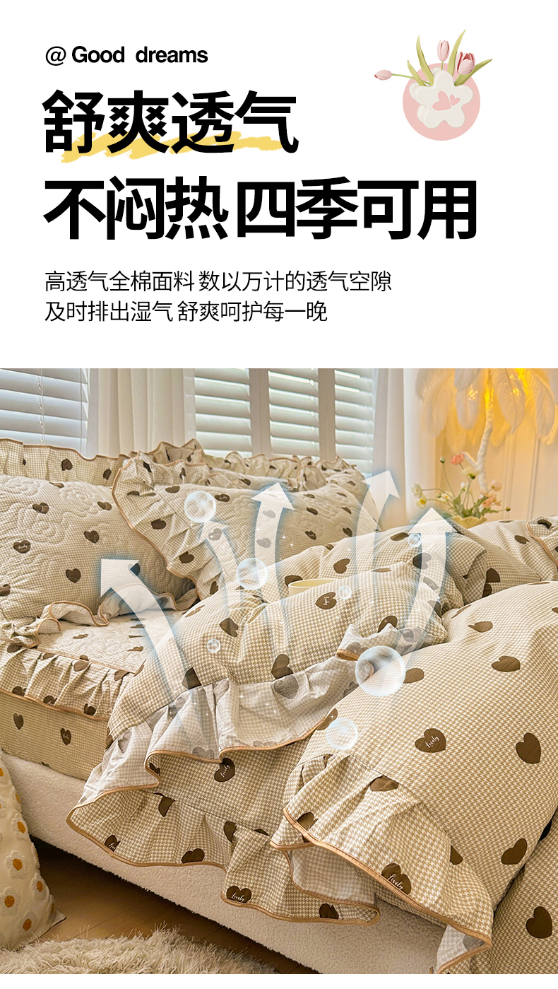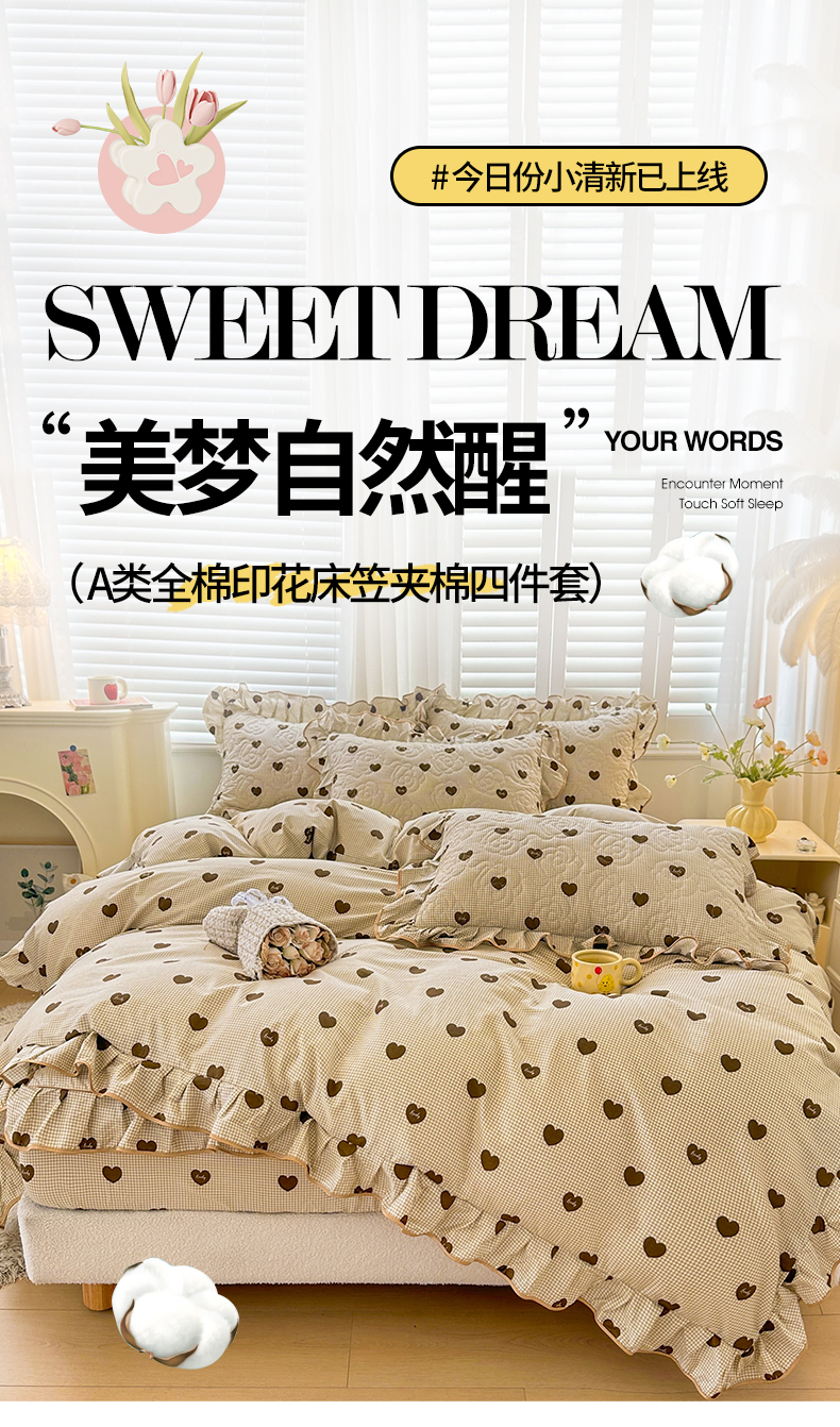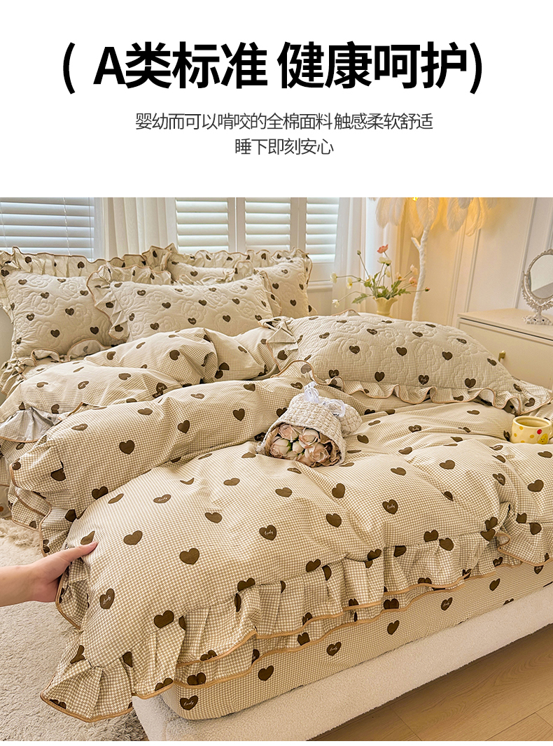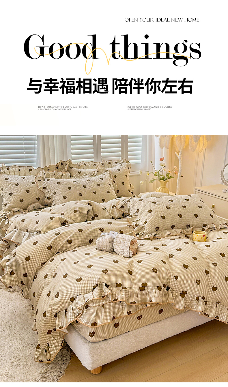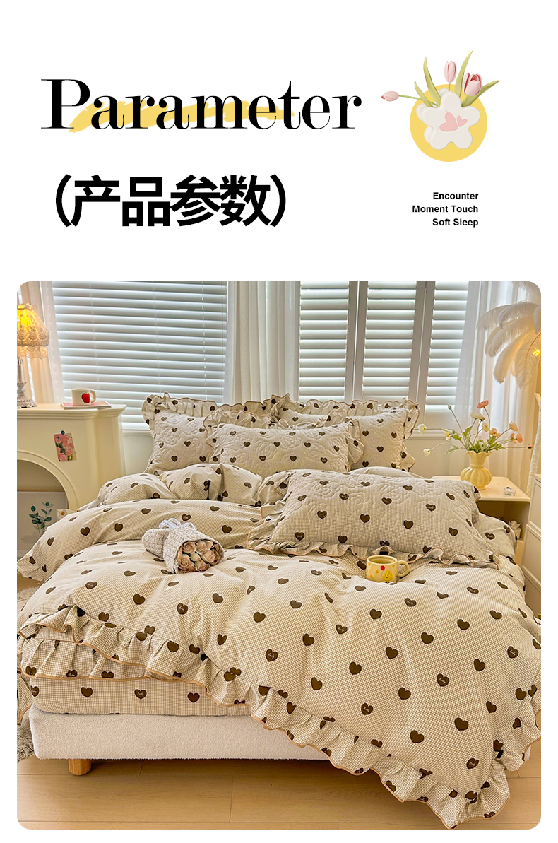 当前位置: 91家纺网 > 商品网购 > 床品套件 > 四件套 > 全棉普通四件套 > 宜凡家纺 2024新款全棉印花公主风夹棉床笠四件套 心悦 咖啡