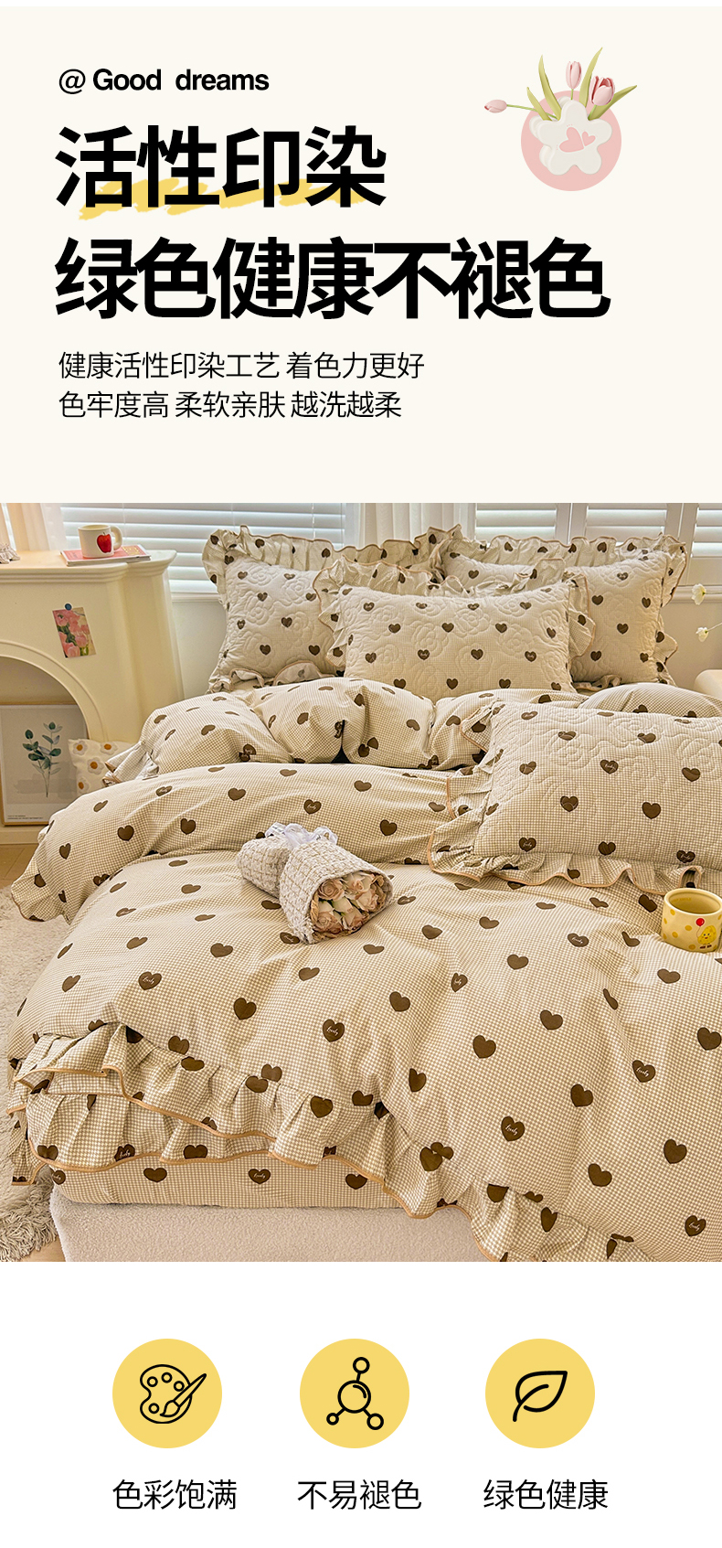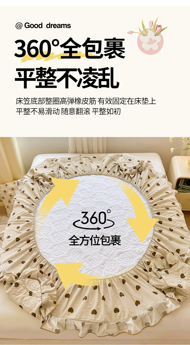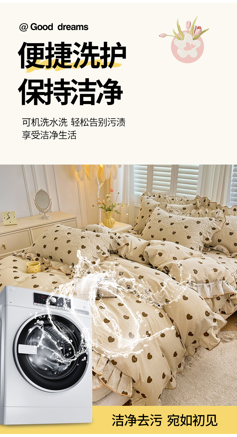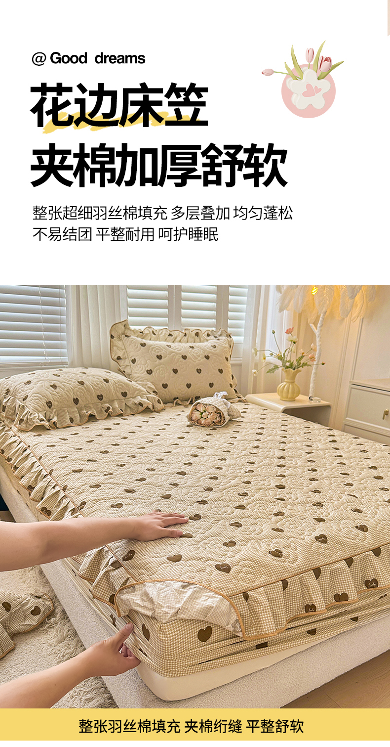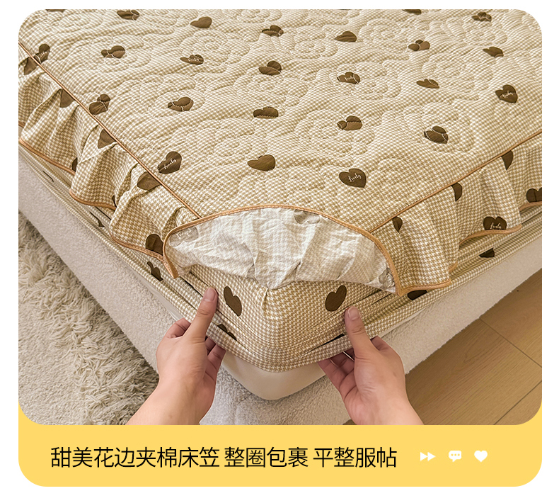 当前位置: 91家纺网 > 商品网购 > 床品套件 > 四件套 > 全棉普通四件套 > 宜凡家纺 2024新款全棉印花公主风夹棉床笠四件套 心悦 咖啡