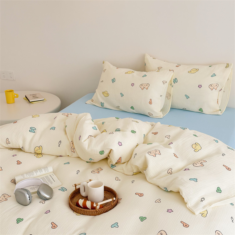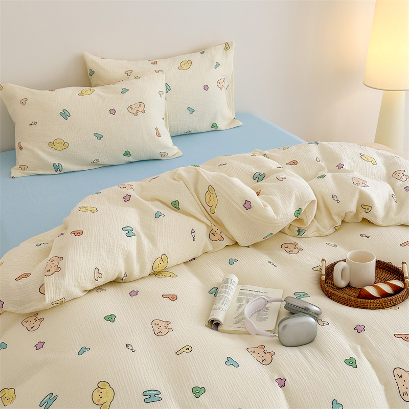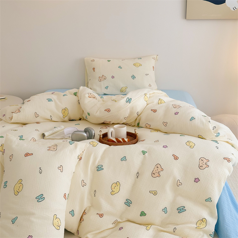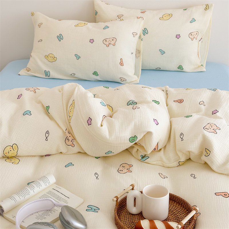 珺柔家纺 2024新款全棉皱皱双层纱四件套 喵卡酱