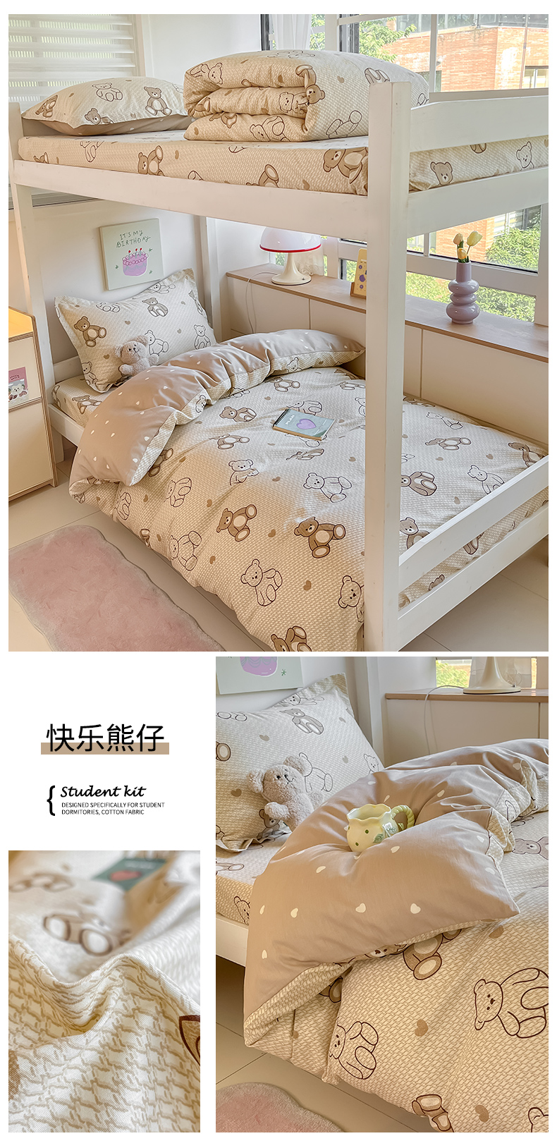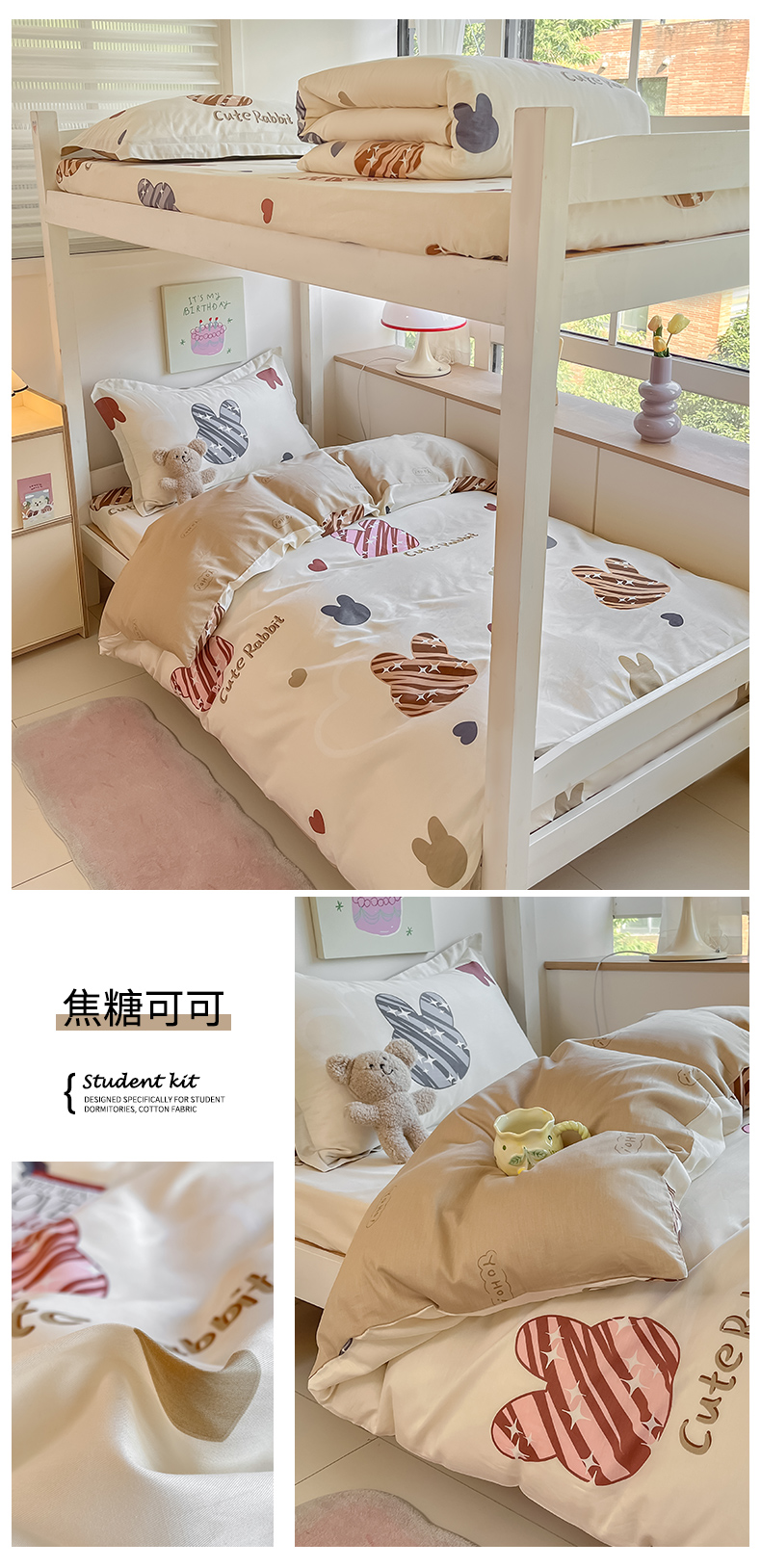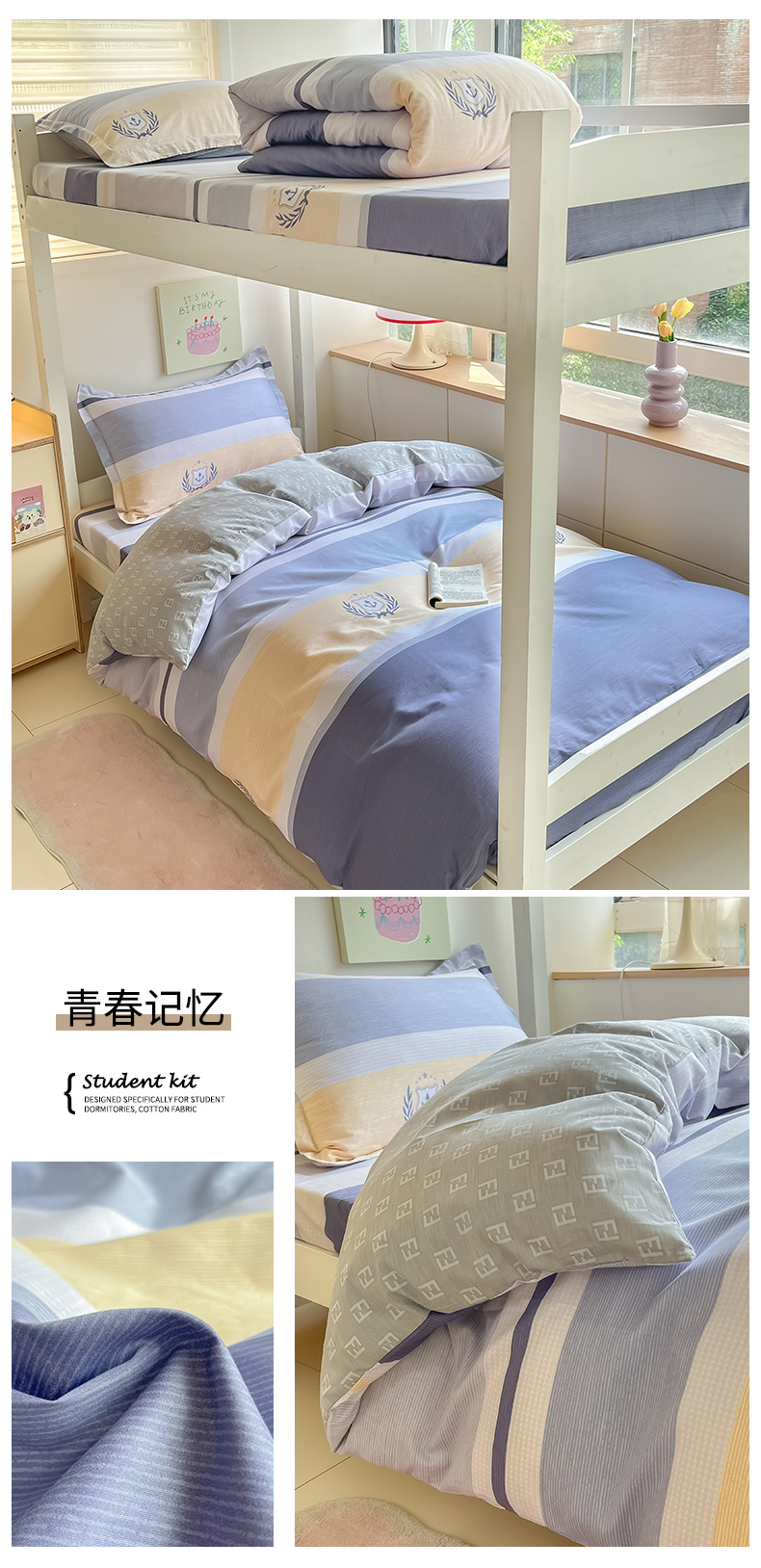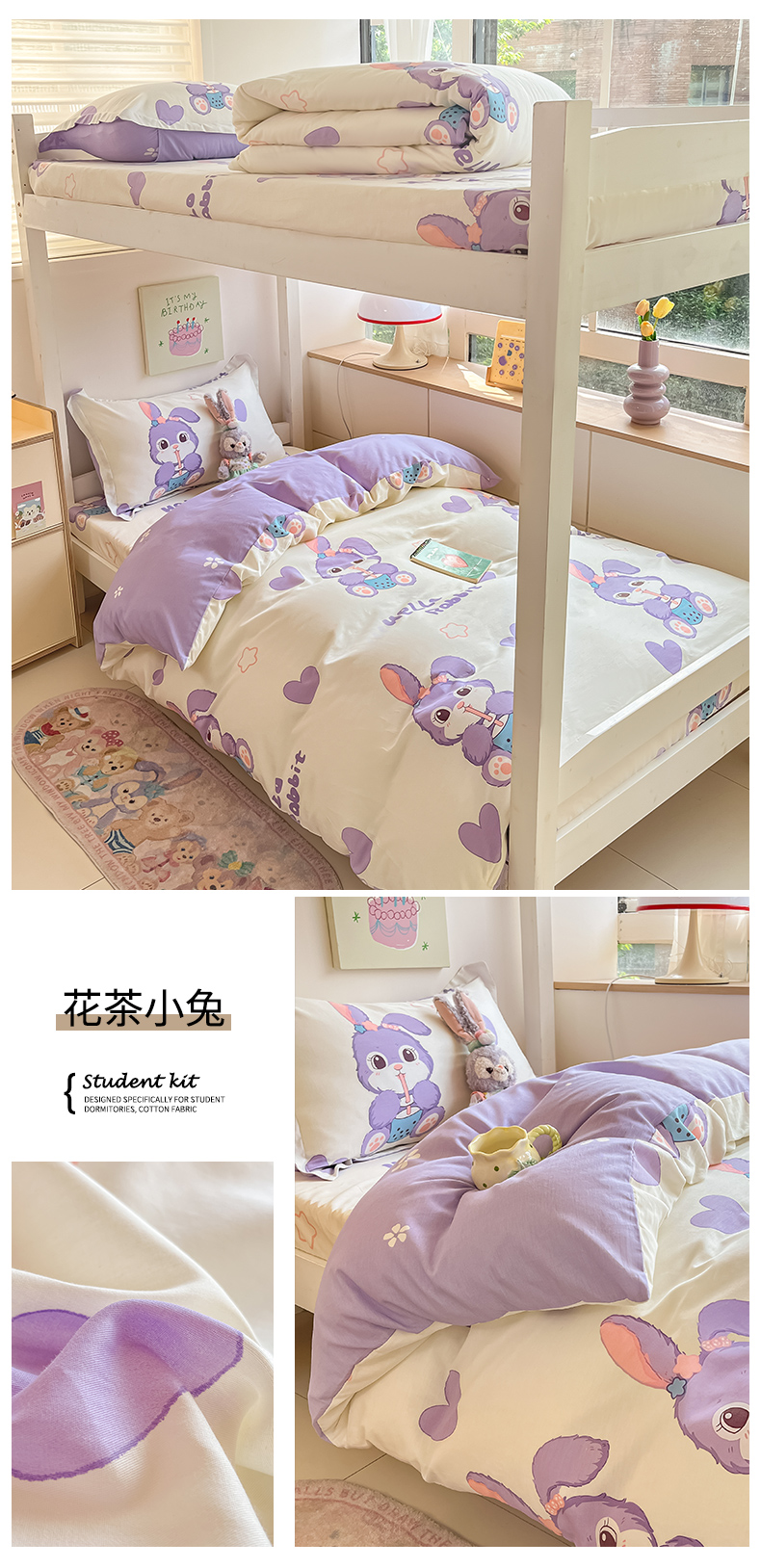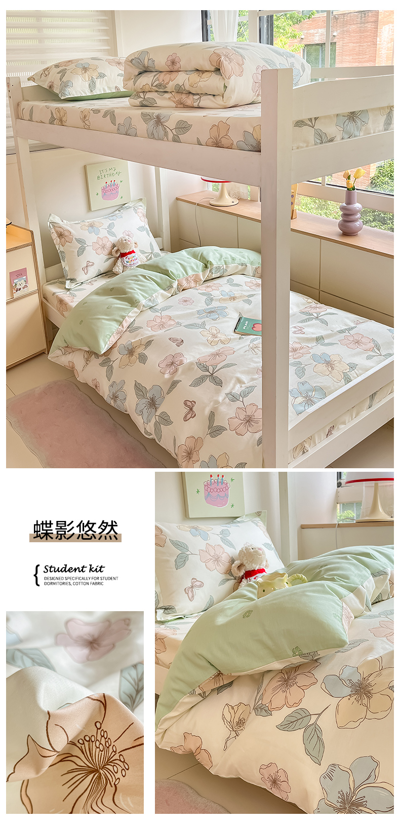 当前位置: 91家纺网 > 商品网购 > 床品套件 > 三件套 > 菲梵家纺 2024新款全棉喷气小清新宿舍上下铺学生三件套 铃兰花语