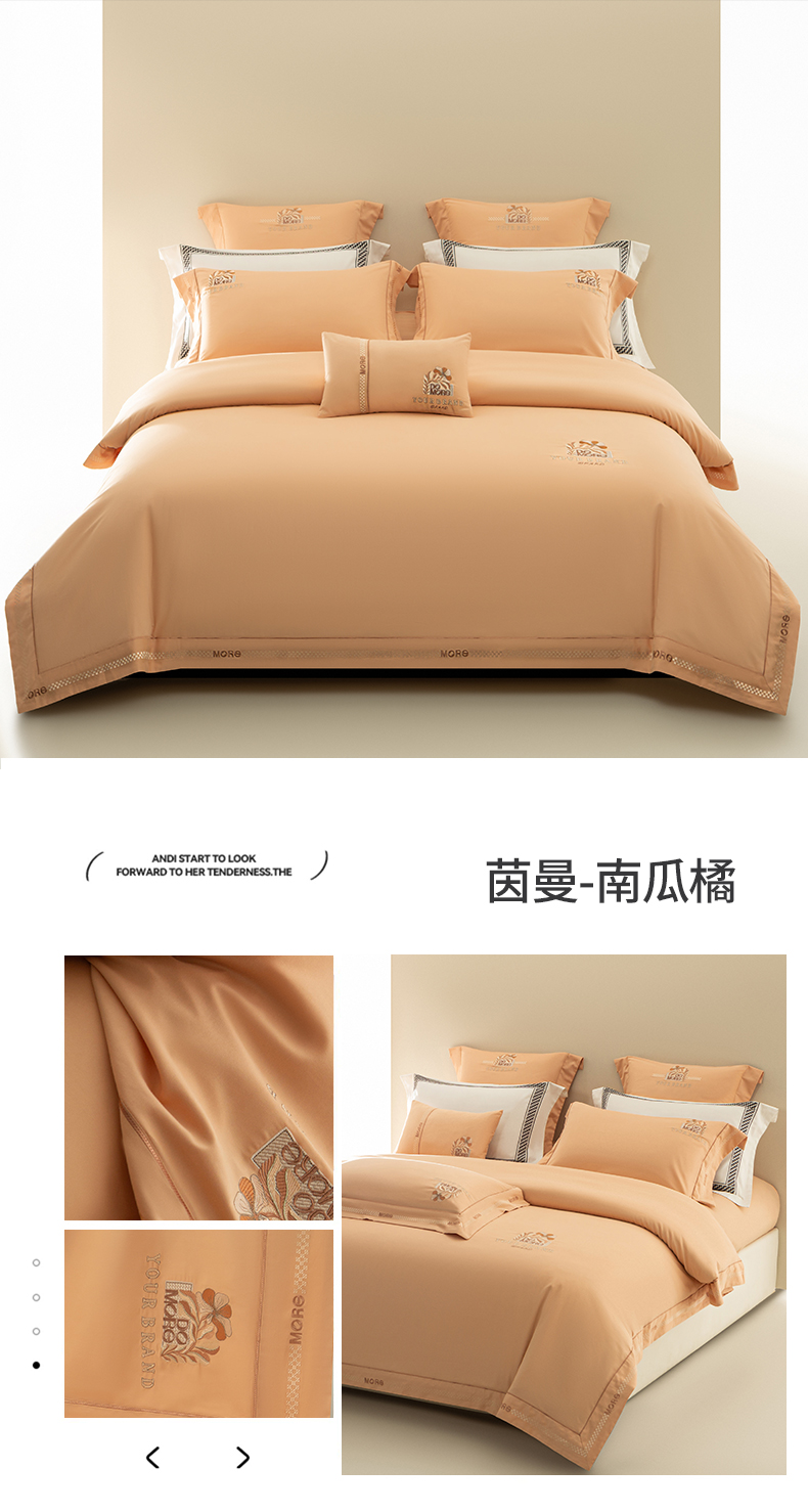 商品名称:高大尚婚庆馆 2025新款长绒棉磨毛高端绣花四件套 茵曼 南瓜橘