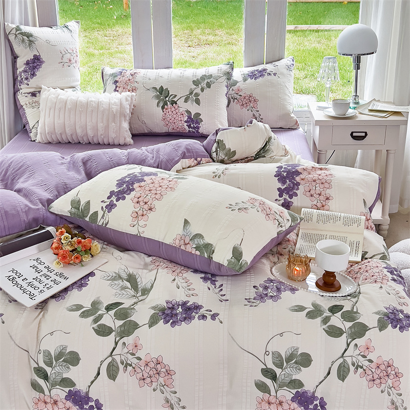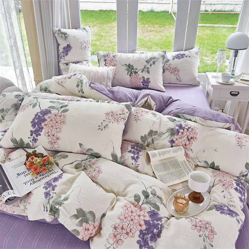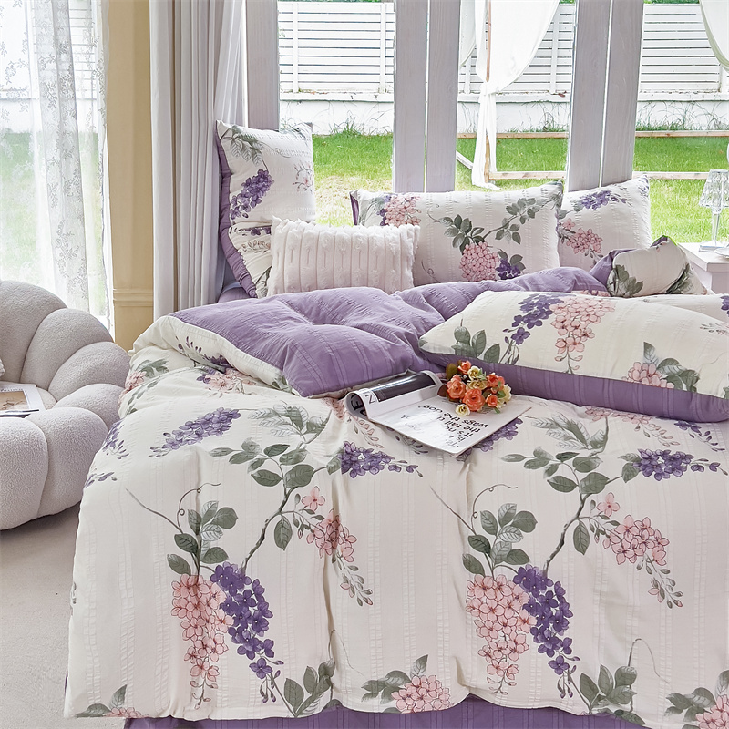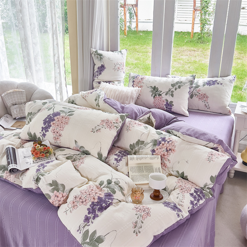 富之航 2024新款云纱棉四件套现货供应 紫藤