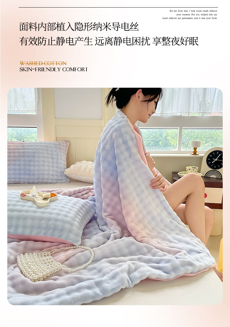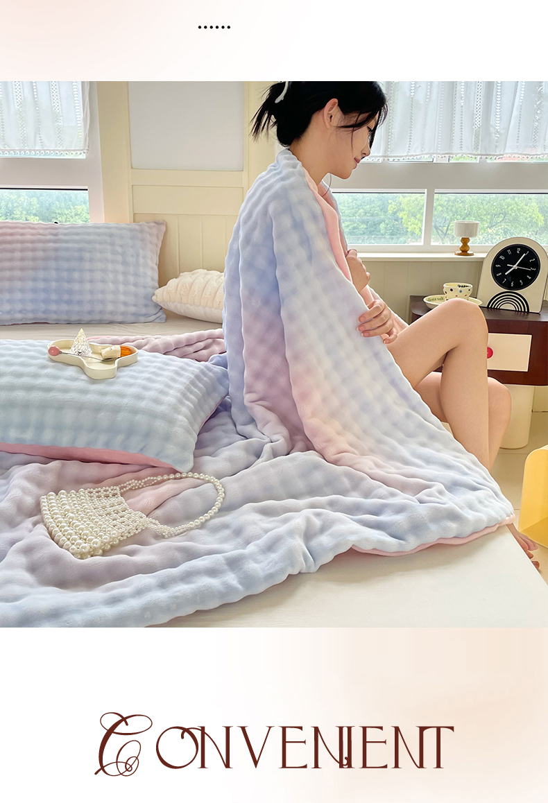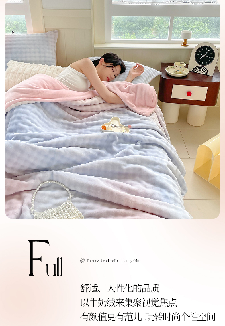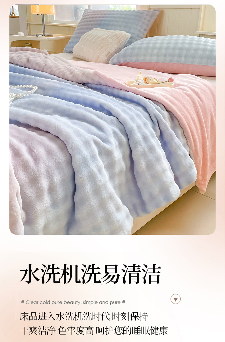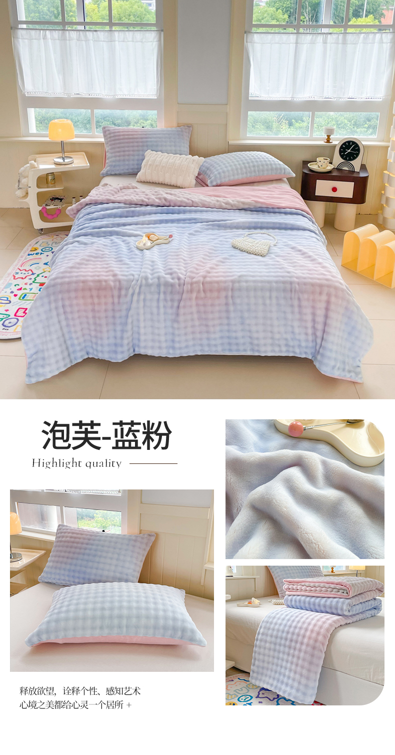 言熙居家纺 2024新款AB版多功能盖毯被套 泡芙-蓝粉
