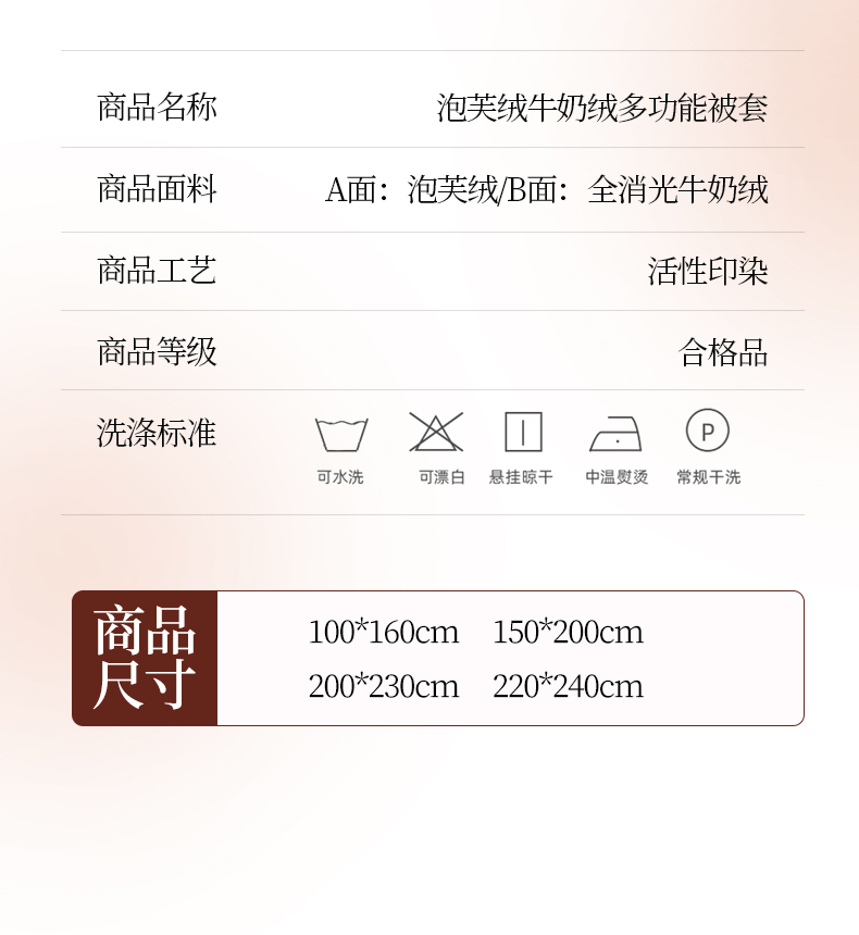 商品名称:言熙居家纺 2024新款AB版多功能盖毯被套 泡芙-蓝粉