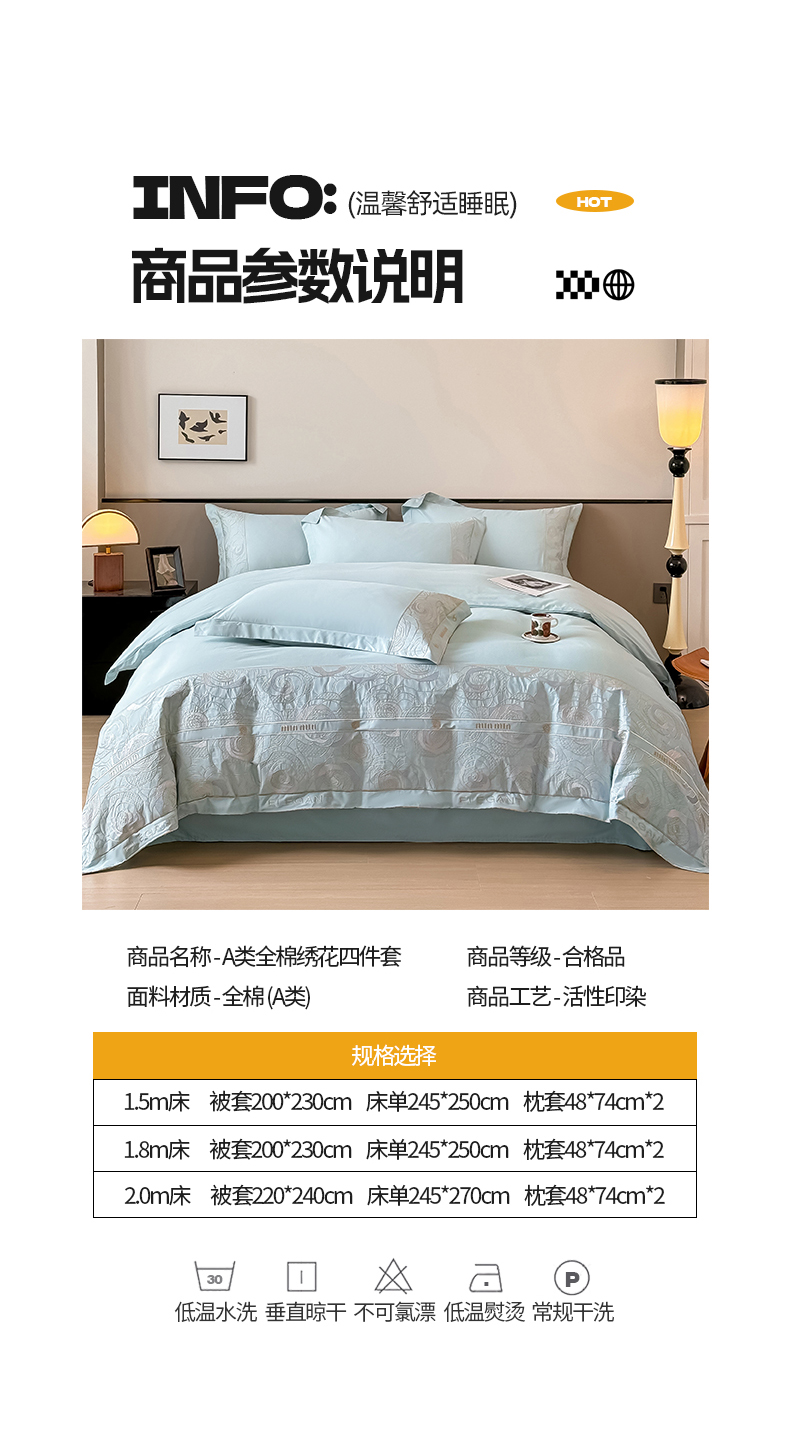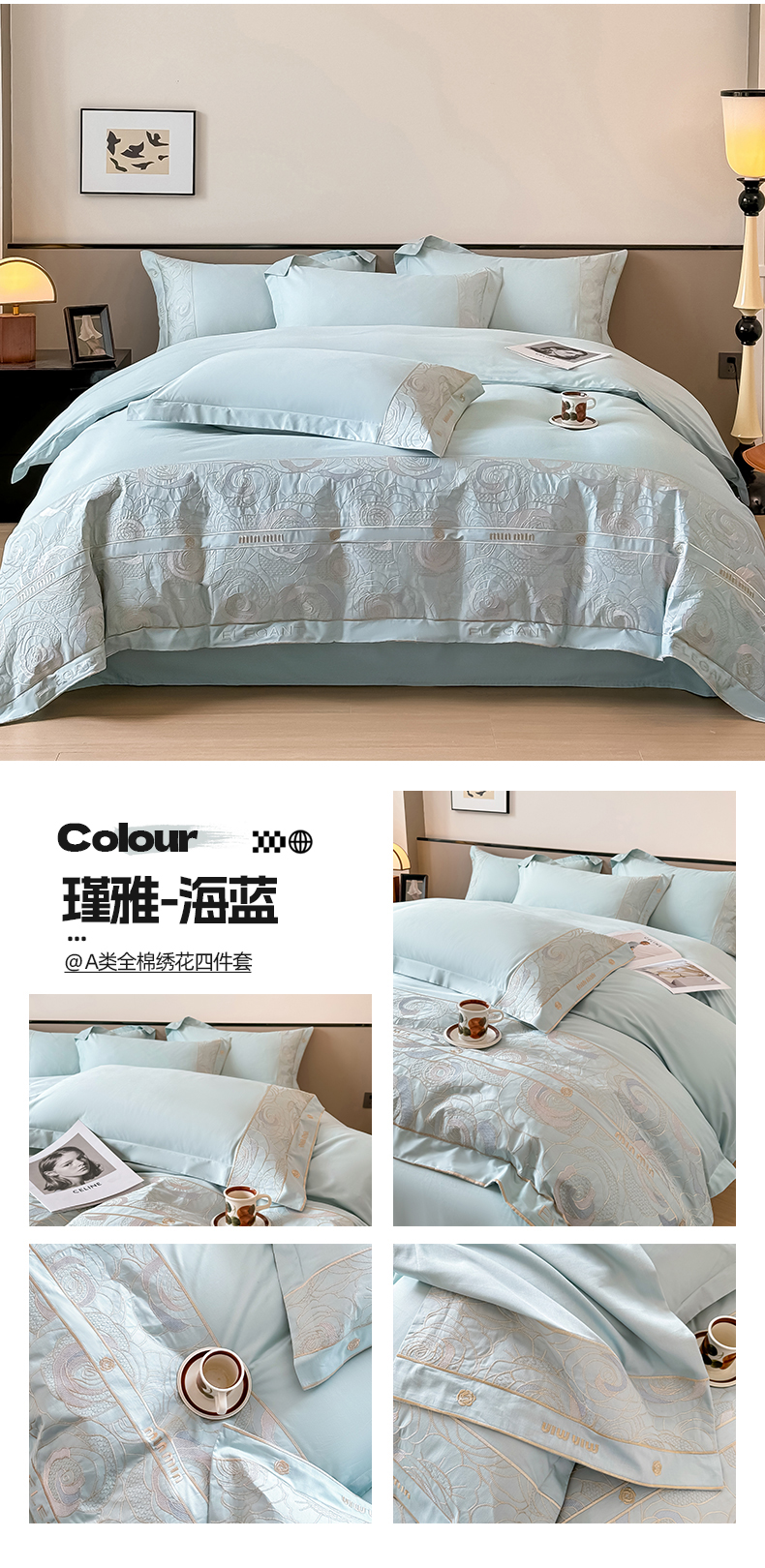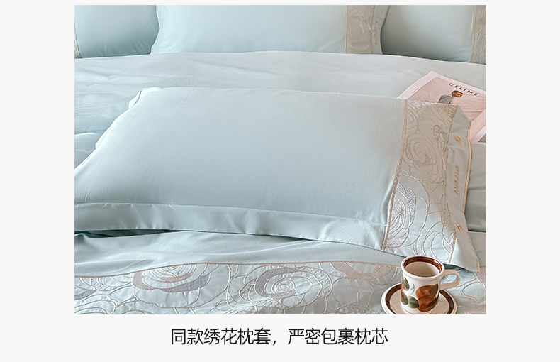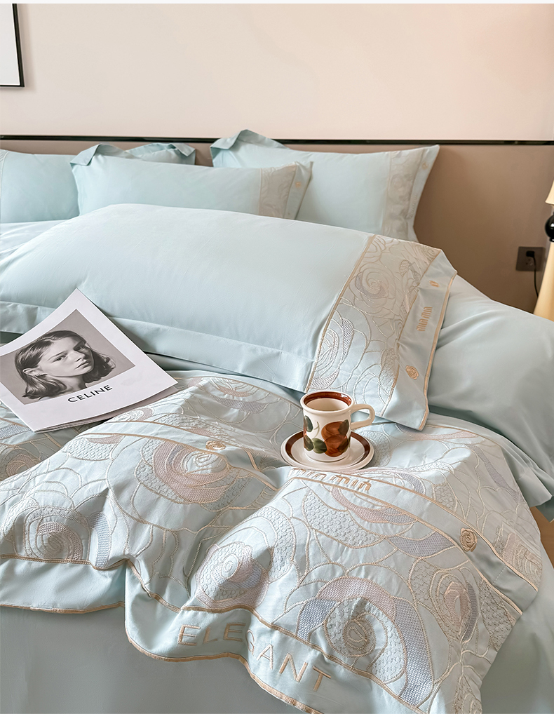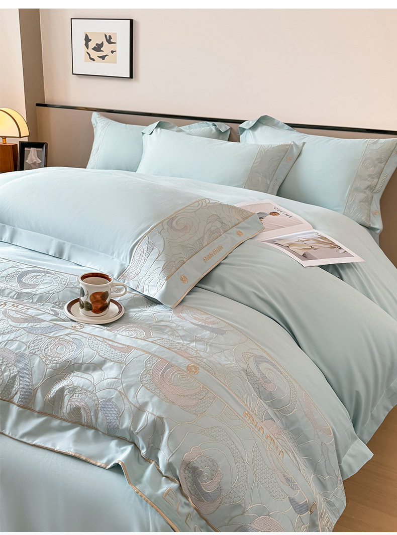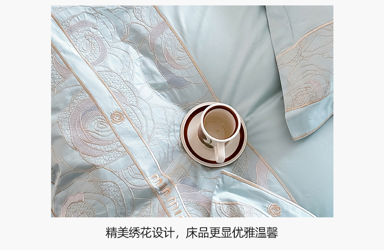 商品名称:懒猫家纺 2024新款【瑾雅系列】全棉绣花套件四件套 瑾雅-海蓝